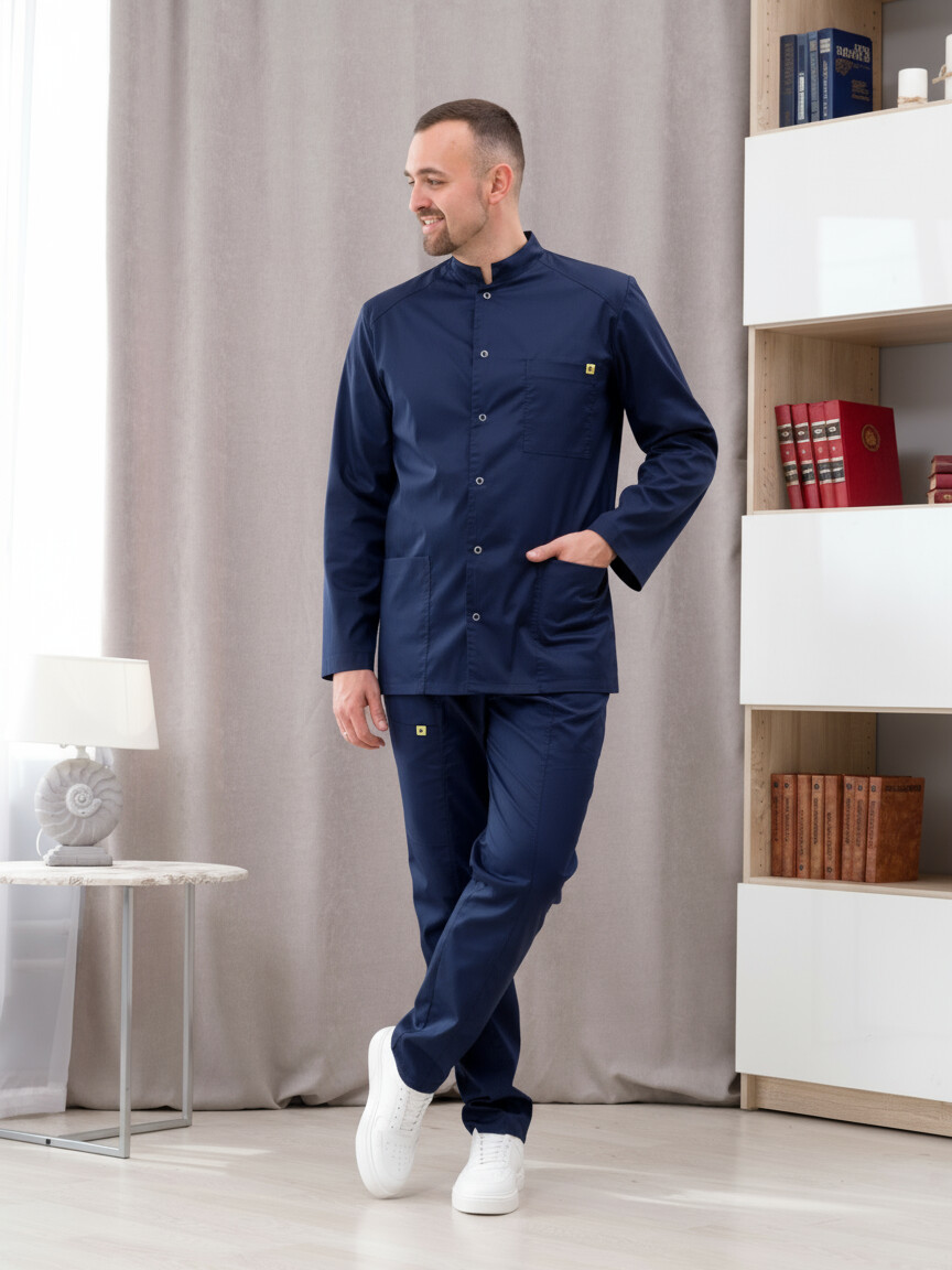 Костюм медицинский муж. М-178-63 ткань Элит-145/Стрейч (46, кнопки, черника (63))