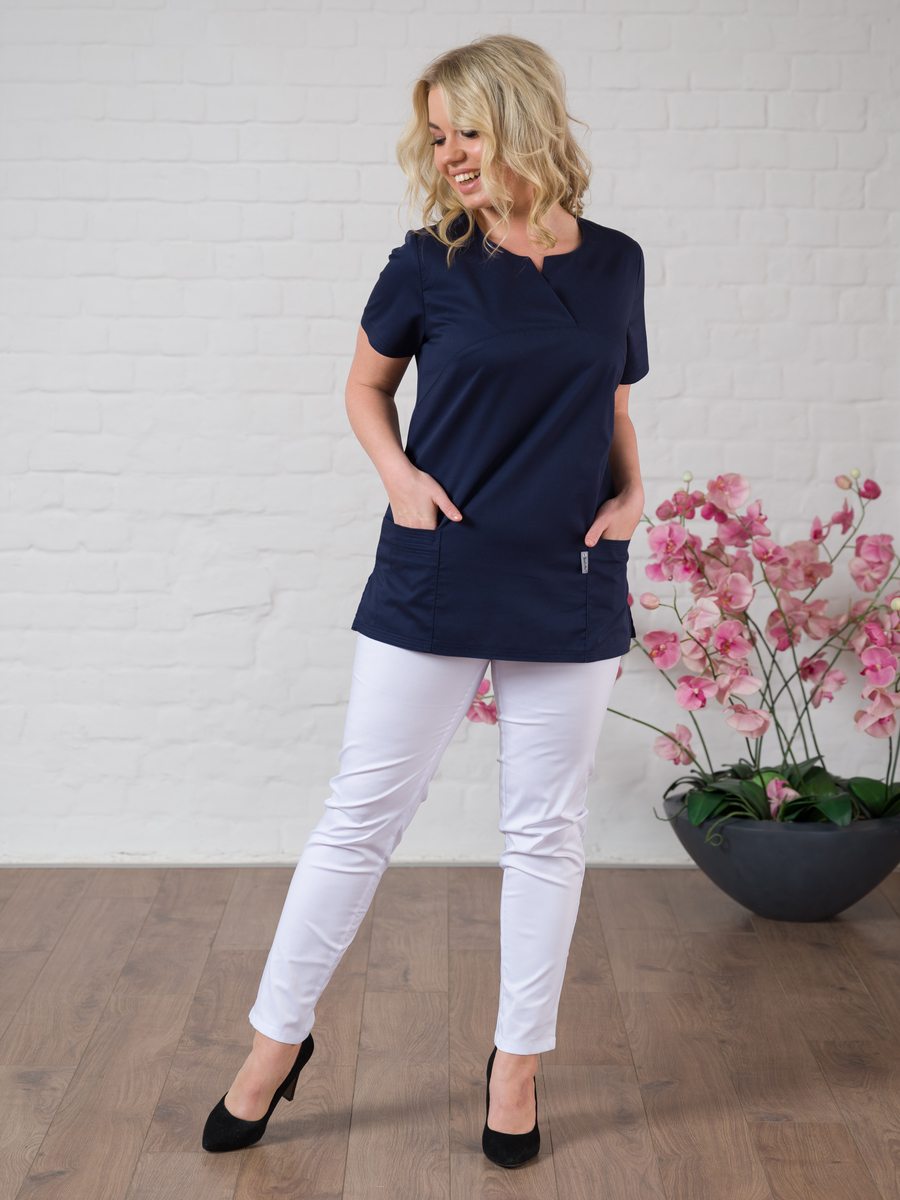 Современная униформа для медиков может обратить на себя внимание не только пациентов, но и вызвать у вас желание носить ее за пределами работы. Блуза медицинская женская будет поддерживать ваш настрой приподнятым в течение всего рабочего дня. Удобный крой рубашки с коротким рукавом для женщин не будет стеснять ваших движений. Данная блуза составит отличный комплект с брюками нашего бренда, есть простые прямые брюки, а также джоггеры. Составляйте разные образы и излучайте импульсы уверенности в завтрашнем дне. Медицинская рубашка подойдет педиатрам, ветеринарным врачам, стоматологам, сотрудникам косметических салонов, массажистам. Спецодежда сшита из ткани Элит-145/Стрейч. Размерный ряд с 40 по 64.