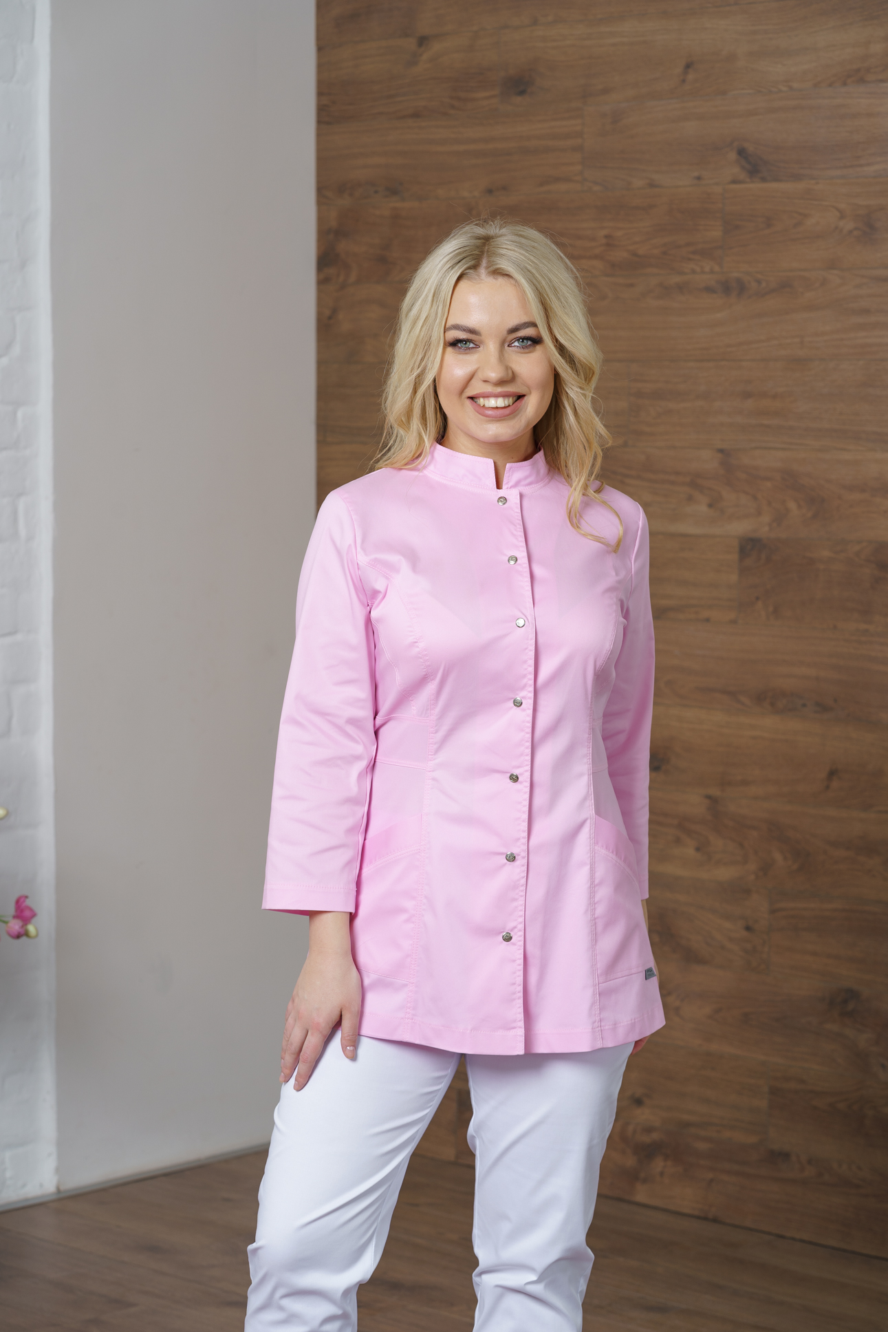 Рубашка мед. жен. М-269-34 ткань Элит-145/Стрейч (48, кнопки, нежно.роз (34))