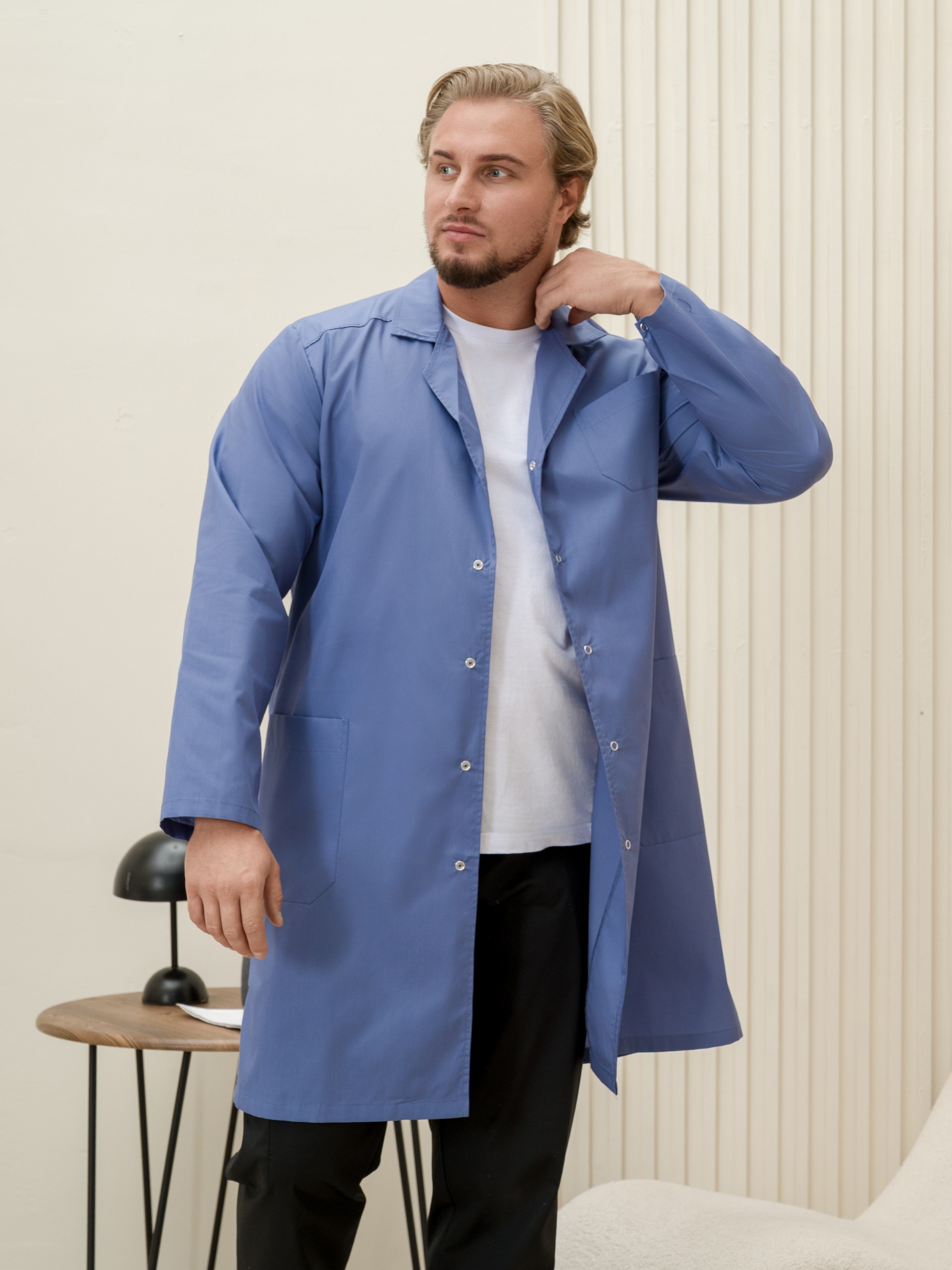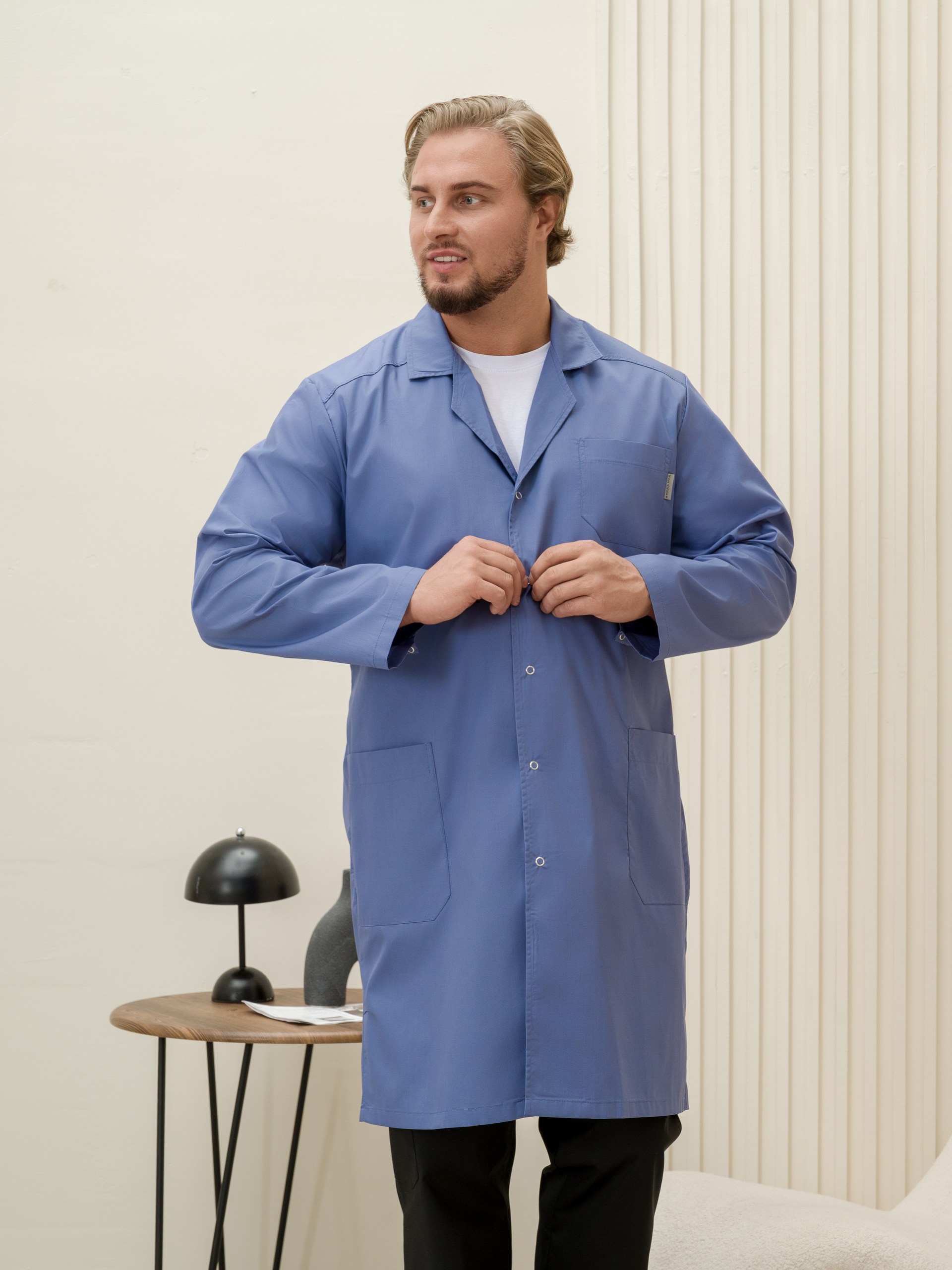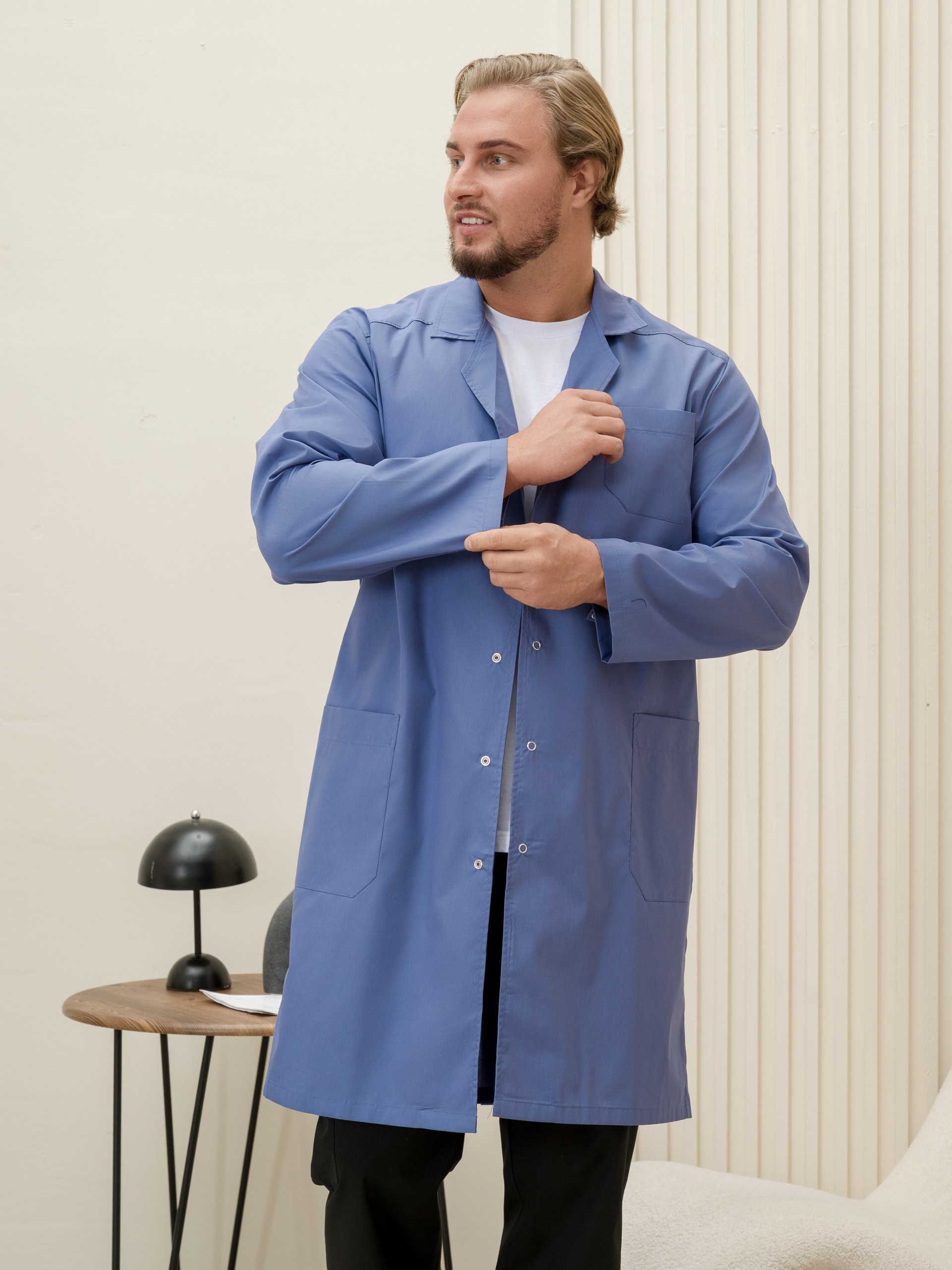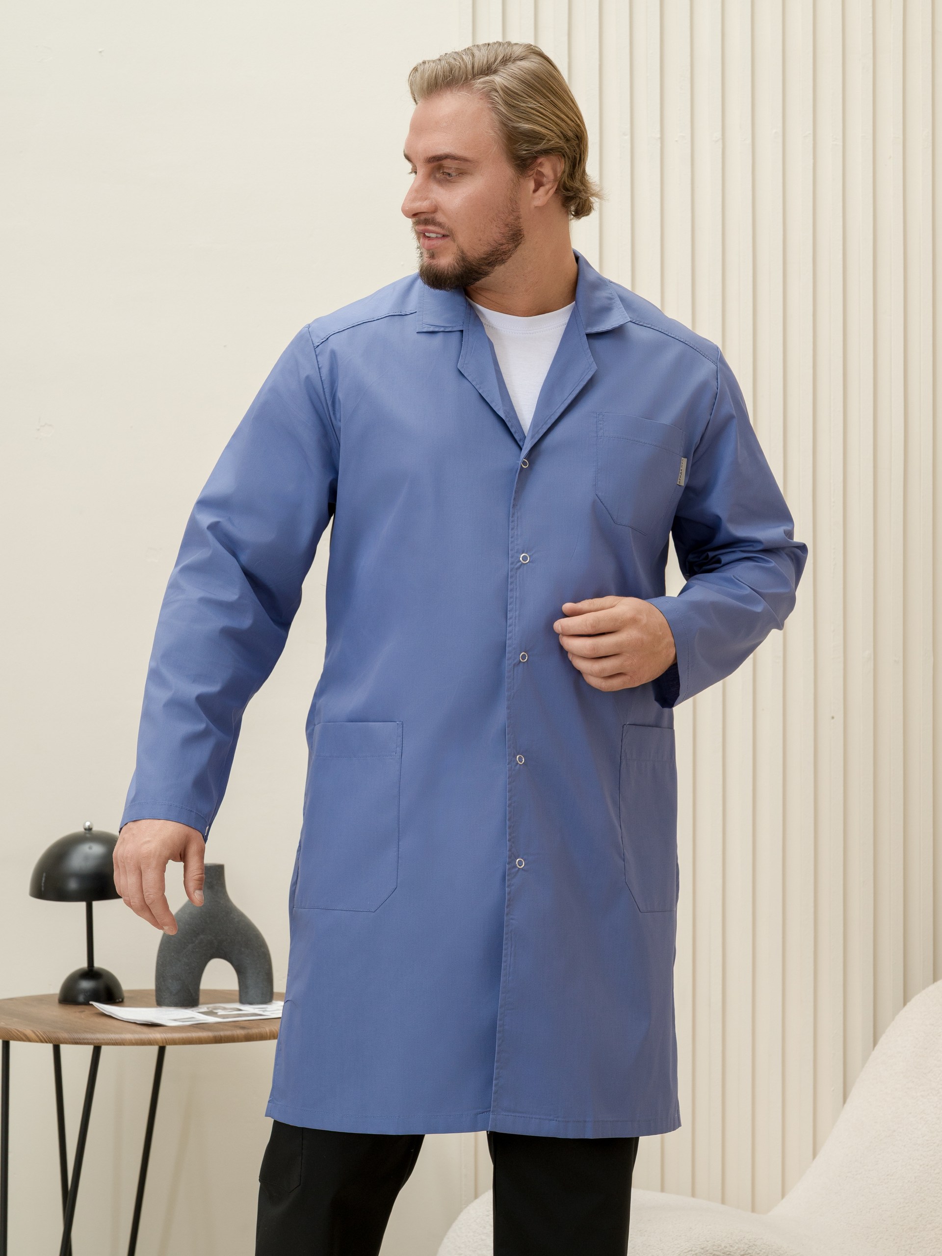 Халат медицинский муж. М-015-3932 ткань Тиси (60/62, кнопки, сер.синий(3932))