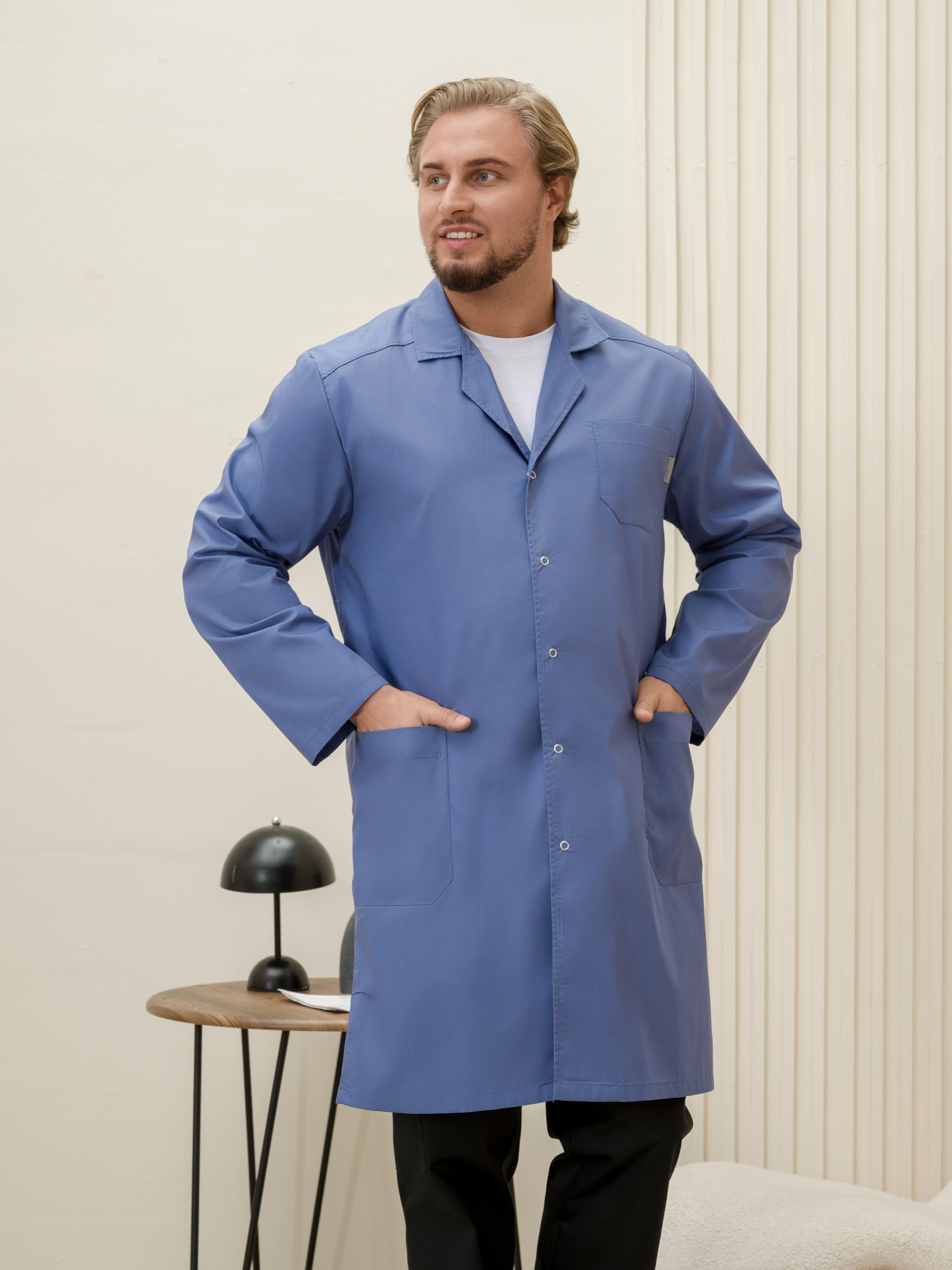Халат медицинский муж. М-015-3932 ткань Тиси (44, кнопки, сер.синий(3932))