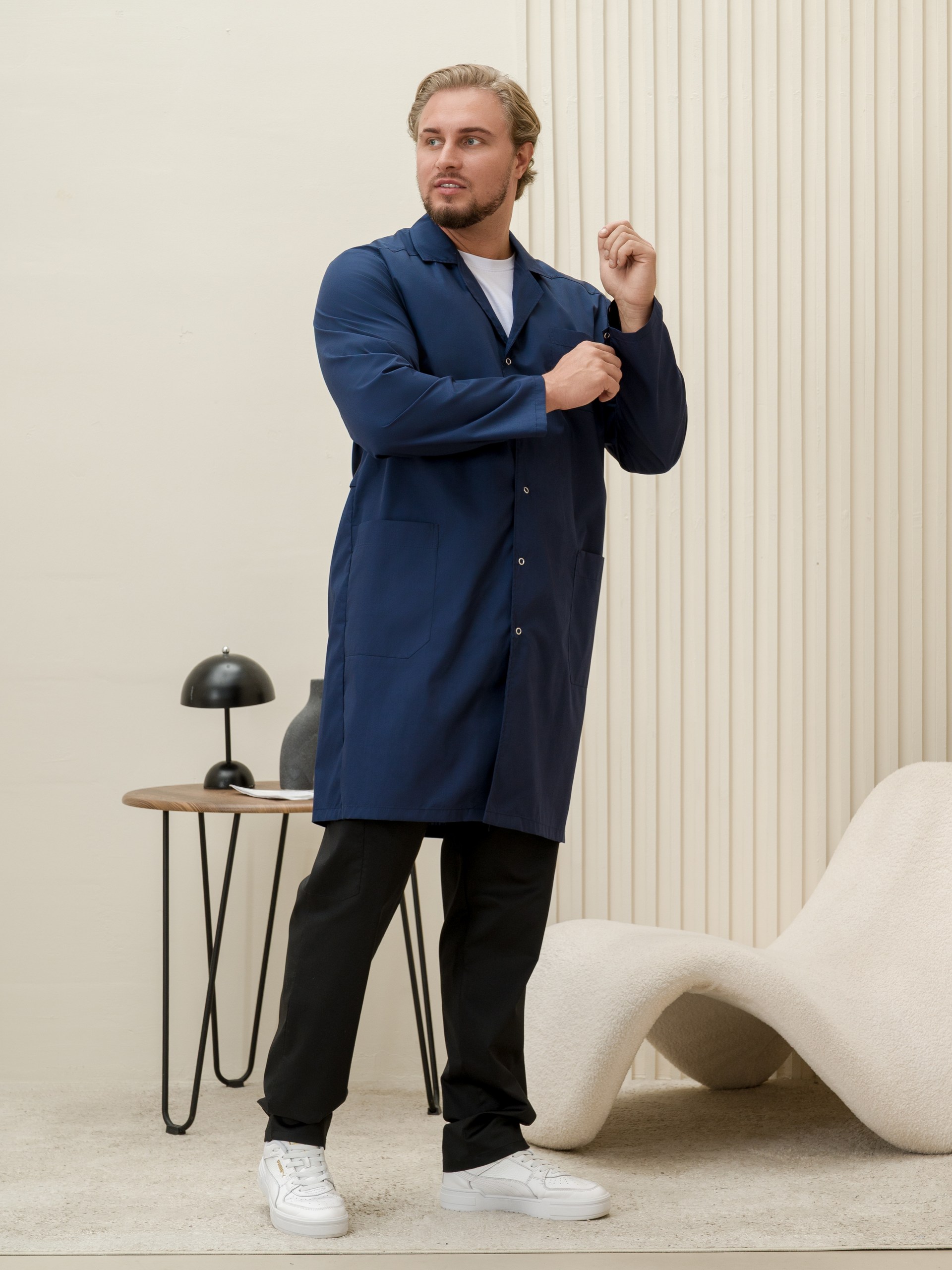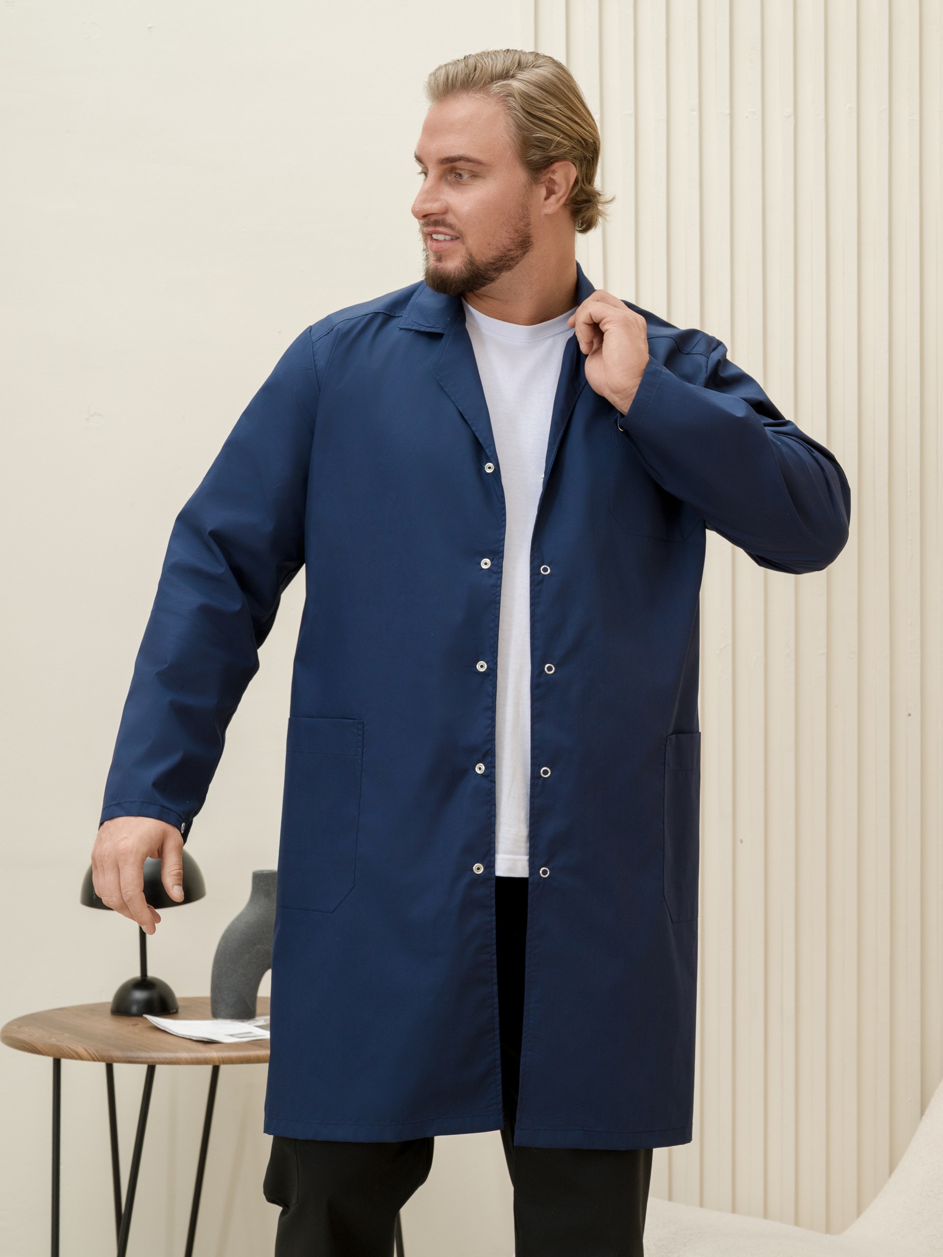 Халат медицинский муж. М-015-63 ткань Тиси (56/58, кнопки, черника (63))