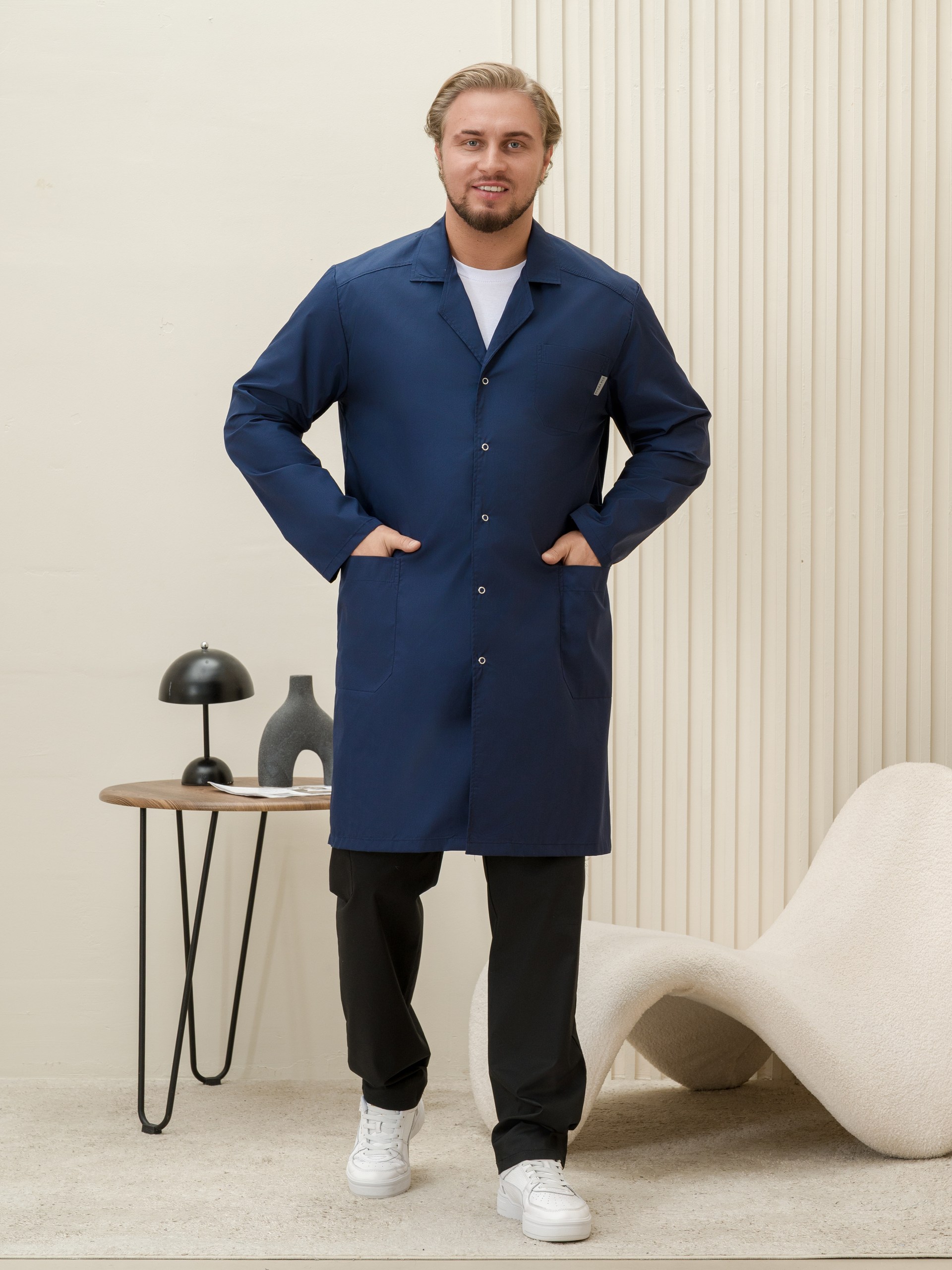 Халат медицинский муж. М-015-63 ткань Тиси (46, кнопки, черника (63))