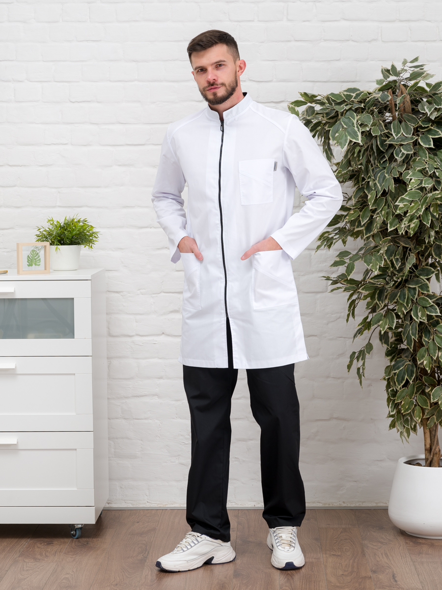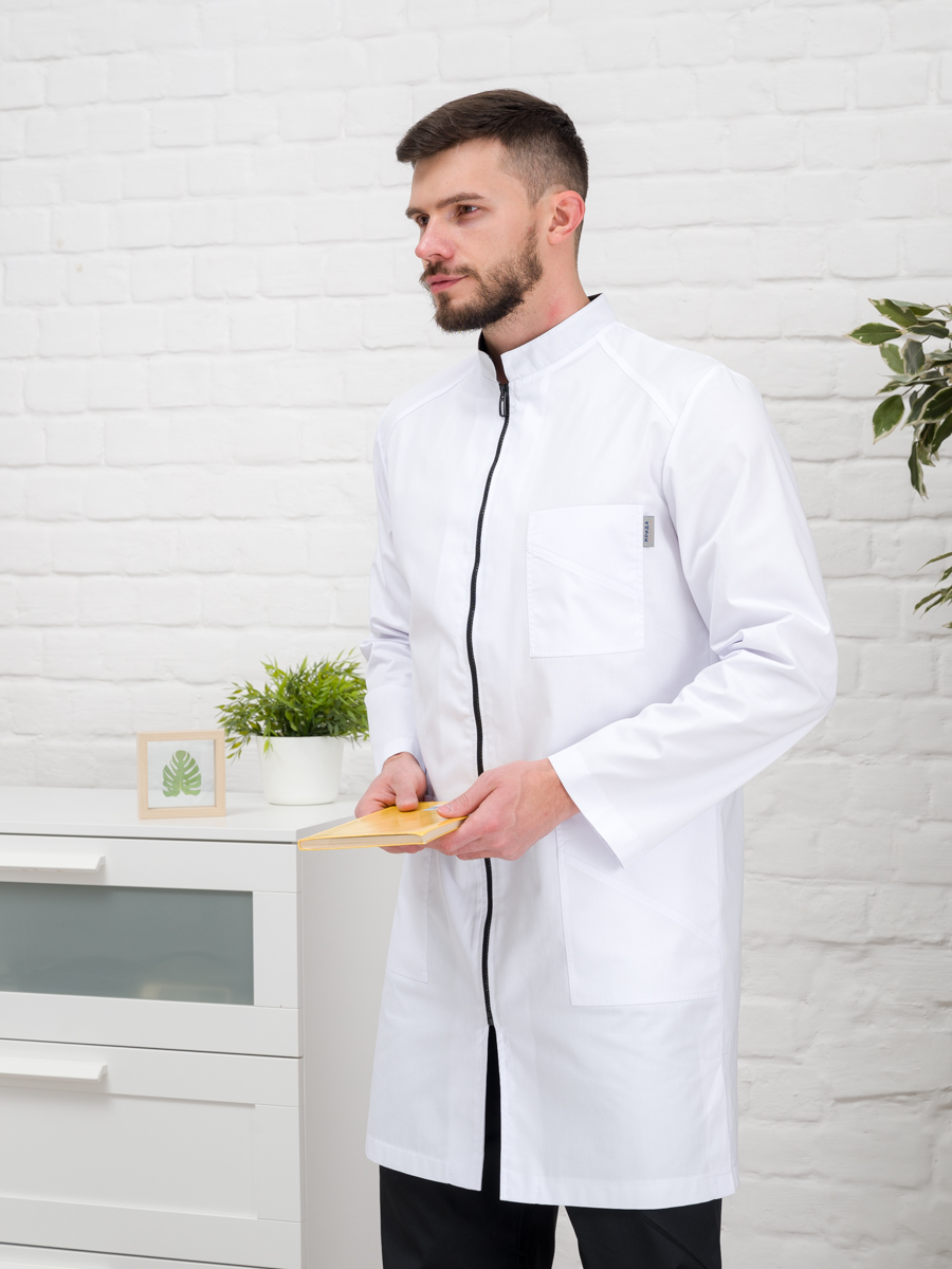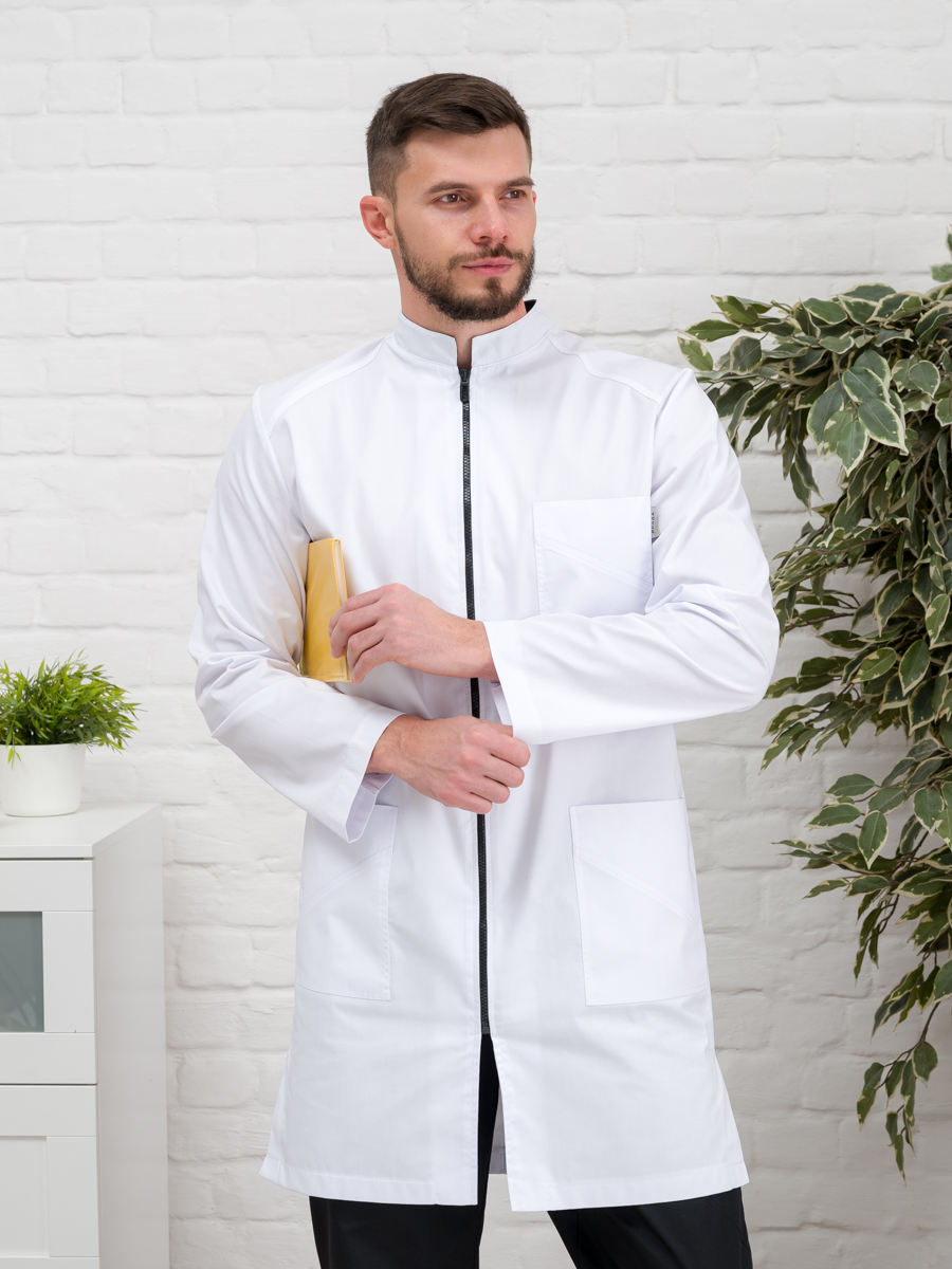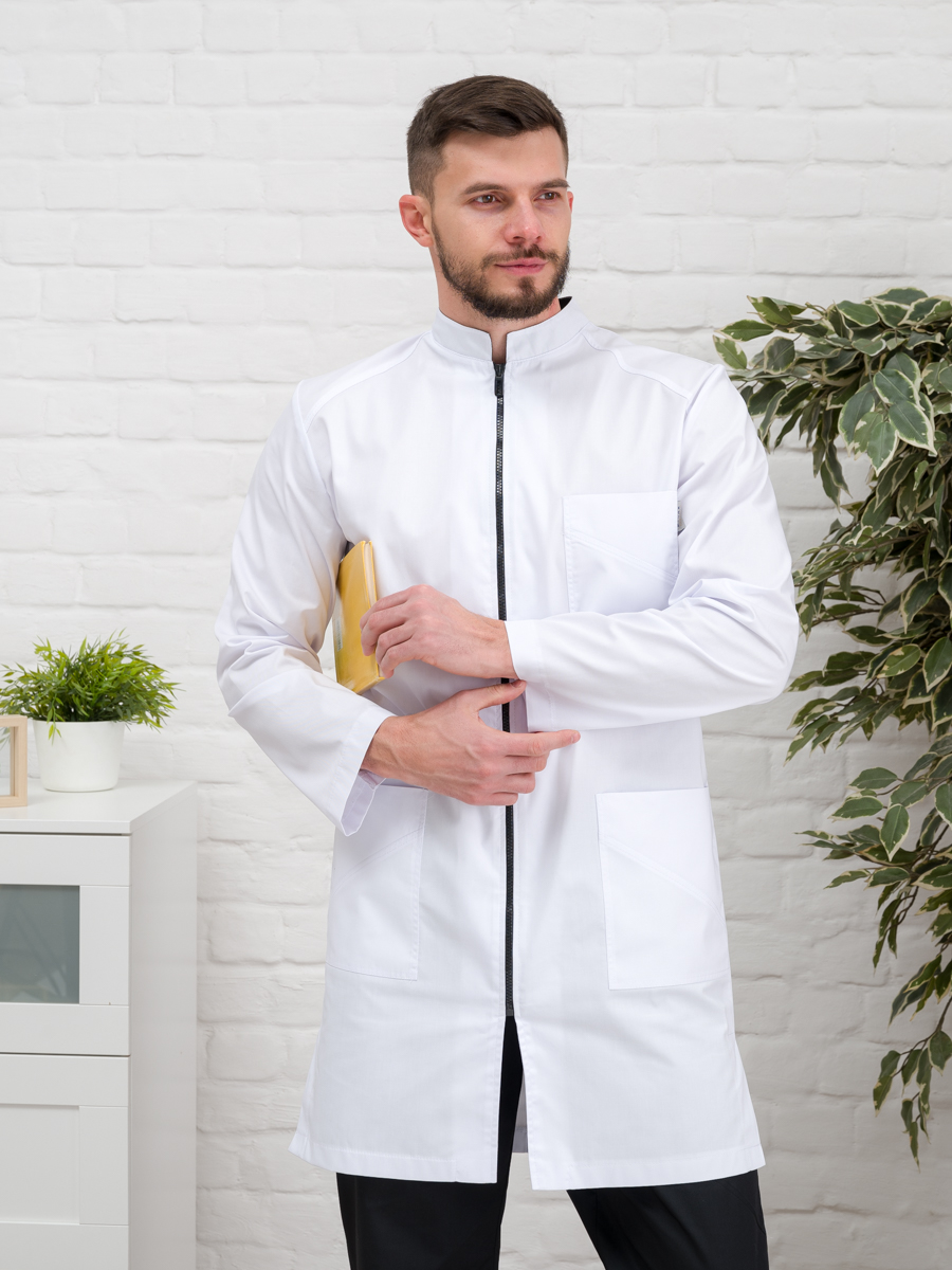 Халат медицинский муж. М-076 ткань Элит-145 (52, молния, белый(0))