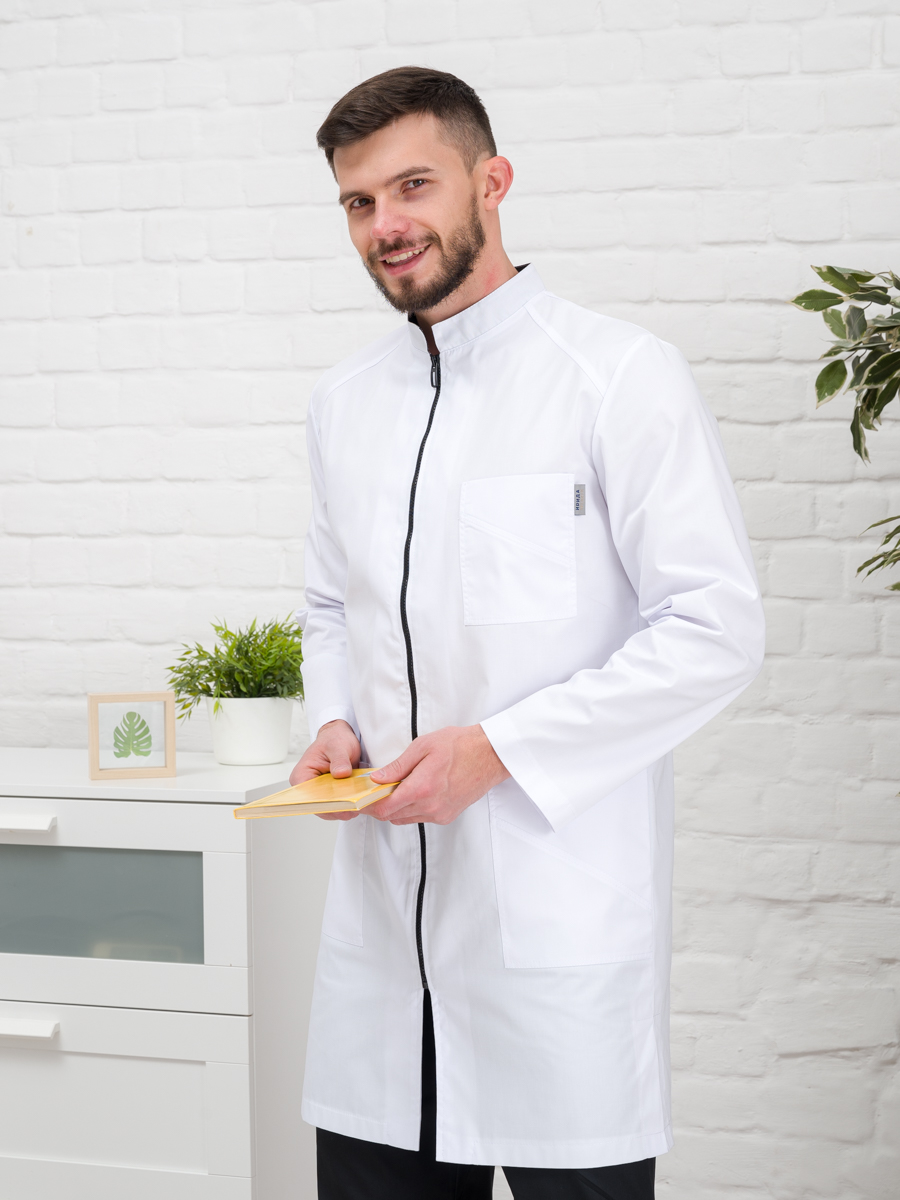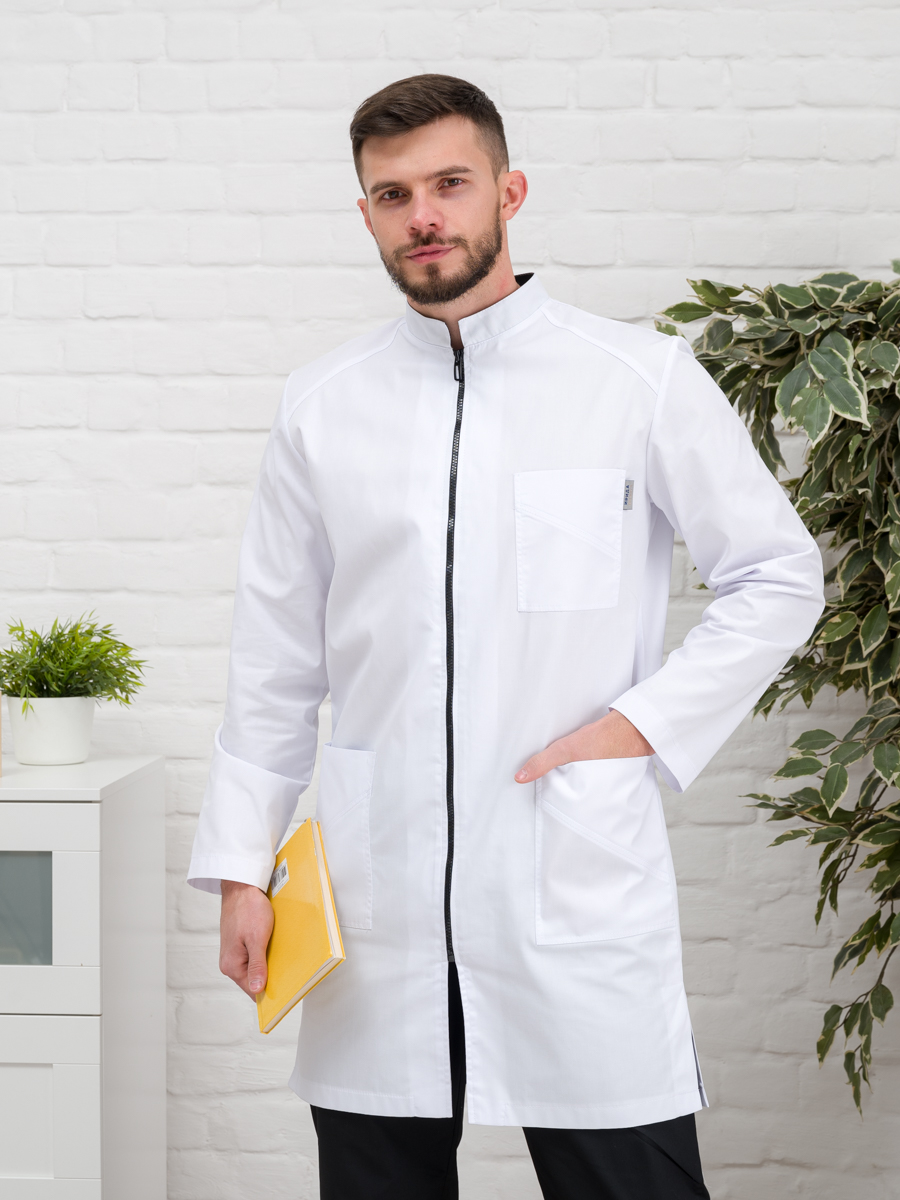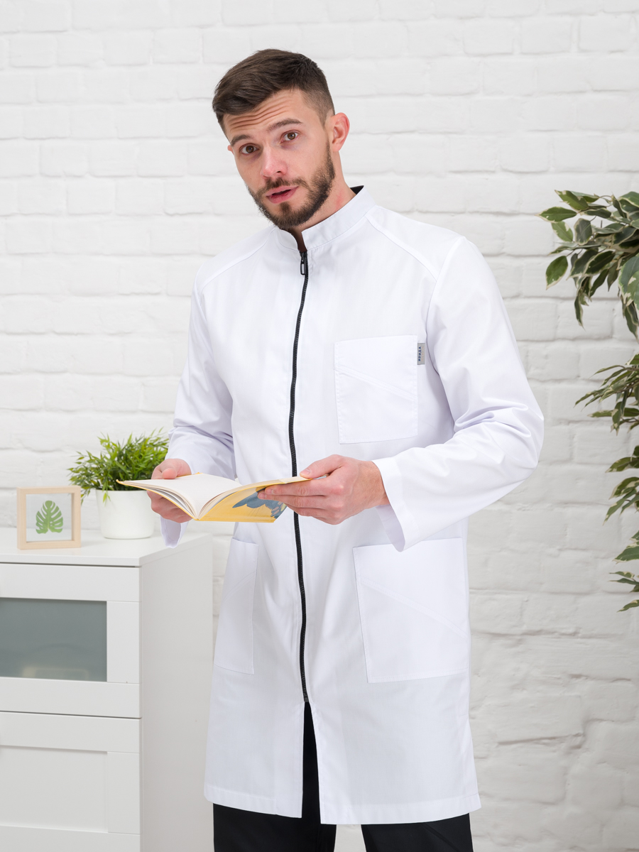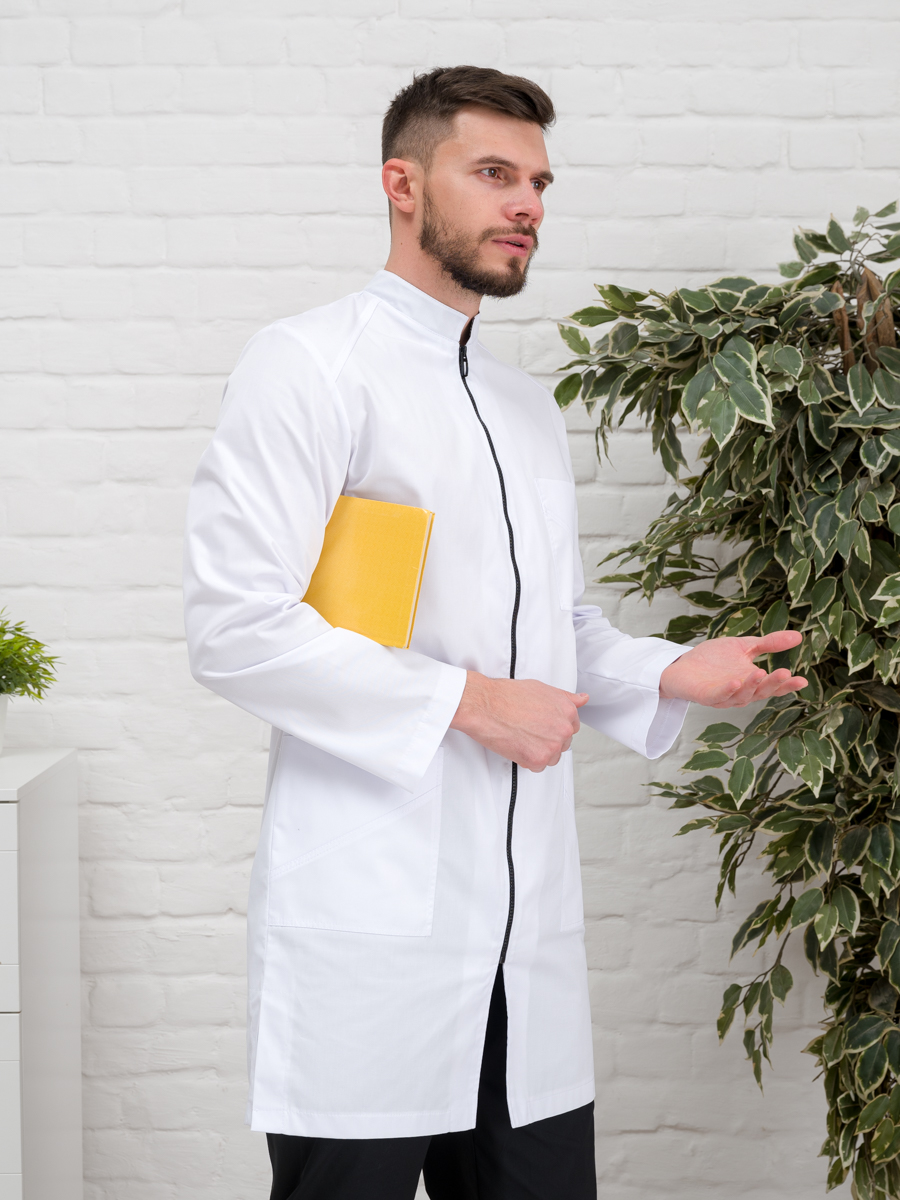 Халат медицинский муж. М-076 ткань Элит-145 (52, молния, белый(0))