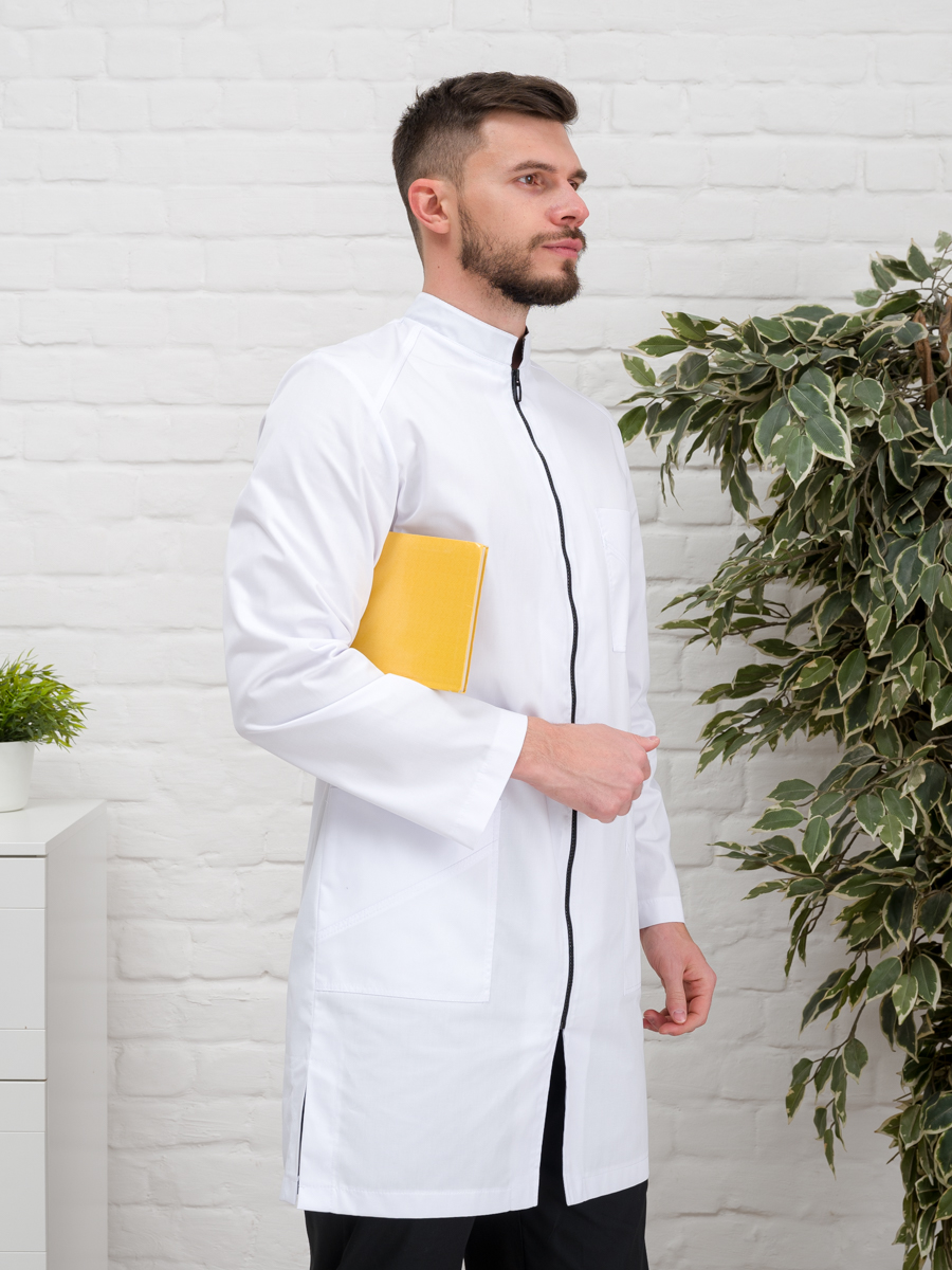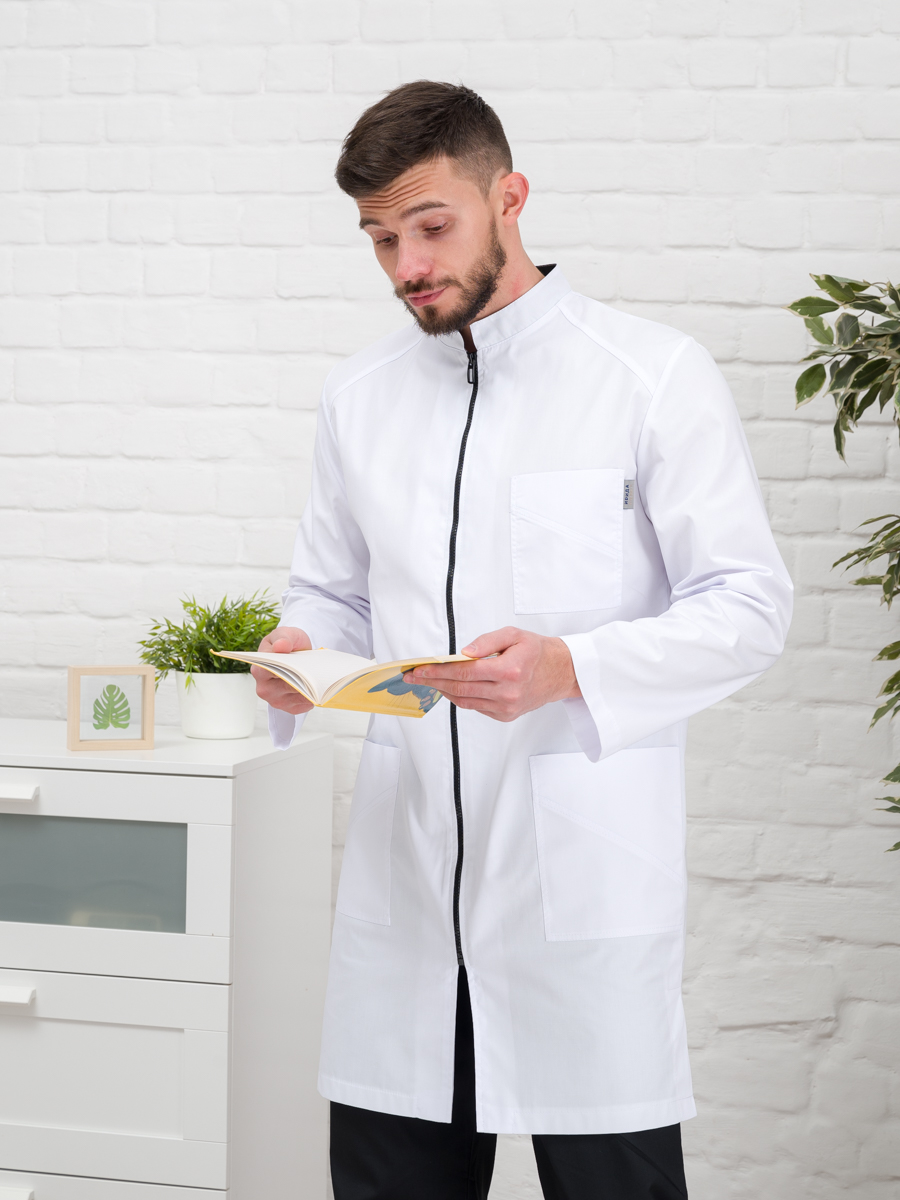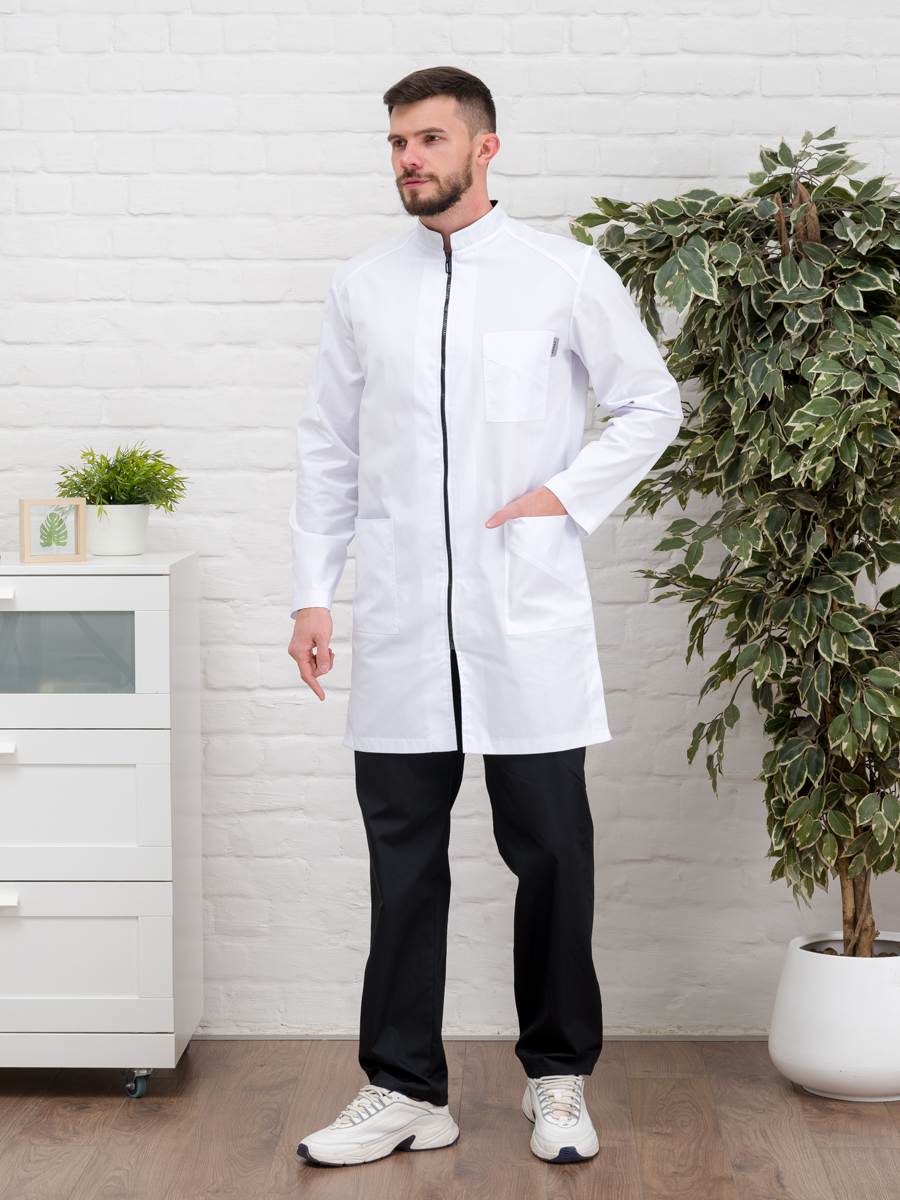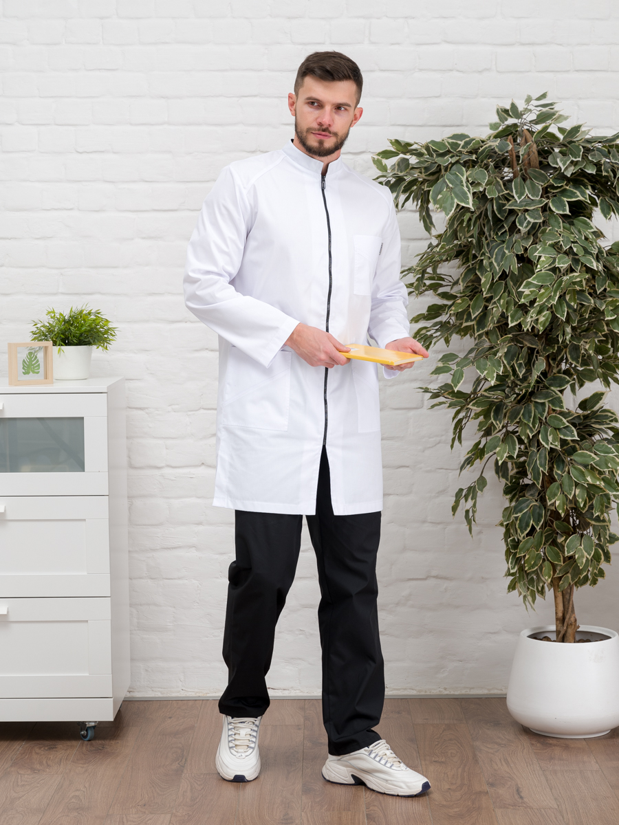 Халат медицинский муж. М-076 ткань Элит-145 (52, молния, белый(0))