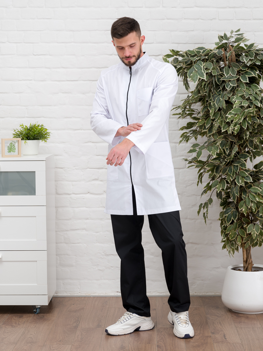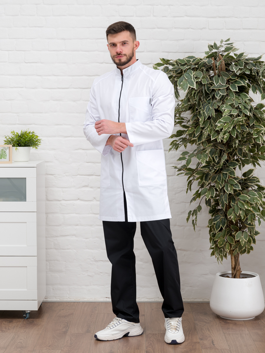 Халат медицинский муж. М-076 ткань Элит-145 (58, молния, белый(0))