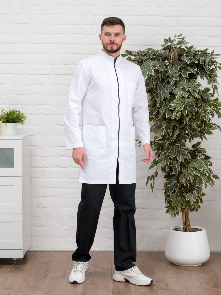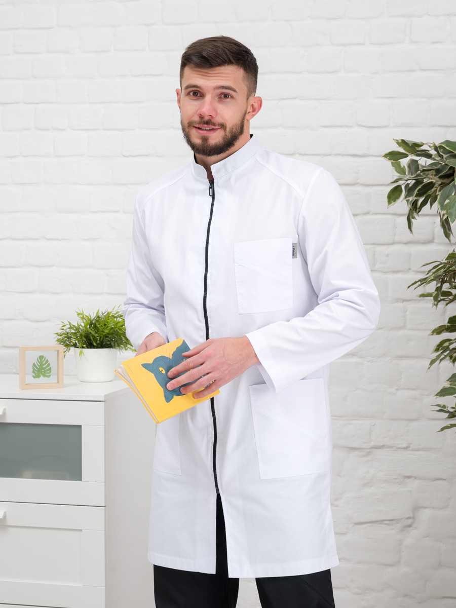 Халат медицинский муж. М-076 ткань Элит-145 (56, молния, белый(0))