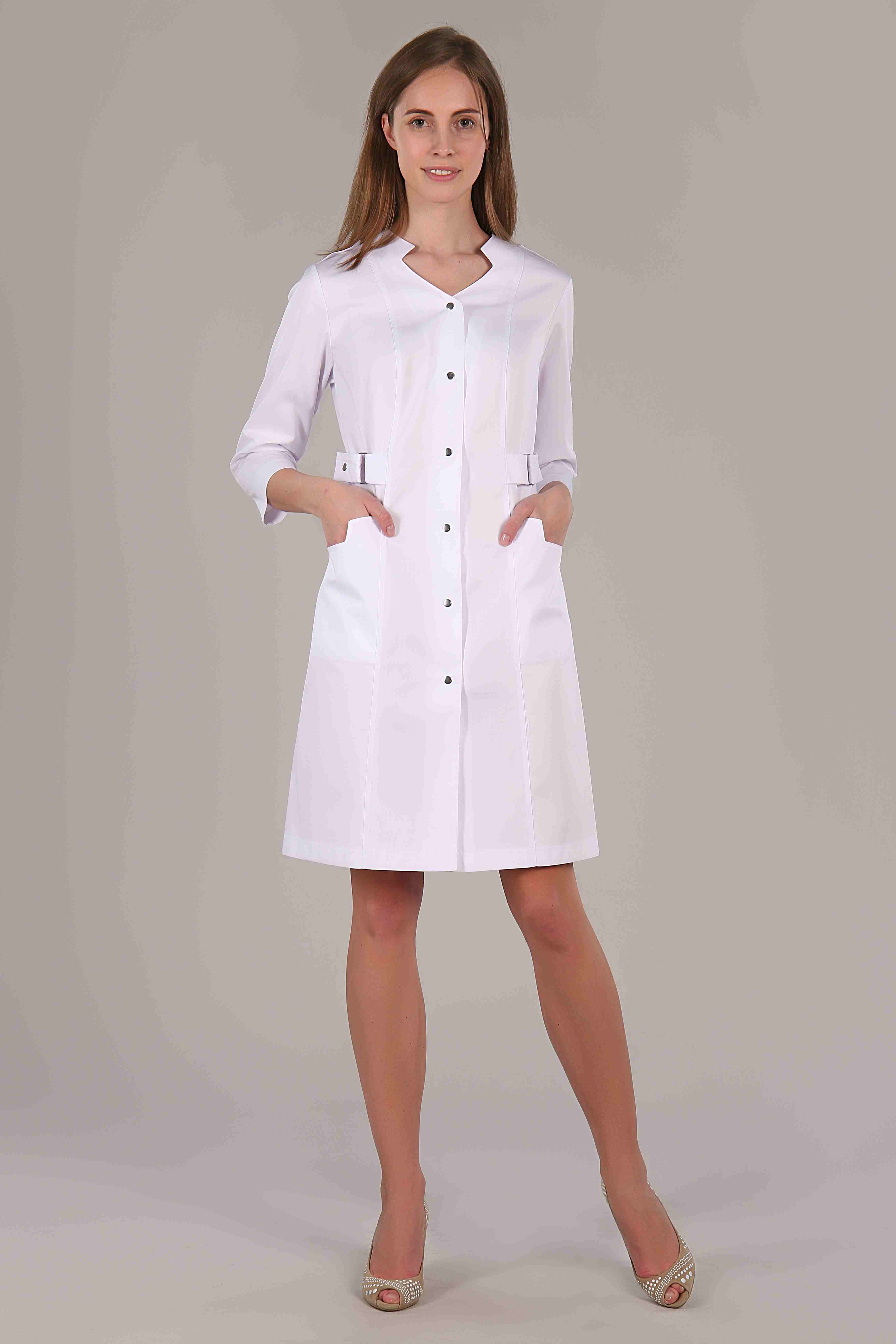 Халат медицинский жен. М-064 ткань Элит-145 (48, кнопки, белый(0))