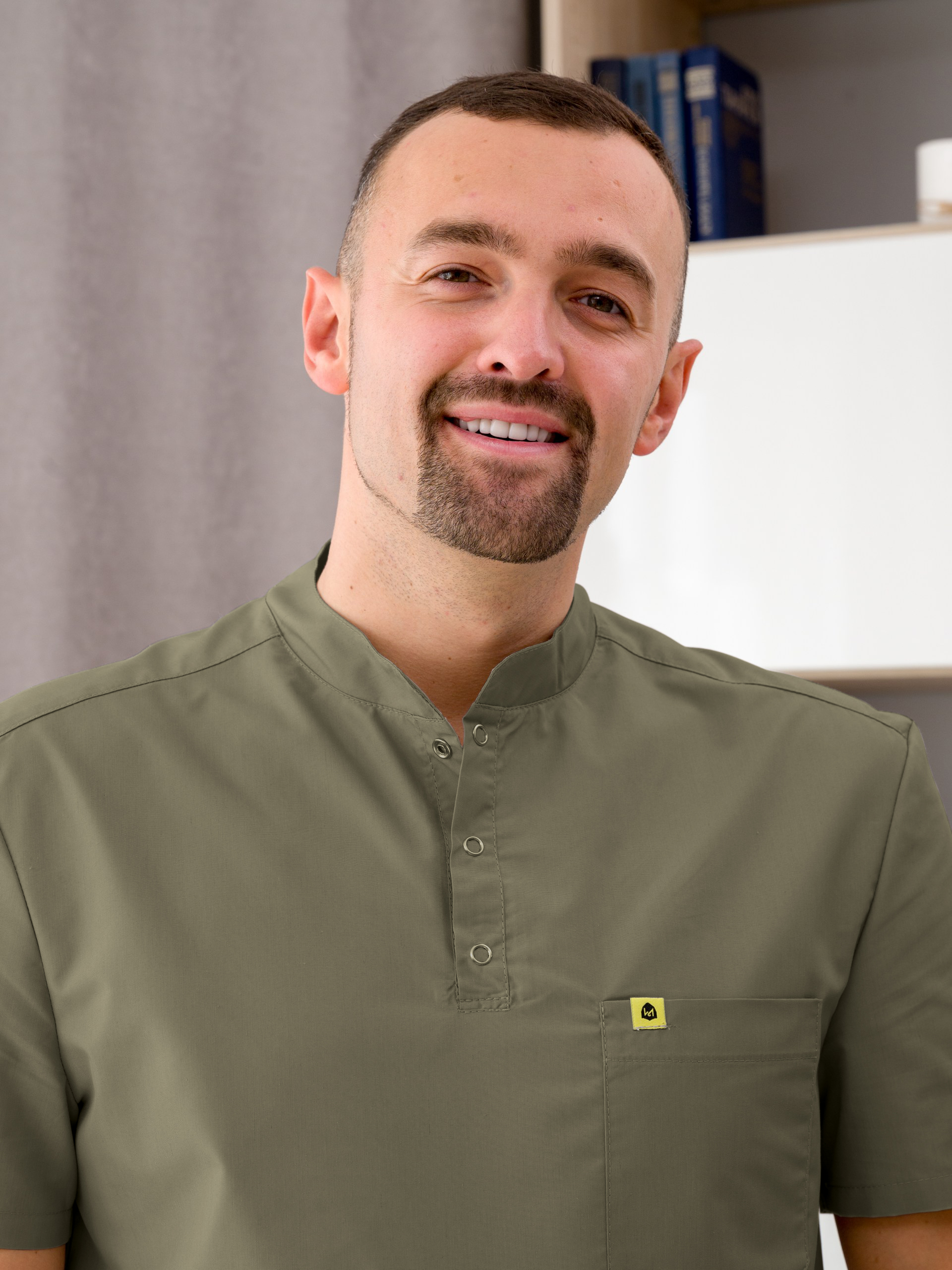 Костюм медицинский муж. М-149-0316 ткань Тиси (52, кнопки, сер.зелён(0316))