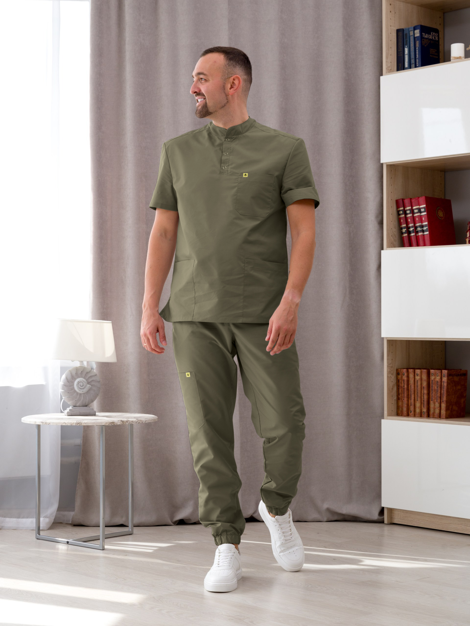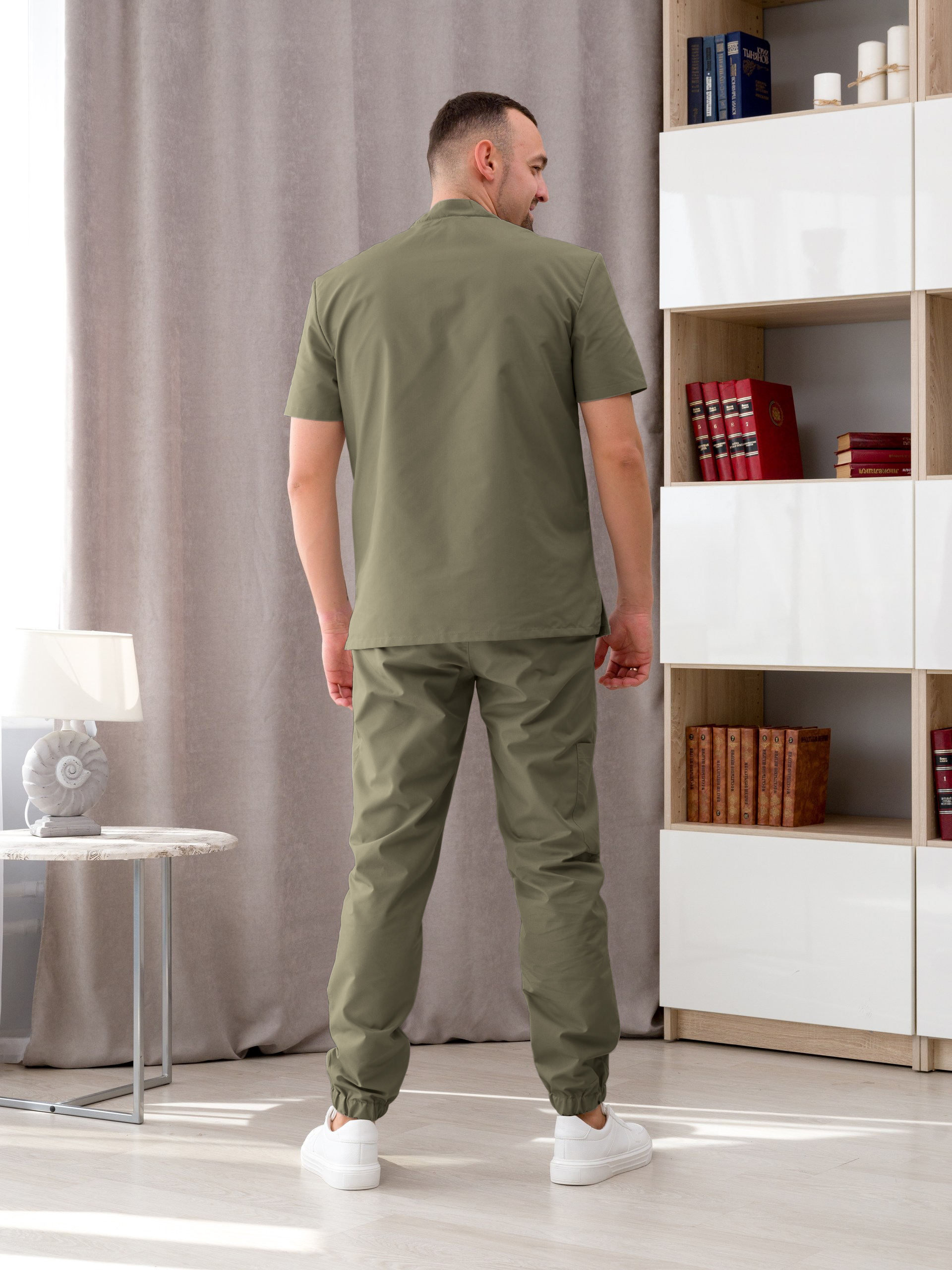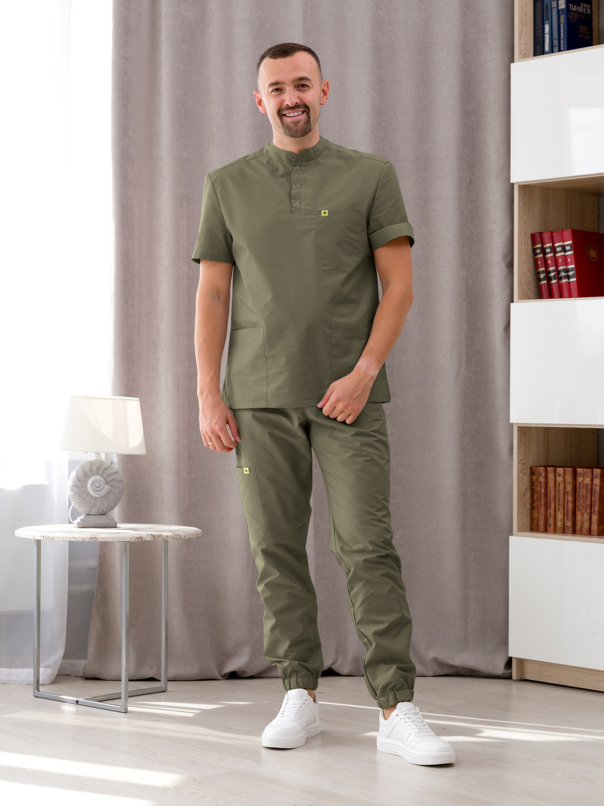 Костюм медицинский муж. М-149-0316 ткань Тиси (46, кнопки, сер.зелён(0316))