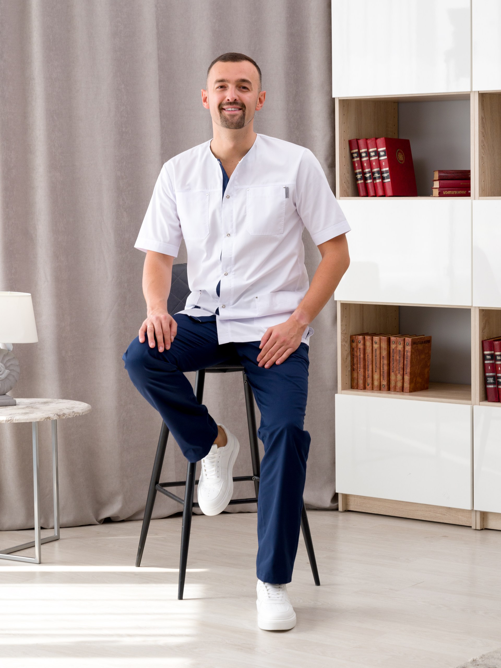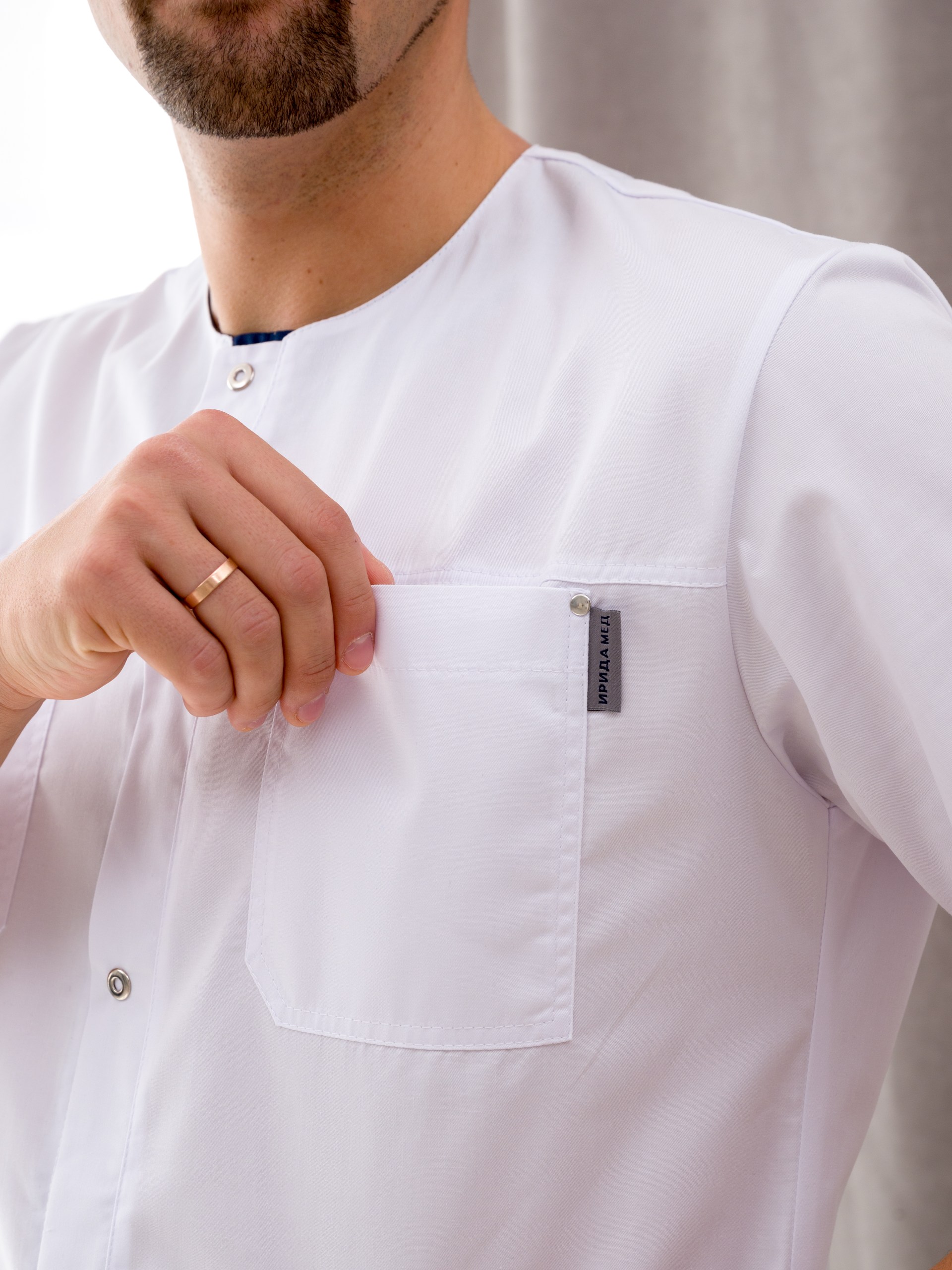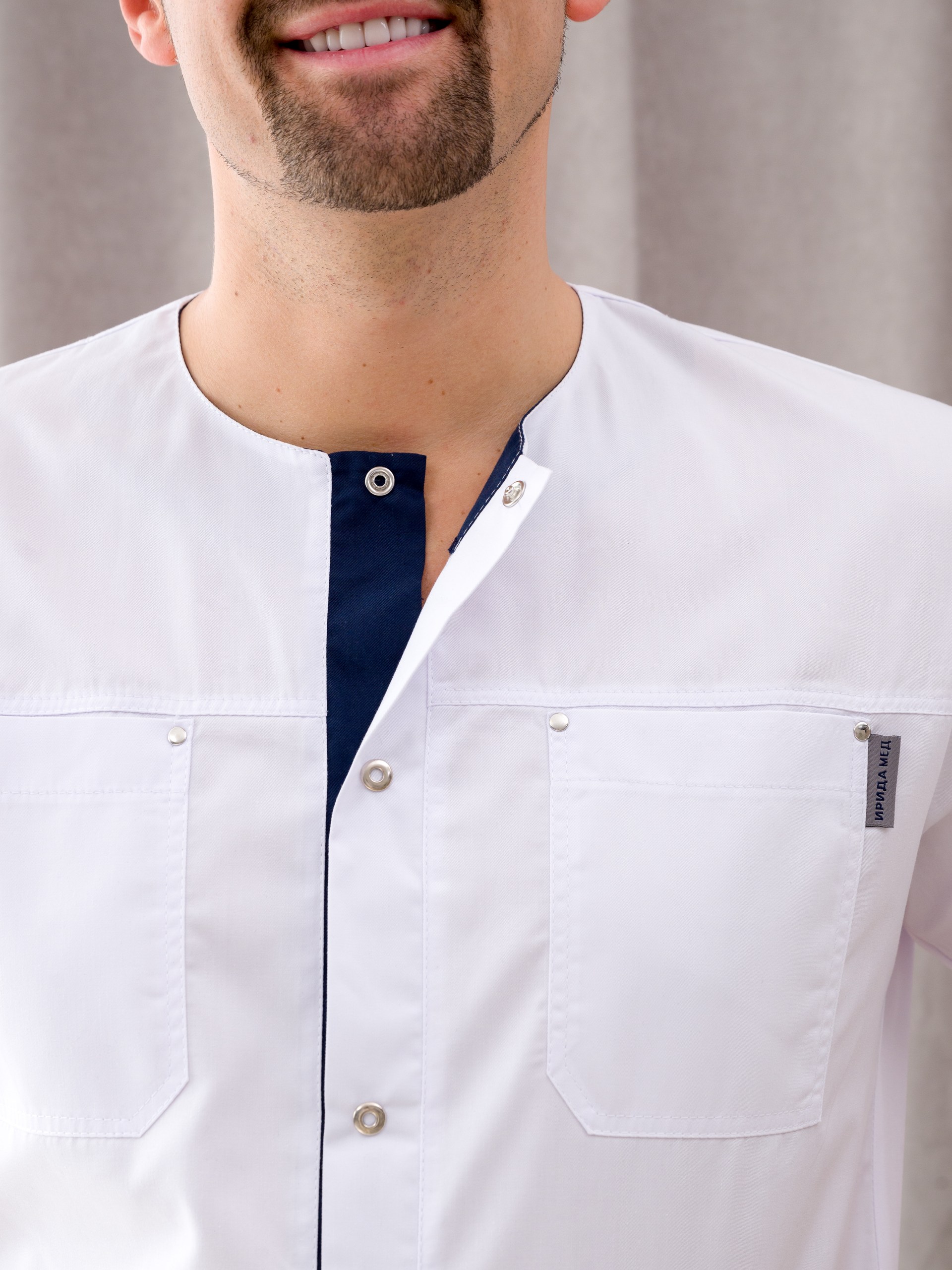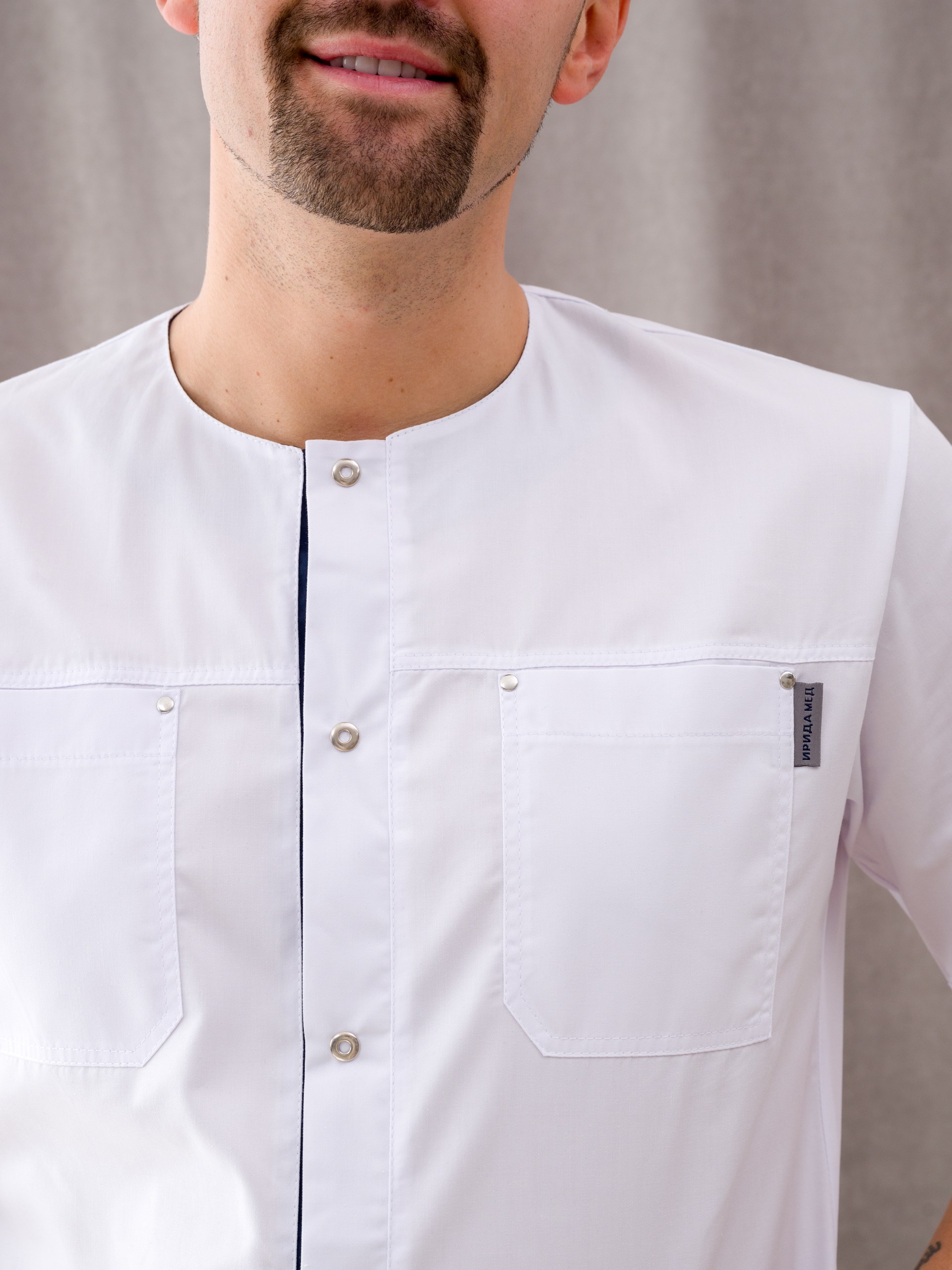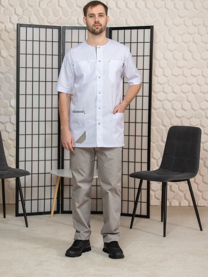 Медицинская одежда мужская от "Ирида - Мед", для тех, кто ценит качество, комфорт и красоту. Униформа готова к заказу в  цветах белый/черника и белый/серый. Подходит для медиков, укомплектован рубашкой и брюками. Рубашка с коротким рукавом и круглым вырезом горловины так-же имеет 4 накладных кармана: 2 находится на груди, 2 других - снизу по бокам. Брюки прямого кроя, без застежки, по бокам в швах карманы. Состав данного изделия: хлопок 50%, полиэфир 50%, ткань "Элит-145". Такой материал легок в уходе, износостойкий, устойчив к образованию катышков, стрелок, зацепок. Мед костюмы подойдут как для медиков, ветеренаров, так и для студентов. Мы выпускаем только стильную, функциональную и красивую медицинскую униформу. У спецодежды нашего бренда есть как маленькие, так и большие размеры. Размерный ряд 46 - 60.