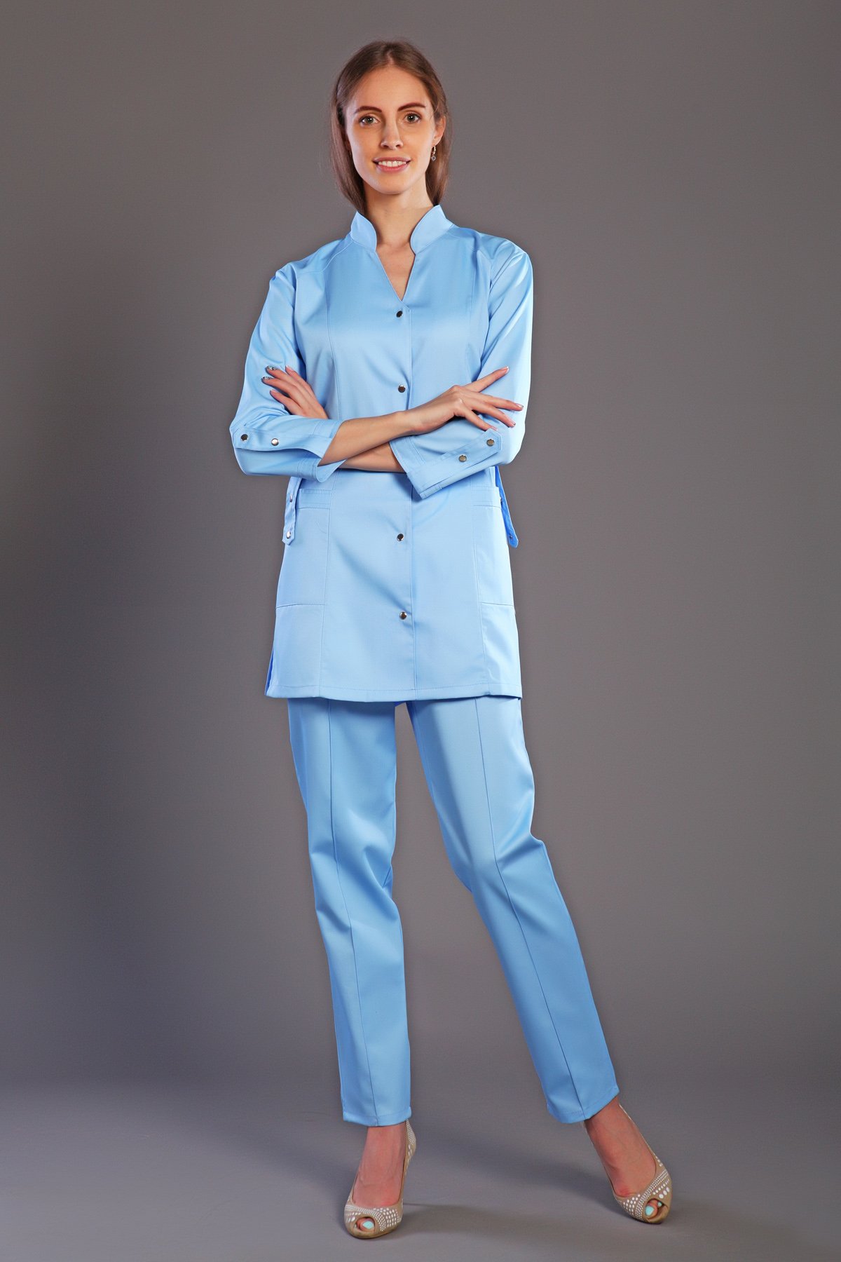 Костюм медицинский жен. М-121 ткань Элит-145 (42, кнопки, неж.голубой(33))