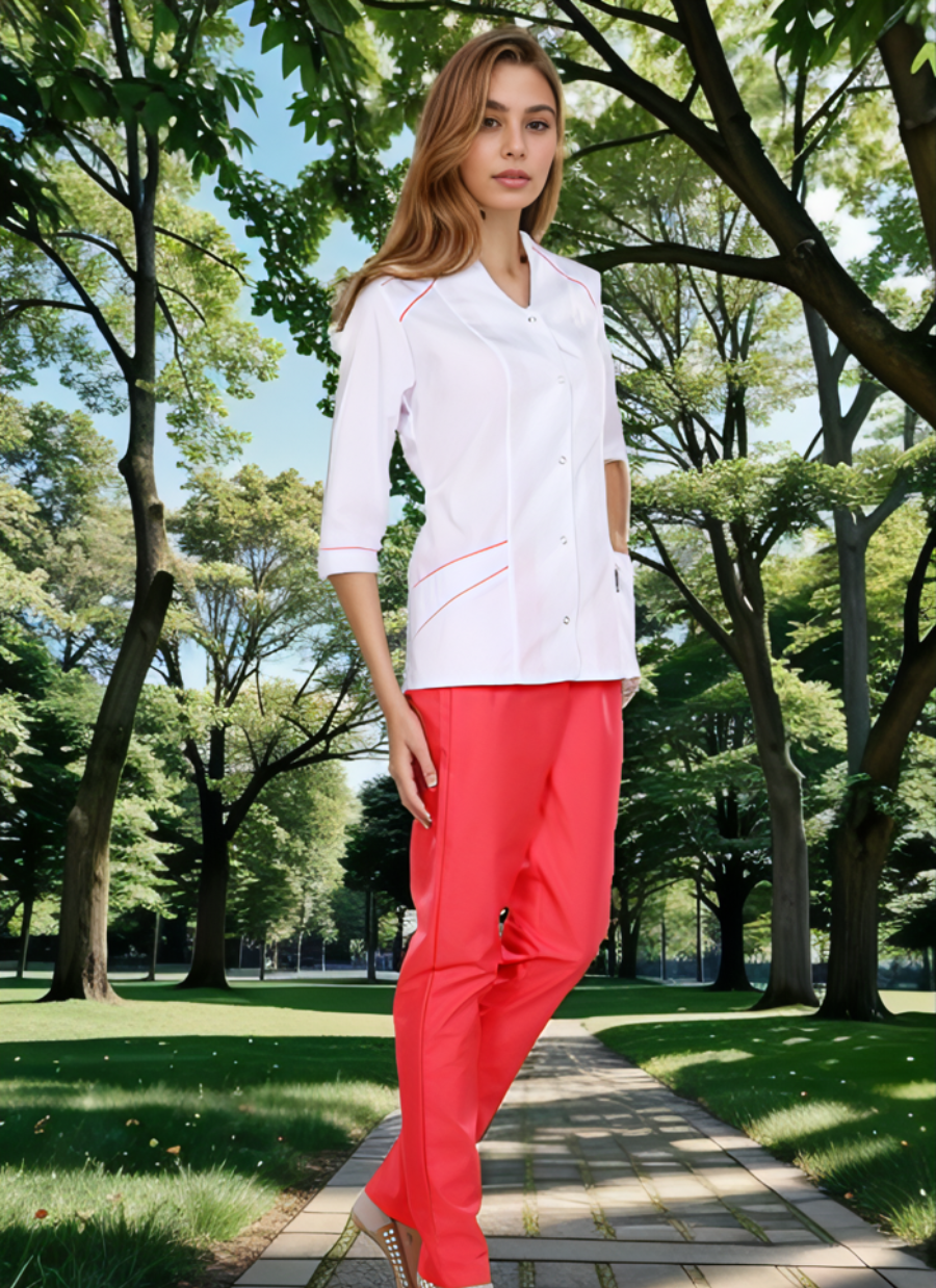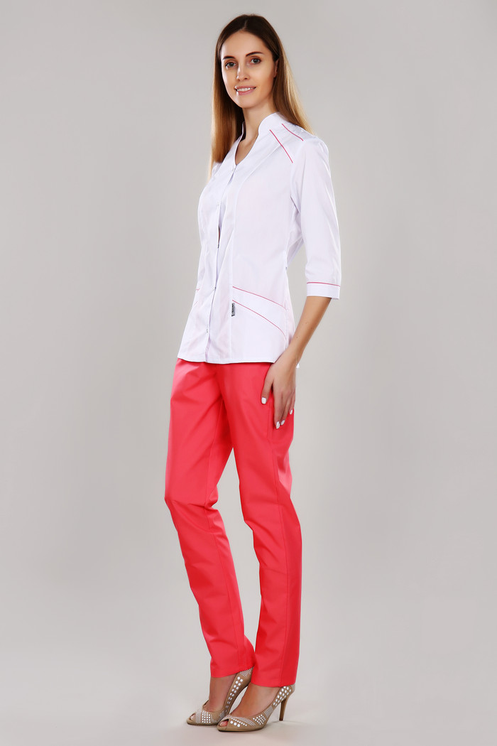 Костюм медицинский жен. М-123 ткань Тиси (42, пуговицы, коралл (40))
