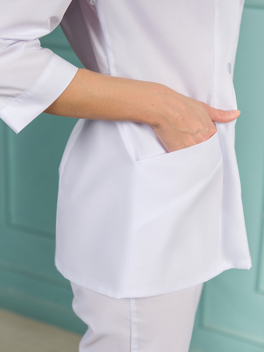 Костюм медицинский жен. М-123 ткань Тиси (56, кнопки, белый)
