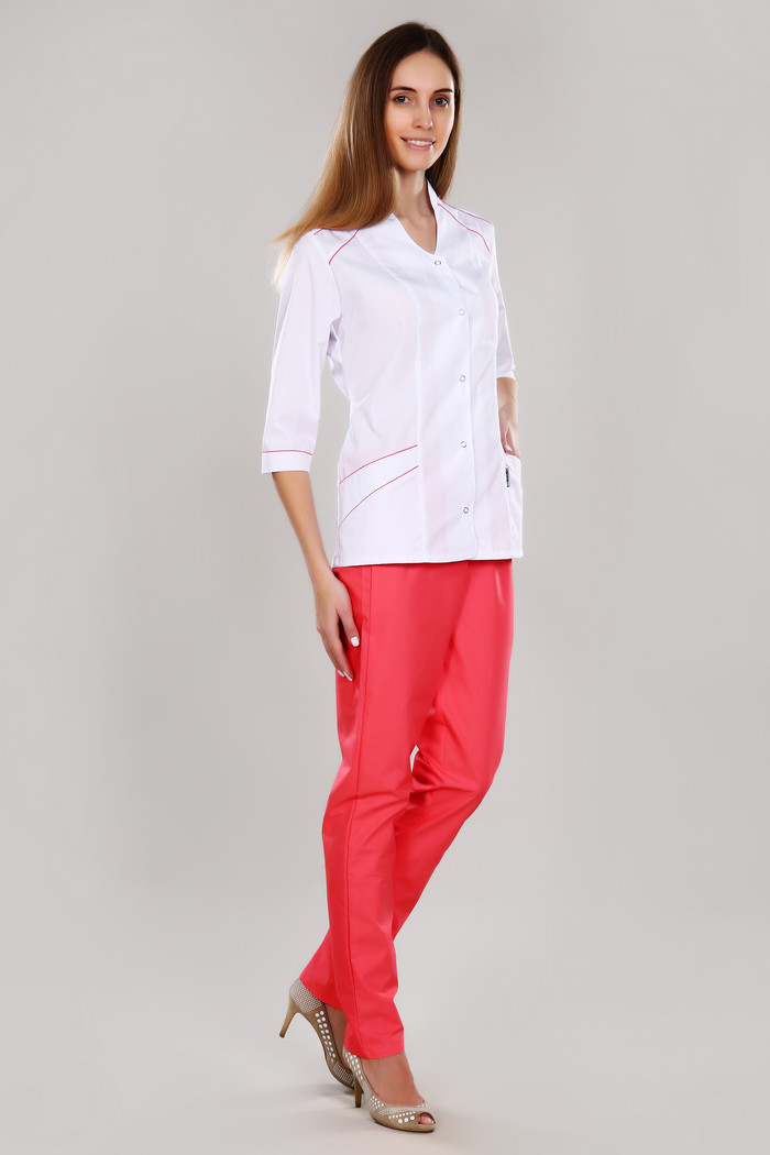 Костюм медицинский жен. М-123 ткань Тиси (56, кнопки, коралл (40))