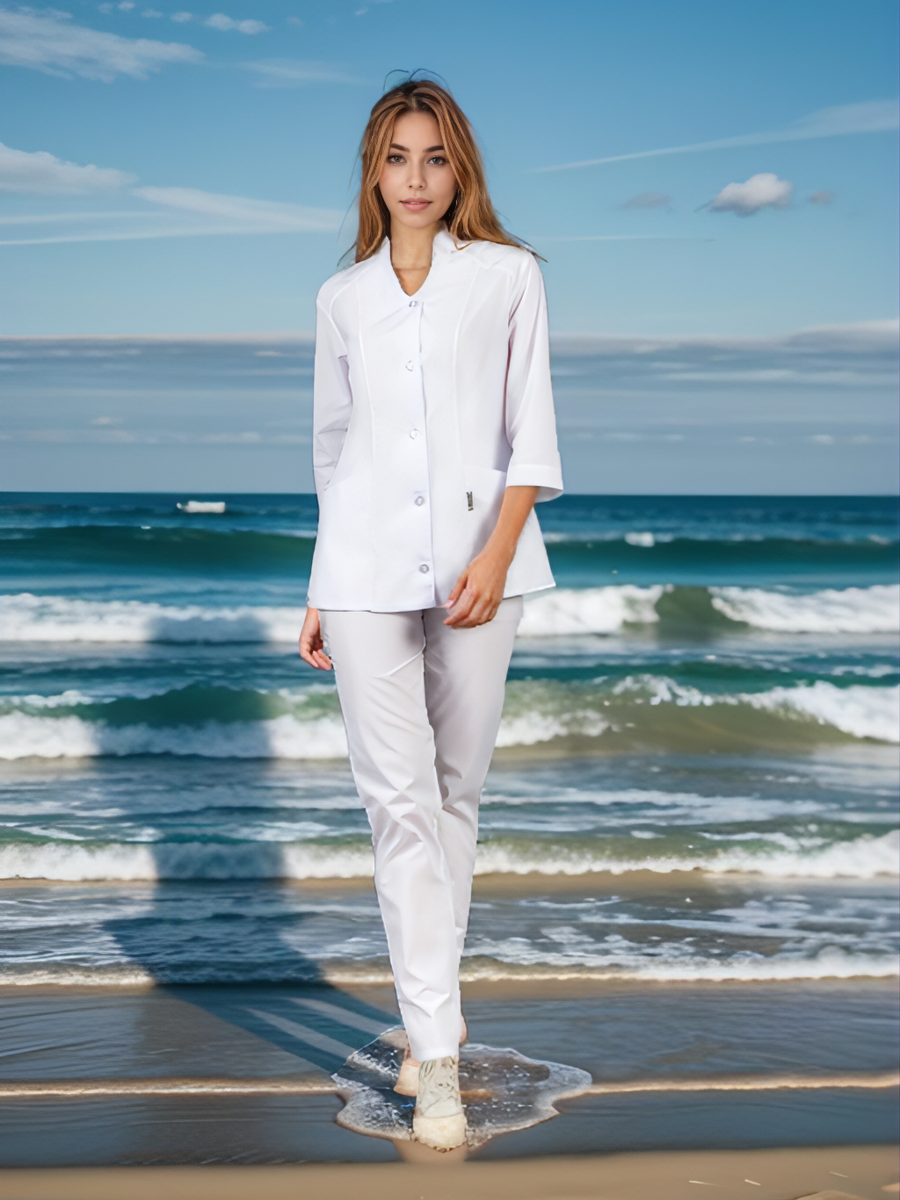 Костюм медицинский жен. М-123 ткань Тиси (56, пуговицы, белый)