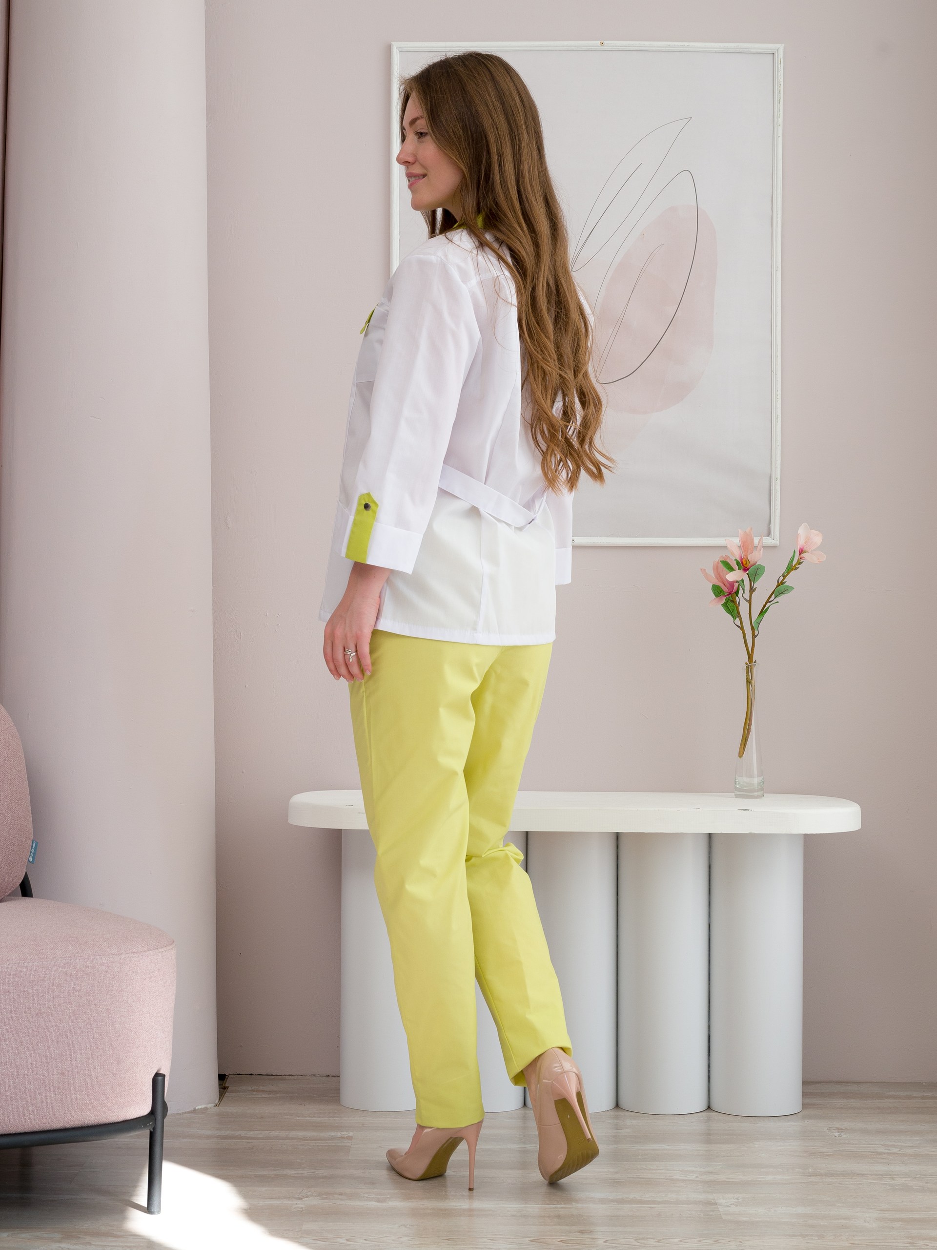 Костюм медицинский жен. М-124 ткань Тиси (58, пуговицы, лайм (84))