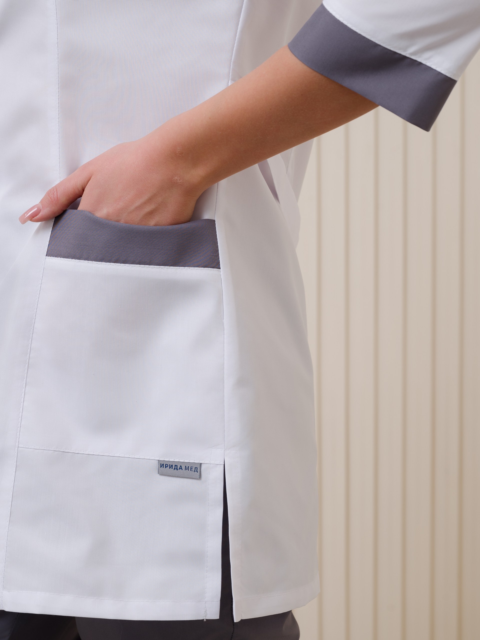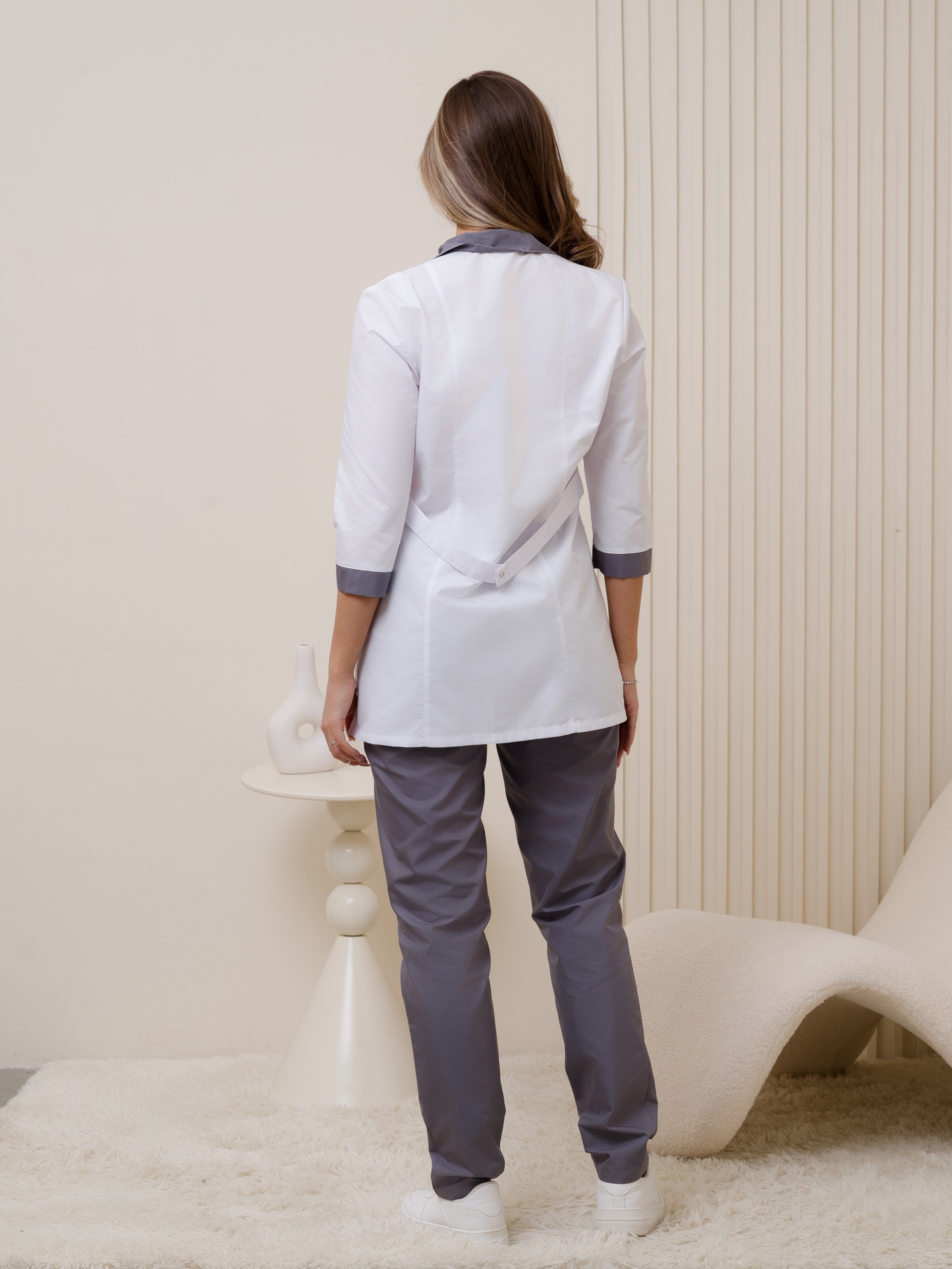 Костюм медицинский жен. М-127-0/73 ткань Тиси (60/62, кнопки, бел(0)/графит(73))