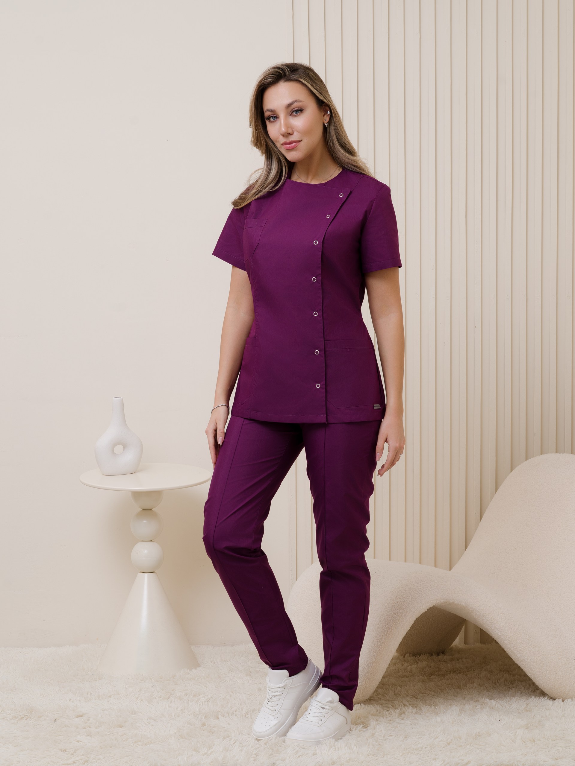 Костюм медицинский жен. М-132-28 ткань Тиси (46, кнопки, баклажан(28))