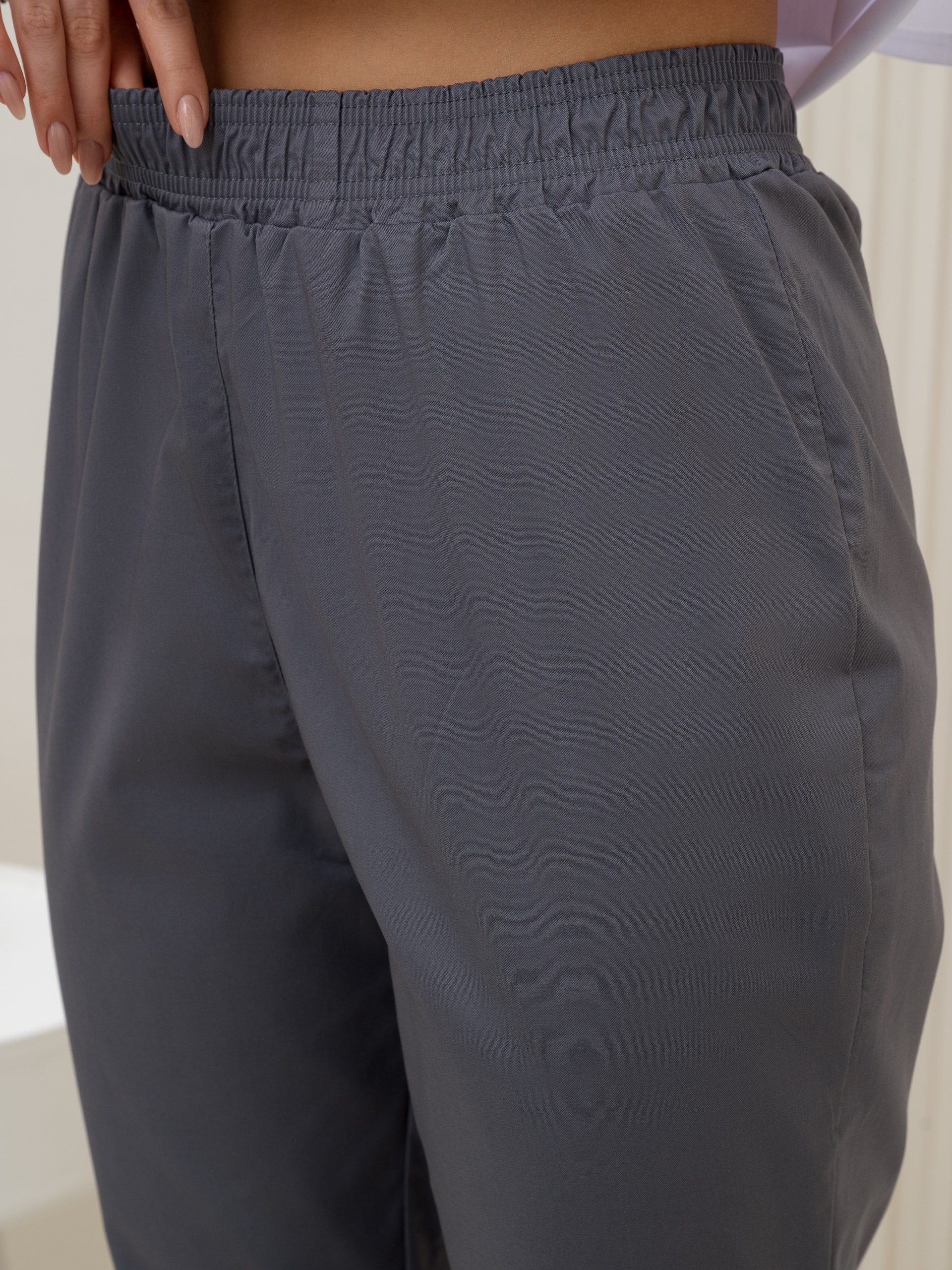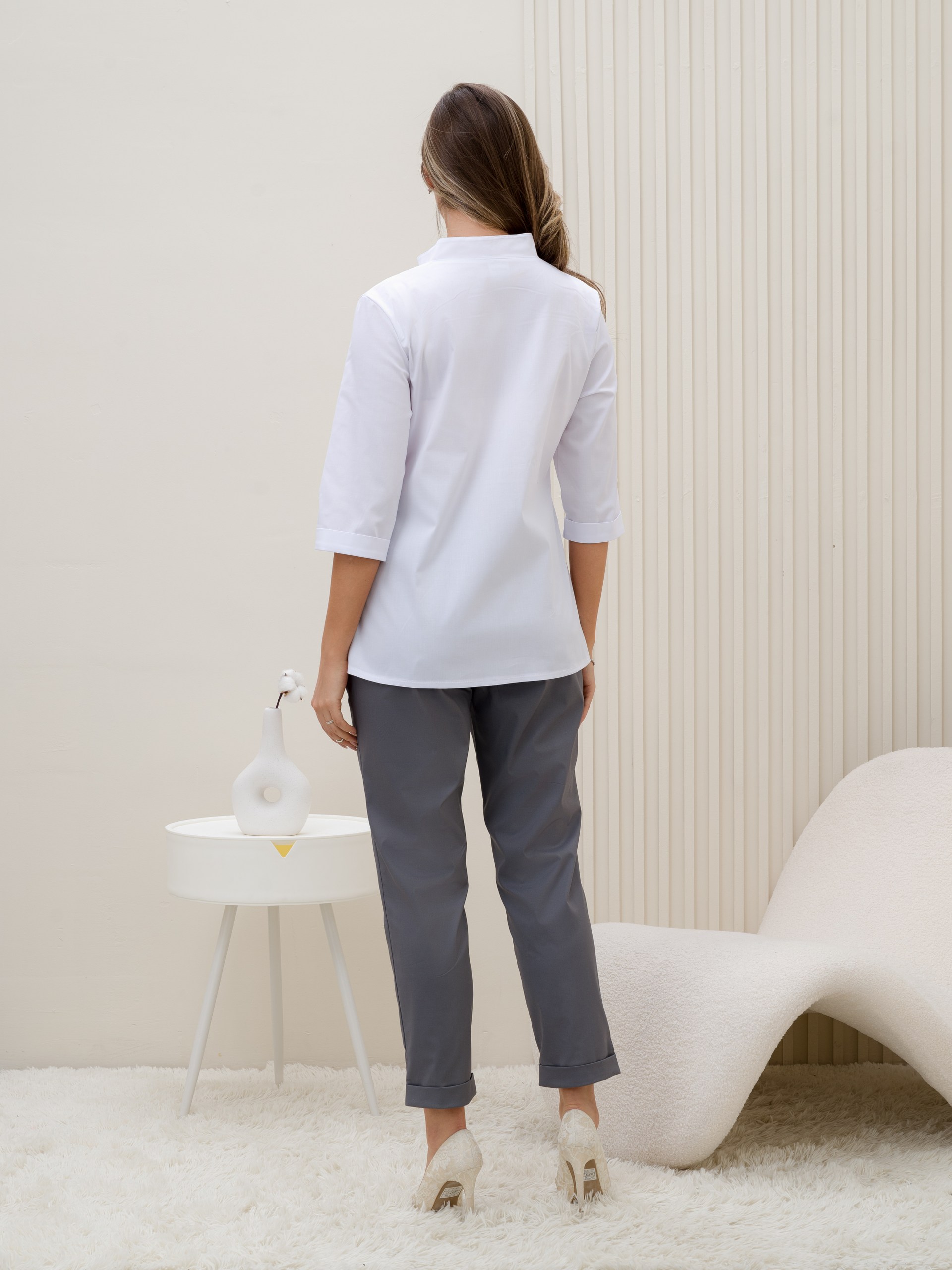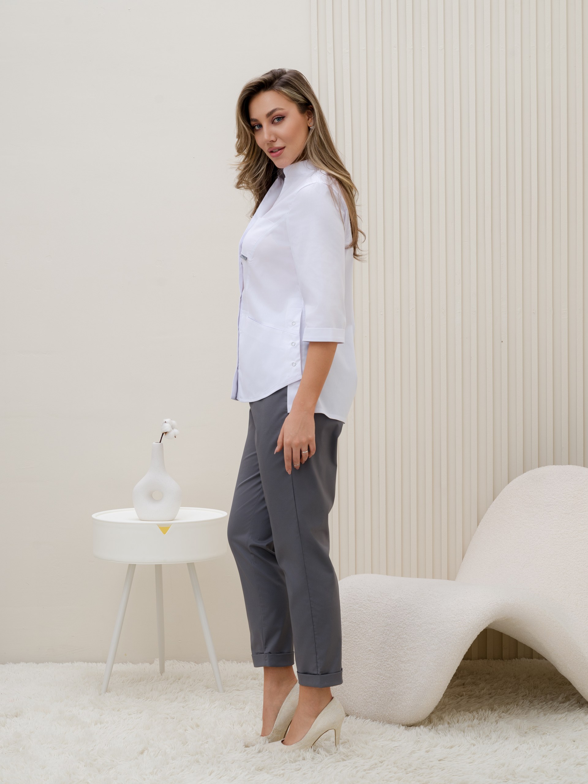 Костюм медицинский жен. М-135-0/73 ткань Элит-145/Стрейч (50, кнопки, бел(0)/графит(73))