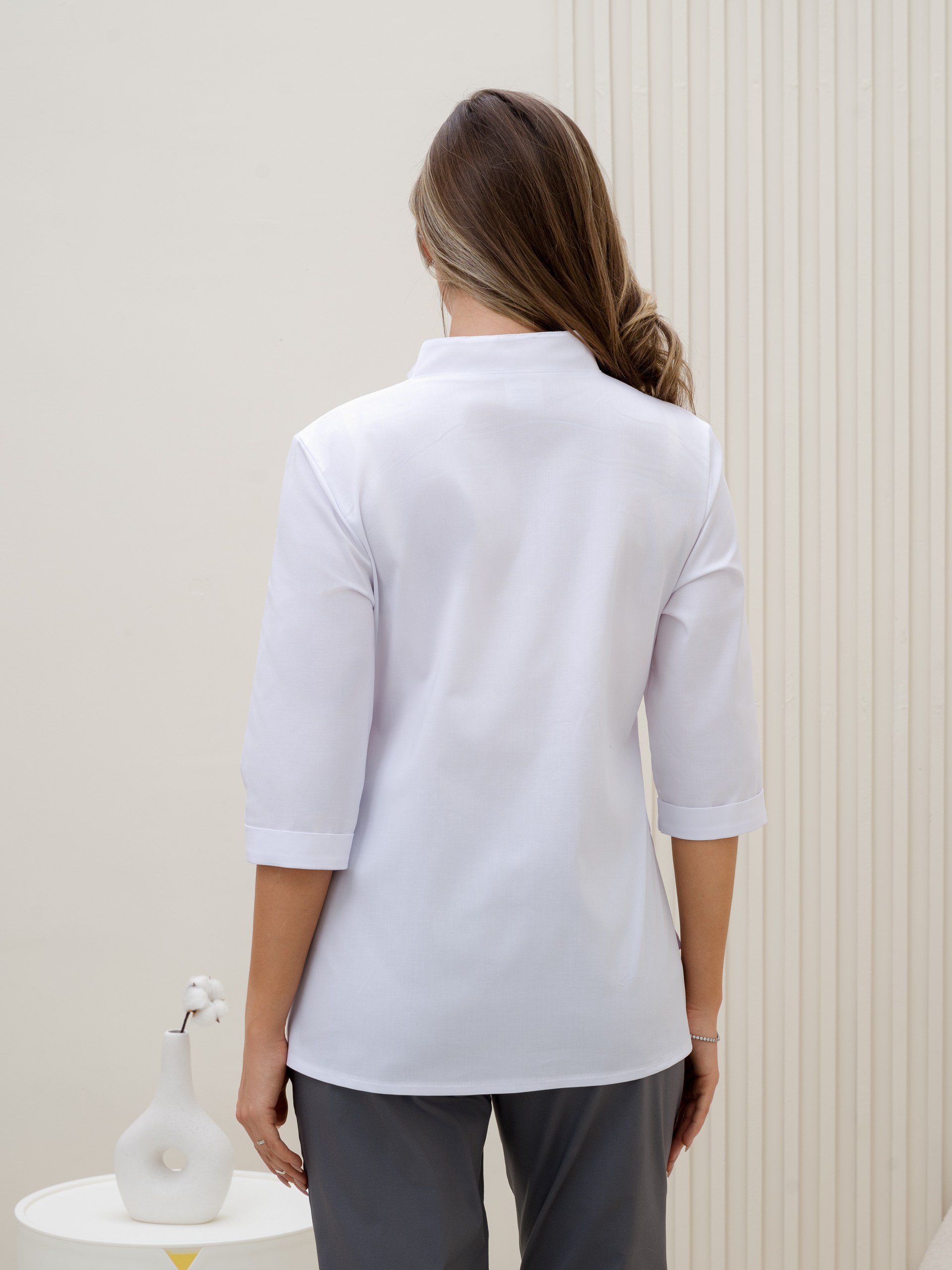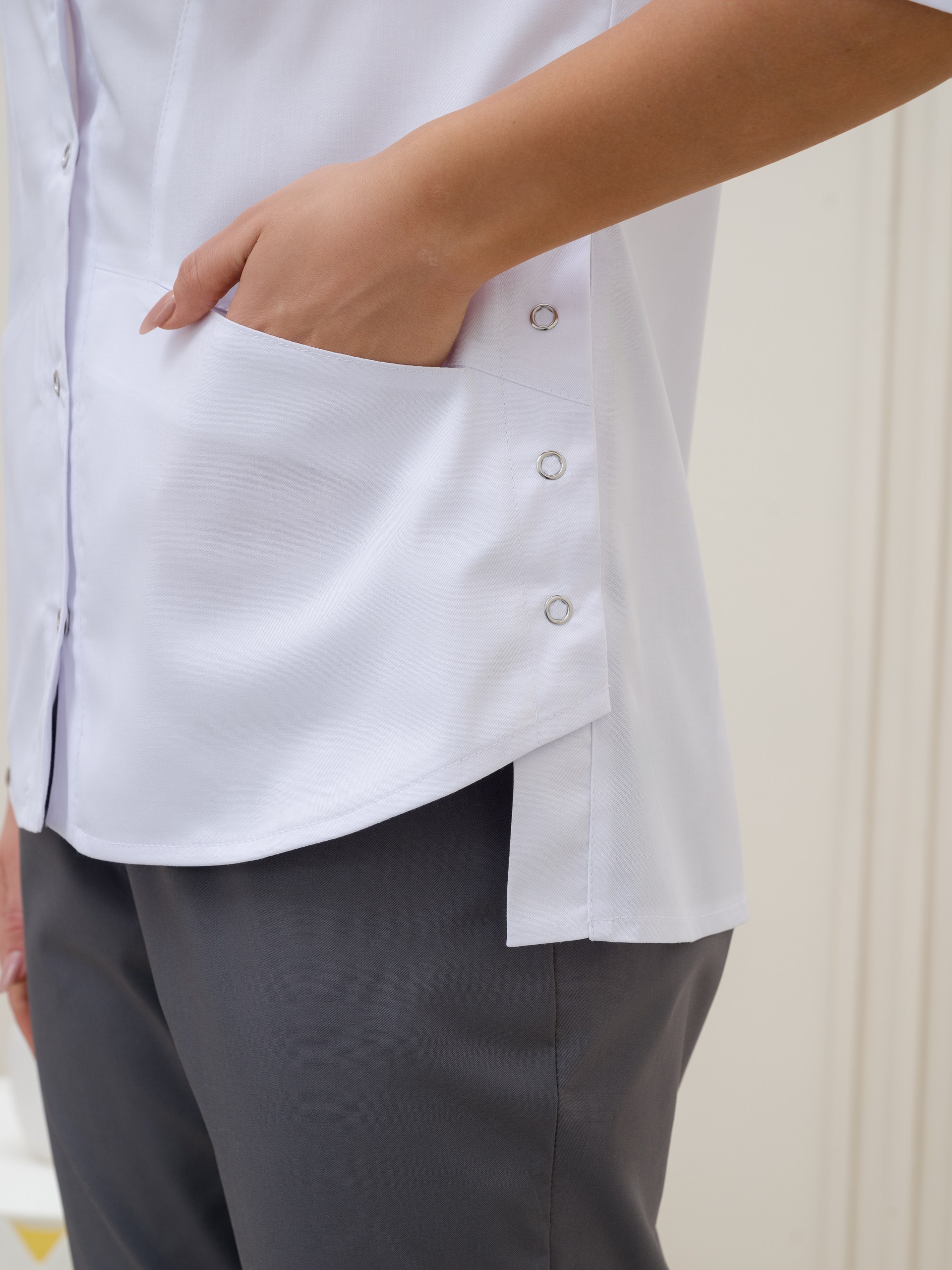 Костюм медицинский жен. М-135-0/73 ткань Элит-145/Стрейч (64, кнопки, бел(0)/графит(73))