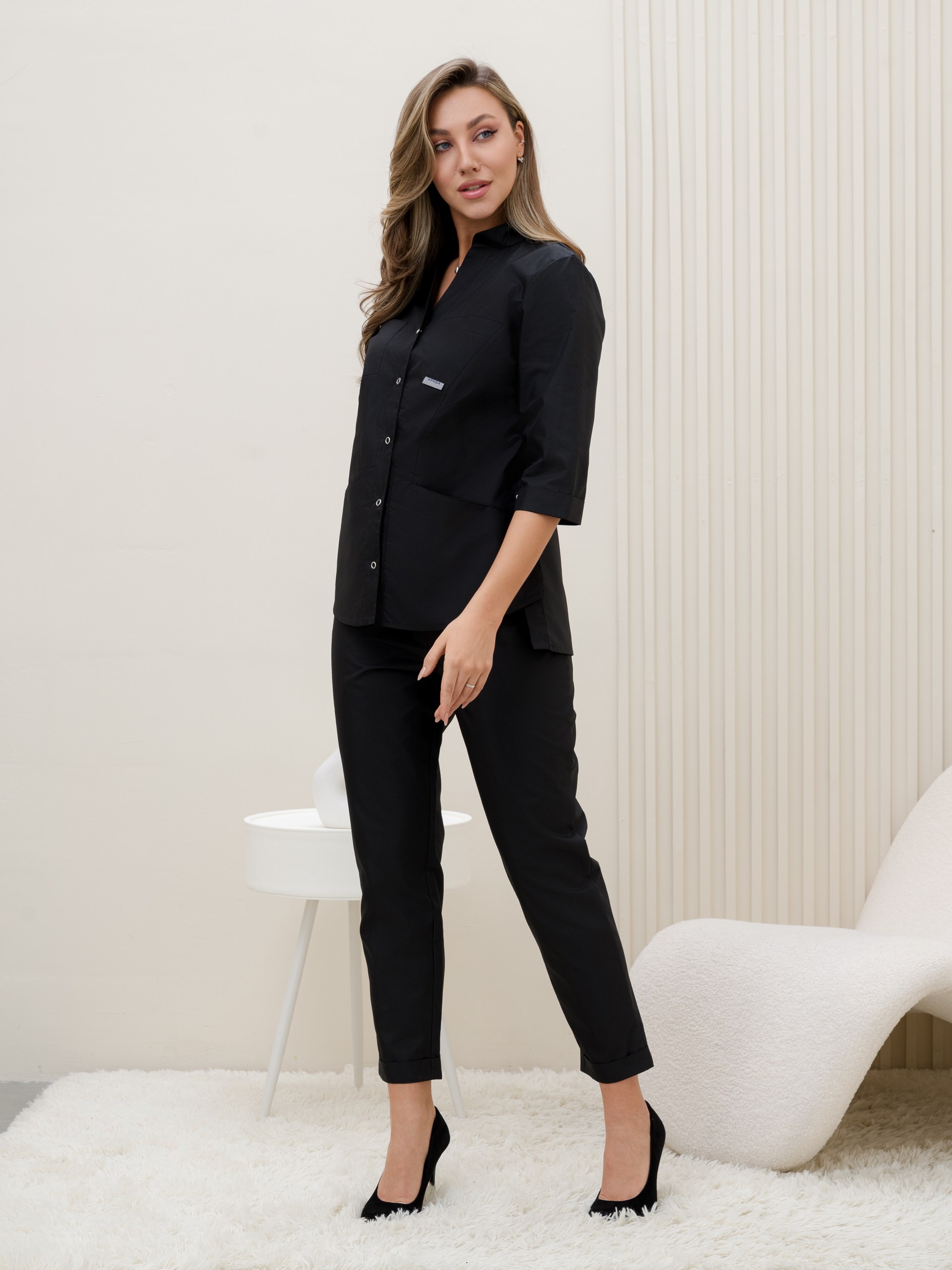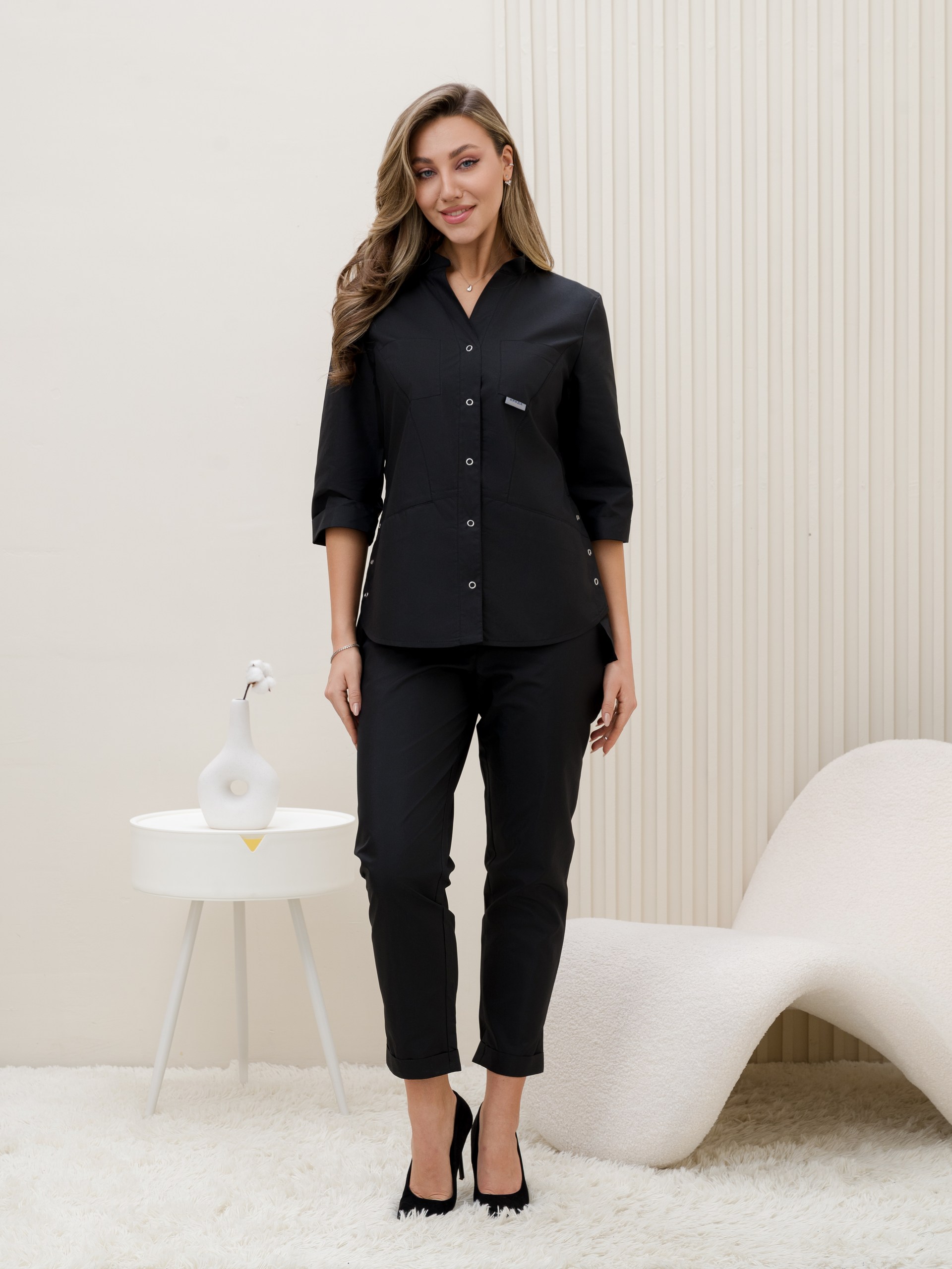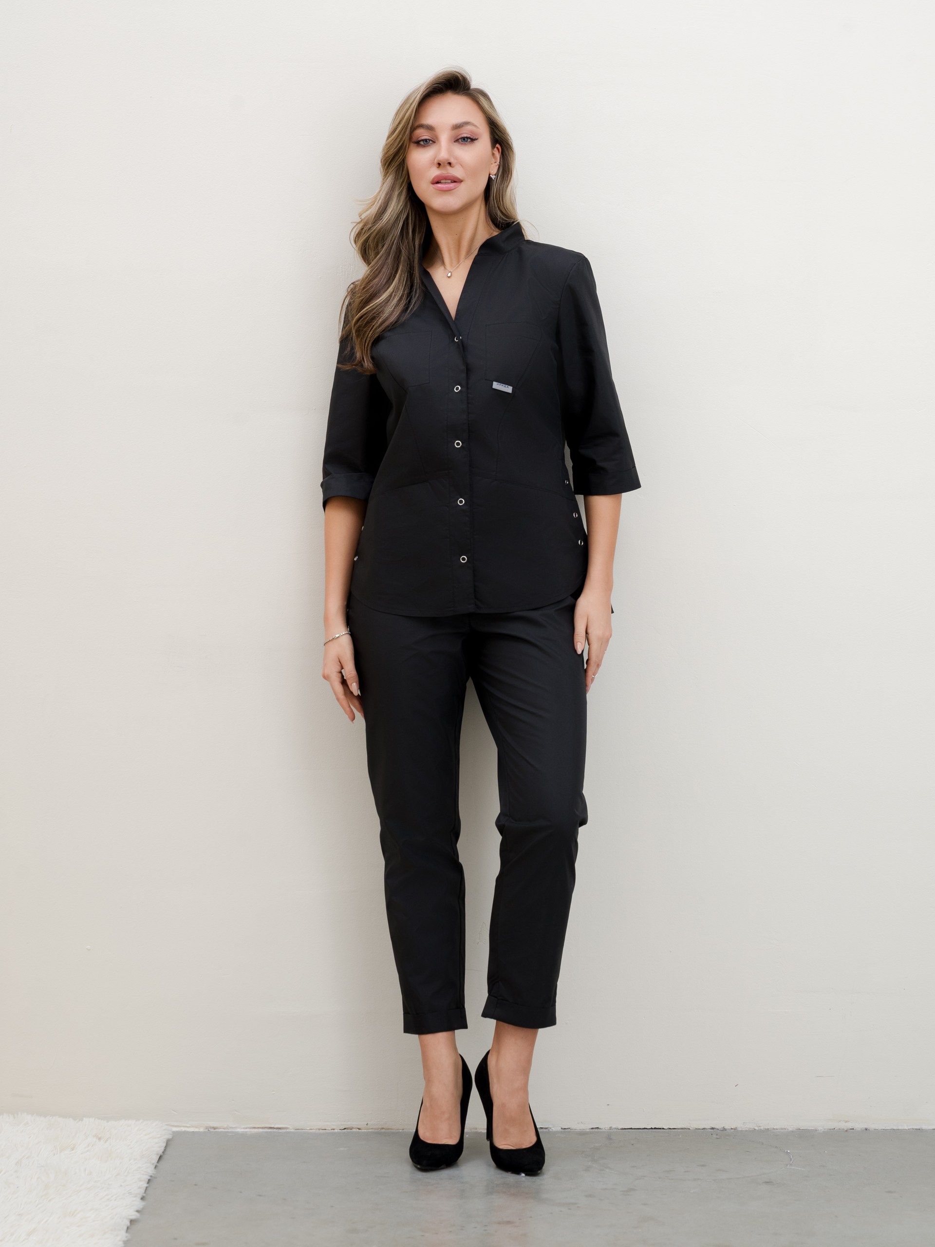 Костюм медицинский жен. М-135-124 ткань Тиси (46, кнопки, черный(124))