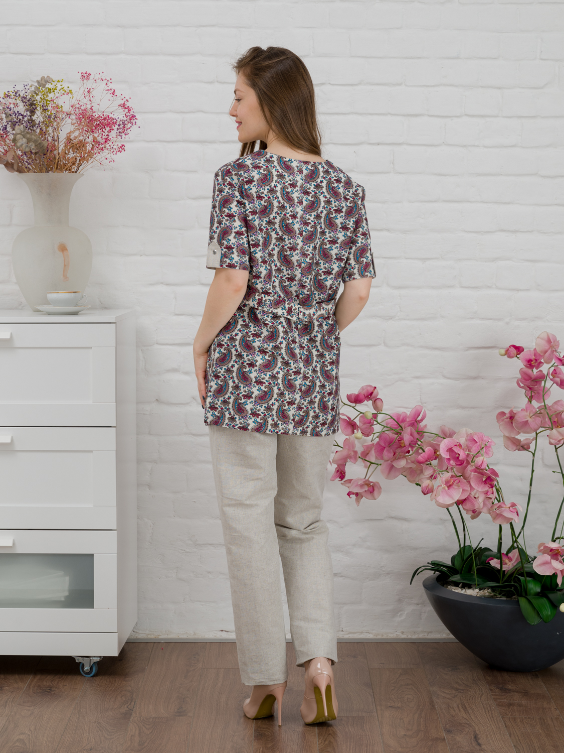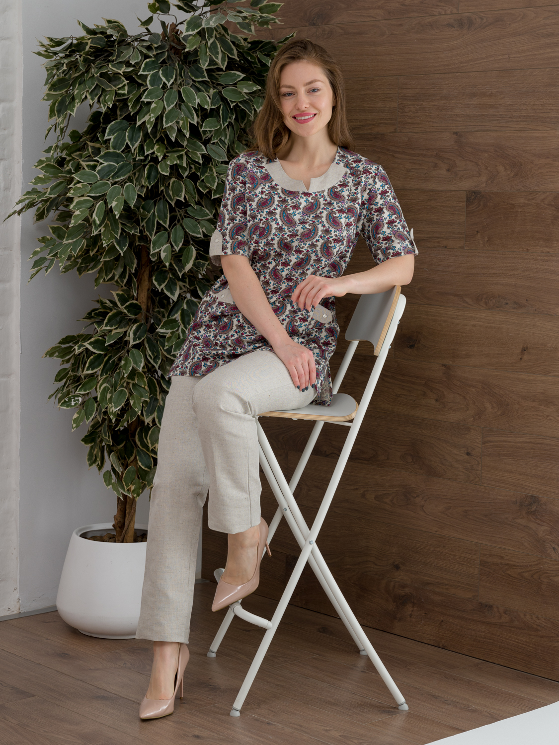 Костюм медицинский имеет большой размерный рядс 42 по 62 . Прекрасный и стильный медицинский костюм женский, чье высокое качество и удобная посадка гарантированы со стороны производителя. В основе изделия - 50% хлопок, 50% лен. Смесовая ткань дышит и приятна к телу. Спецодежда свободного покроя, обеспечит легкость и непринужденность в движениях. Униформа состоит из блузы и брюк. Верх с коротким рукавом и утонченным, V-образным вырезом горловины. Имеет боковые накладные карманы, которые непременно пригодятся в процессе работы. Брюки  длинные, прямые, на удобной резинке в поясе. Спецодежда выглядит очень выдержано и эстетично, создаст элегантный и женственный образ. Грамотное сочетание цветовой гаммы с интересным дизайном сделает ваш рабочий образ по-настоящему достойным и стильным.