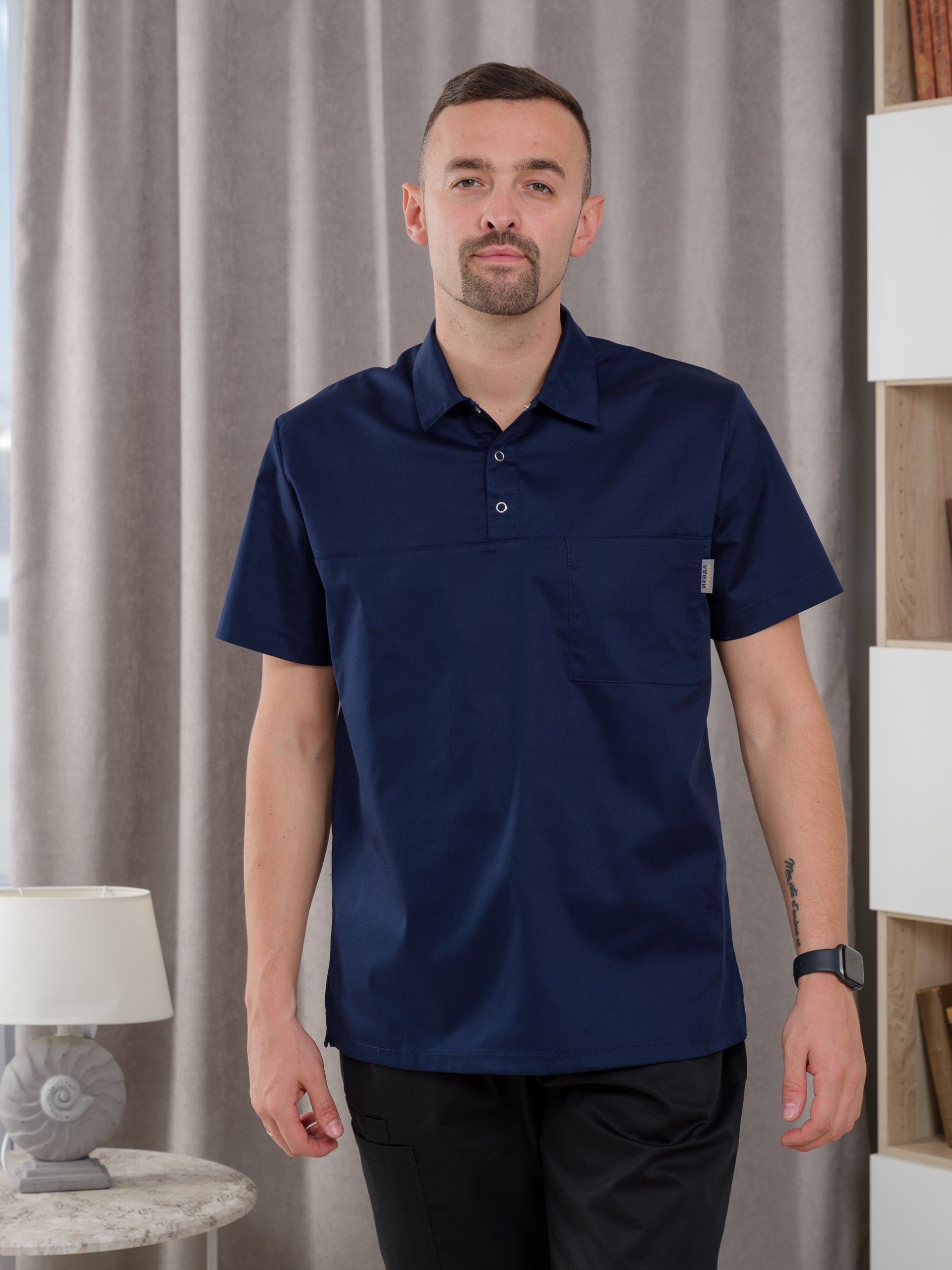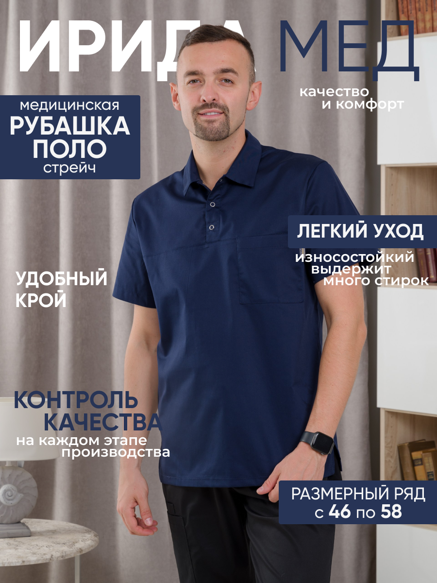 Поло медицинское мужское М-287-63 (54, кнопки, черника (63))