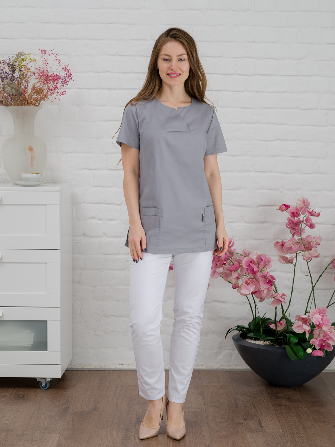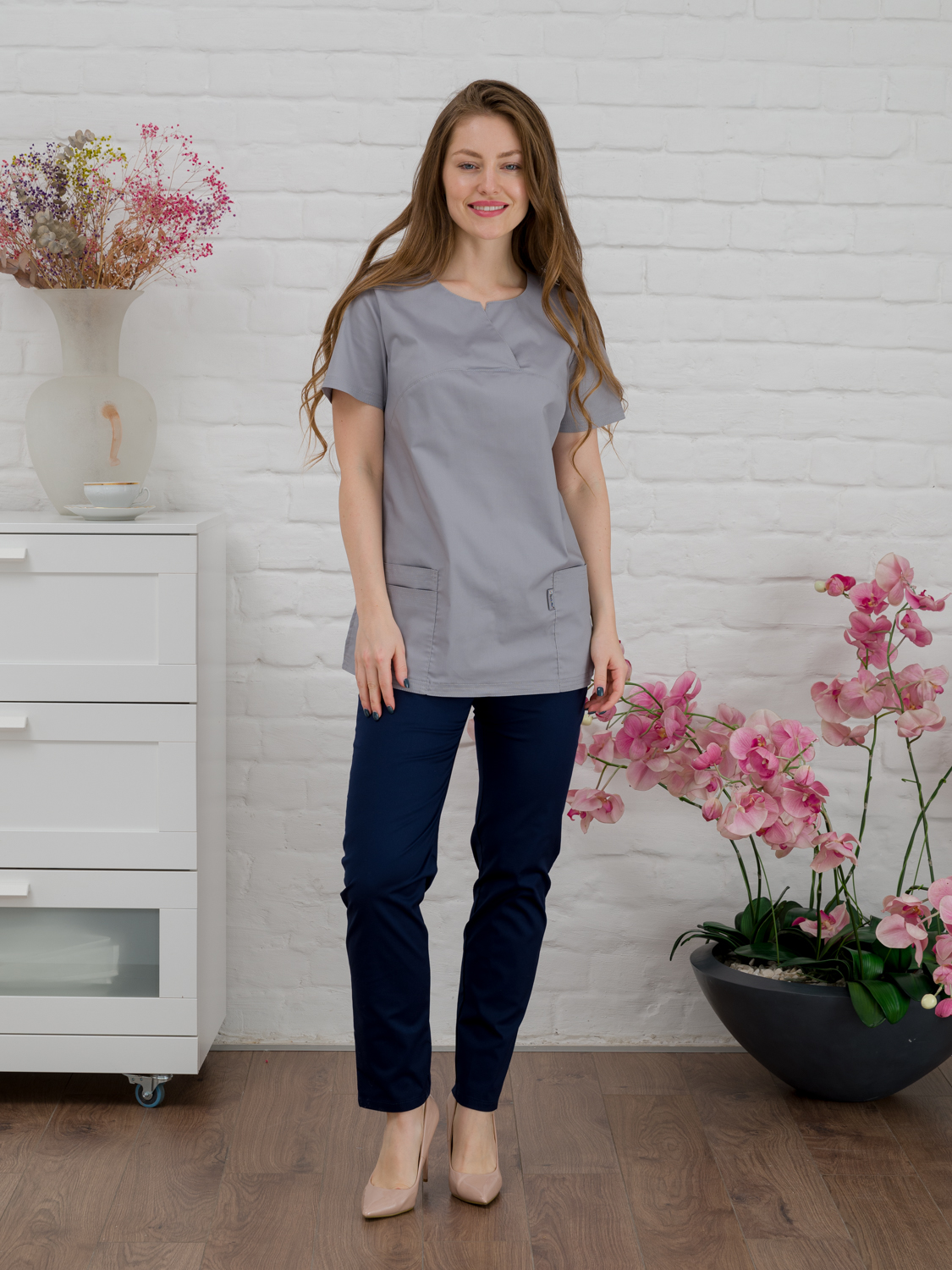 Современная униформа для медиков может обратить на себя внимание не только пациентов, но и вызвать у вас желание носить ее за пределами работы. Блуза медицинская женская будет поддерживать ваш настрой приподнятым в течение всего рабочего дня. Удобный крой рубашки с коротким рукавом для женщин не будет стеснять ваших движений. Данная блуза составит отличный комплект с брюками нашего бренда, есть простые прямые брюки, а также джоггеры. Составляйте разные образы и излучайте импульсы уверенности в завтрашнем дне. Медицинская рубашка подойдет педиатрам, ветеринарным врачам, стоматологам, сотрудникам косметических салонов, массажистам. Спецодежда сшита из ткани Элит-145/Стрейч. Размерный ряд с 40 по 64.