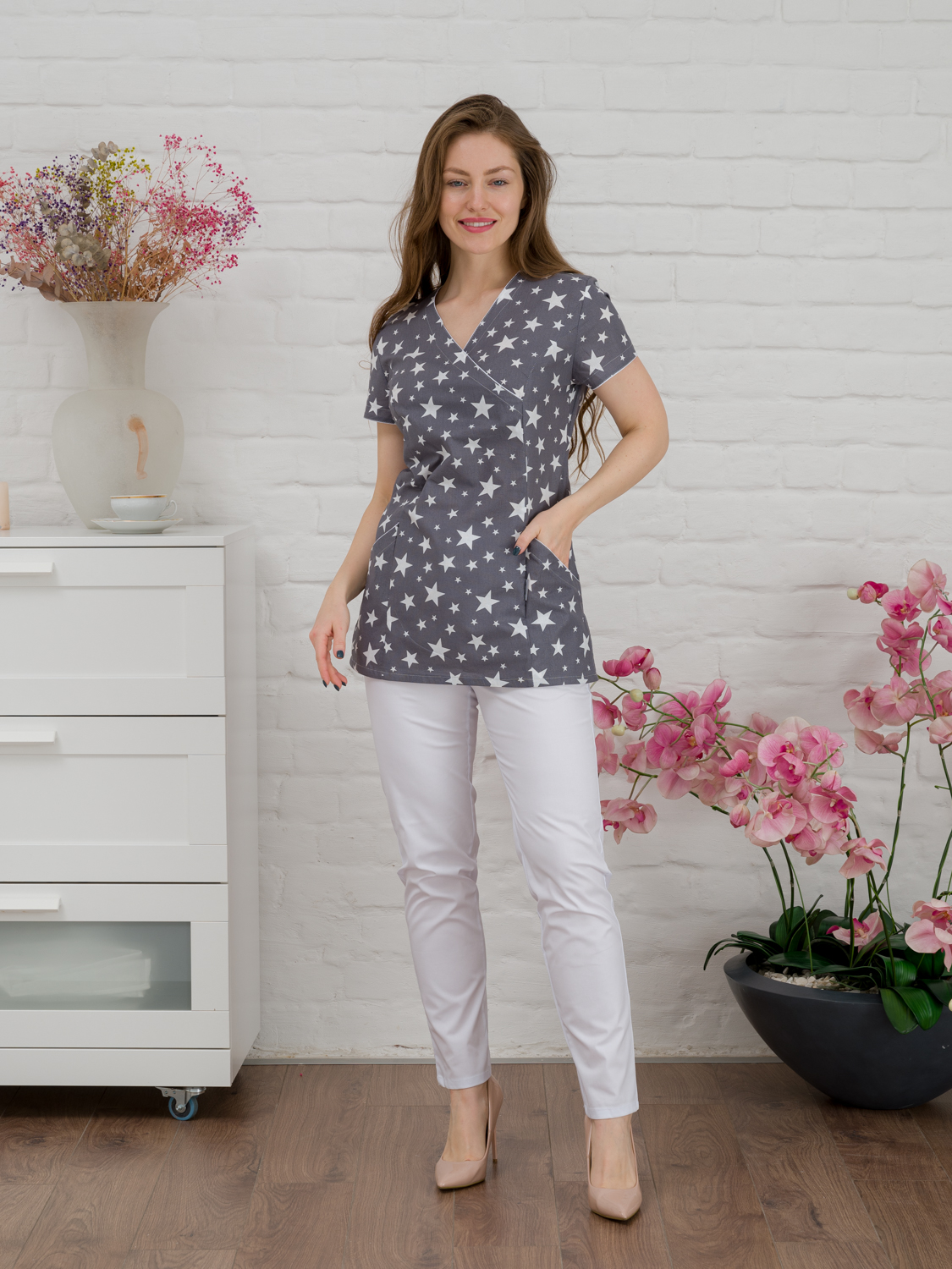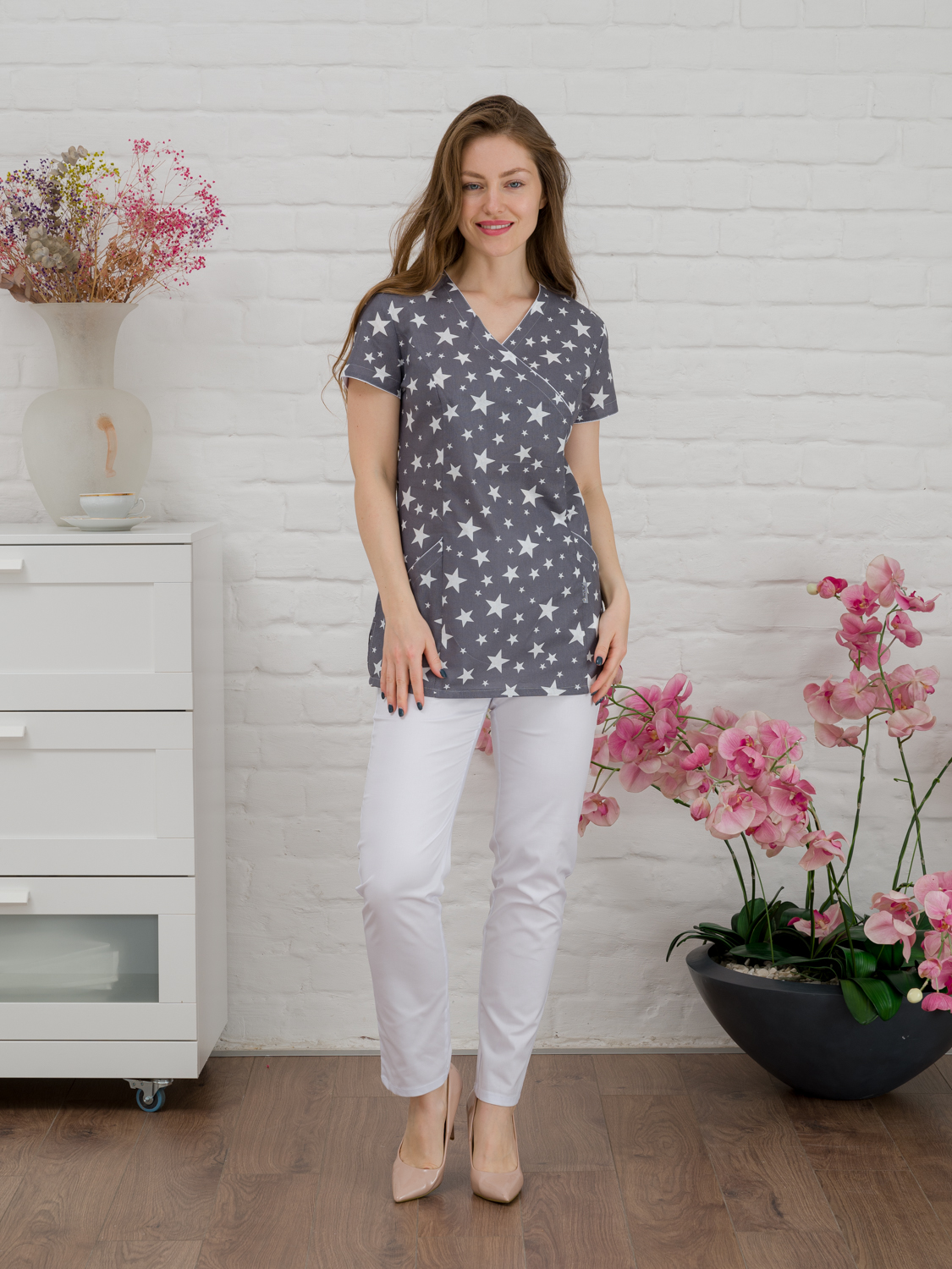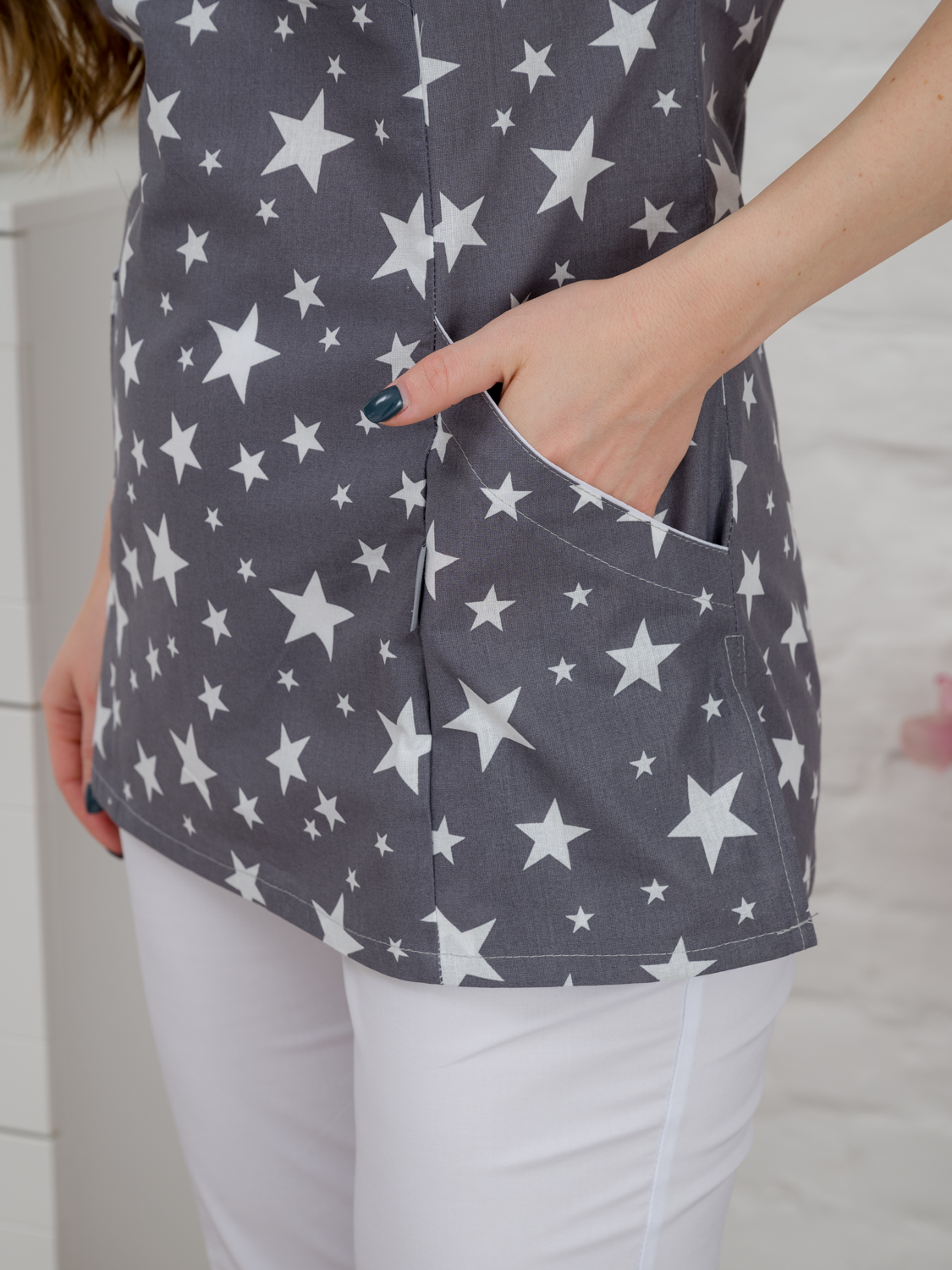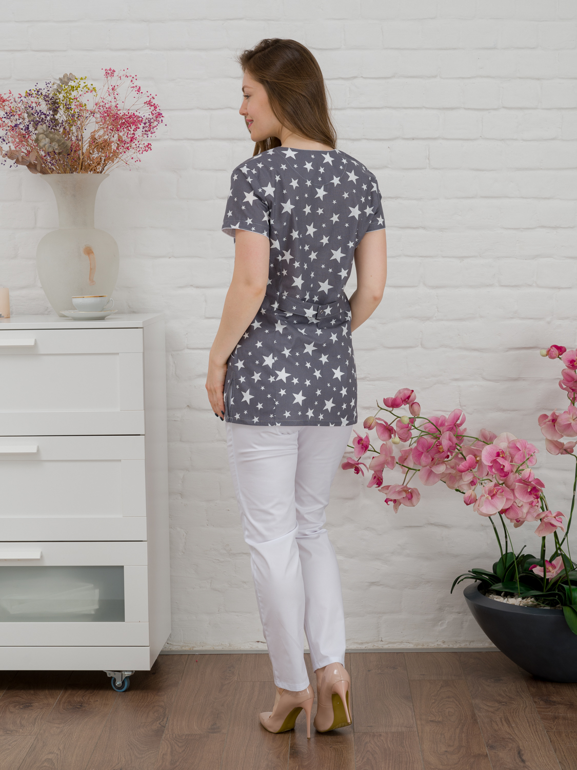 100% хлопок, 40-58 Расцветка: белые звезды на сером фоне.