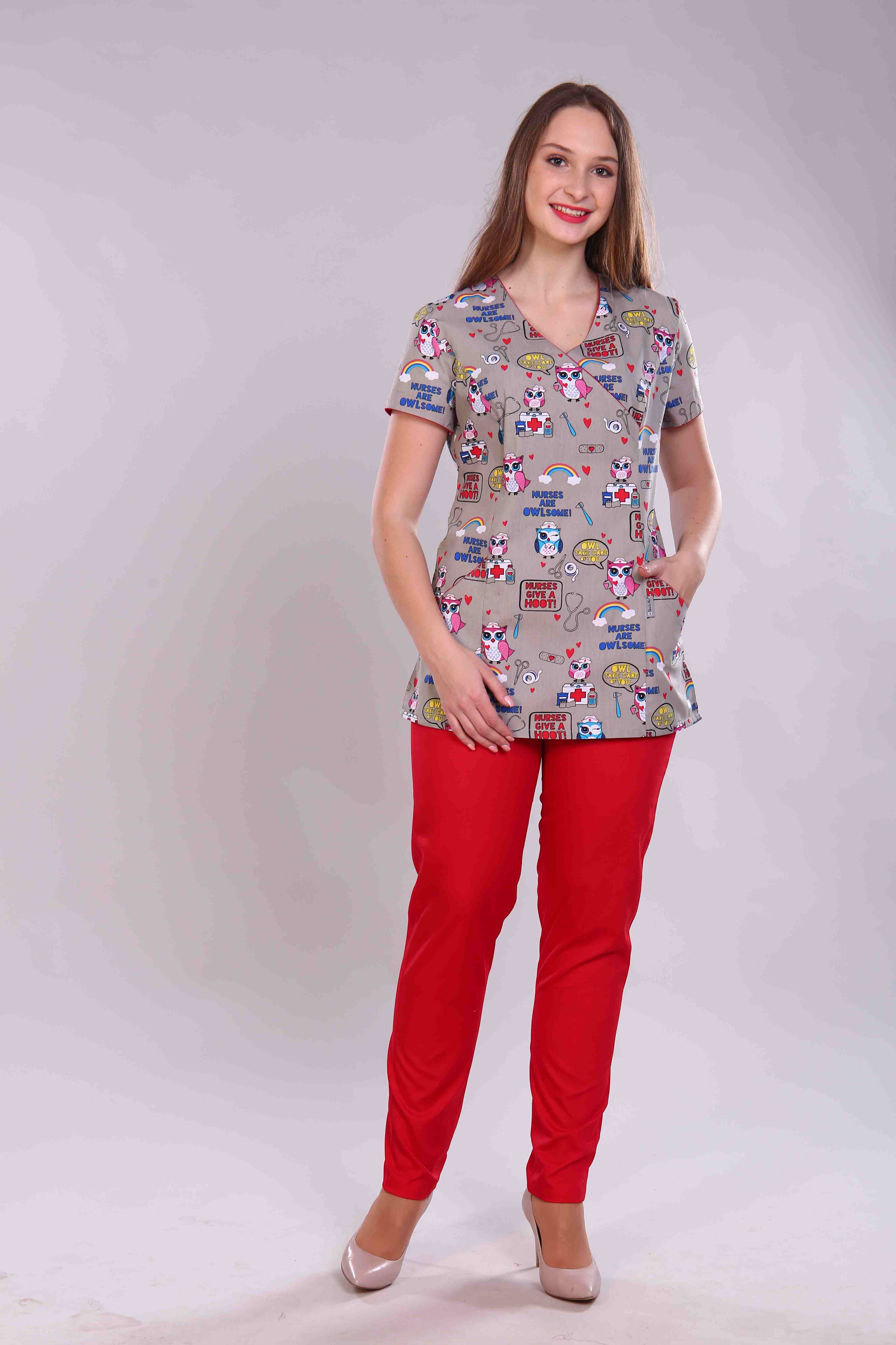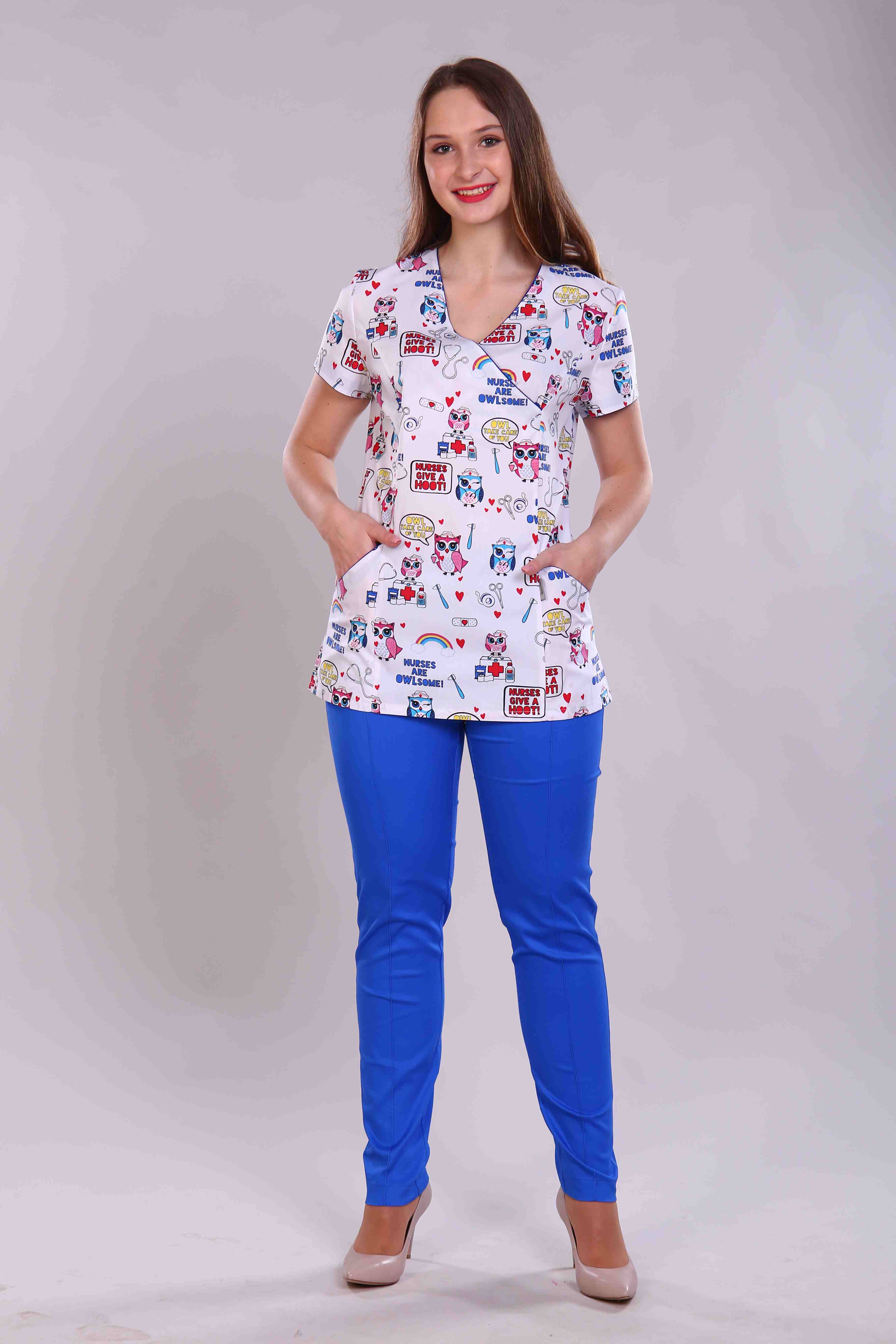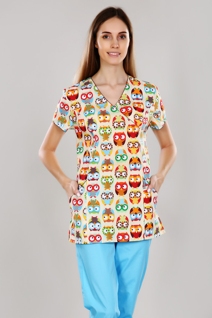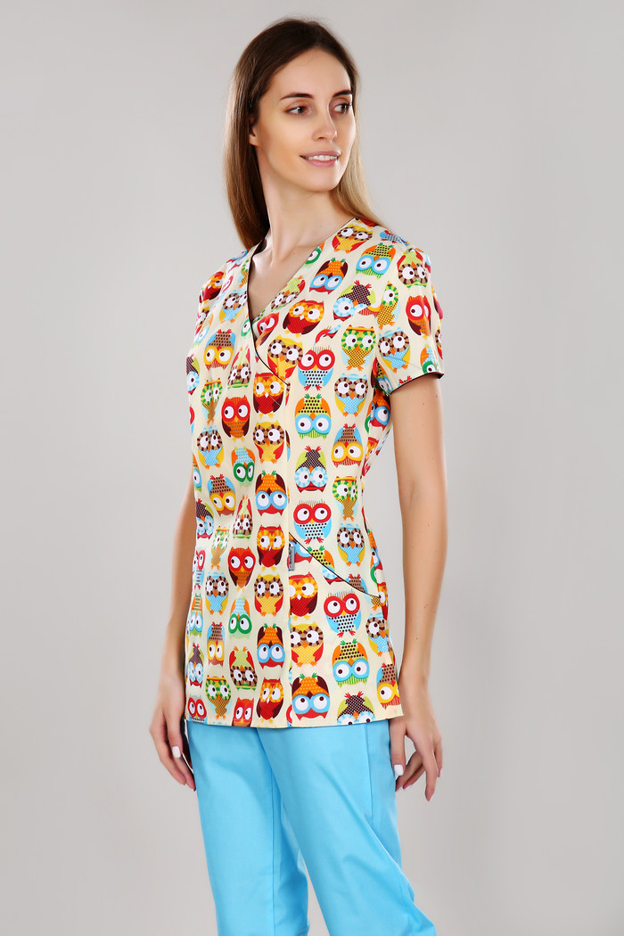 Рубашка мед. М-285П ткань Тиси-Принт (40, совы(S06))