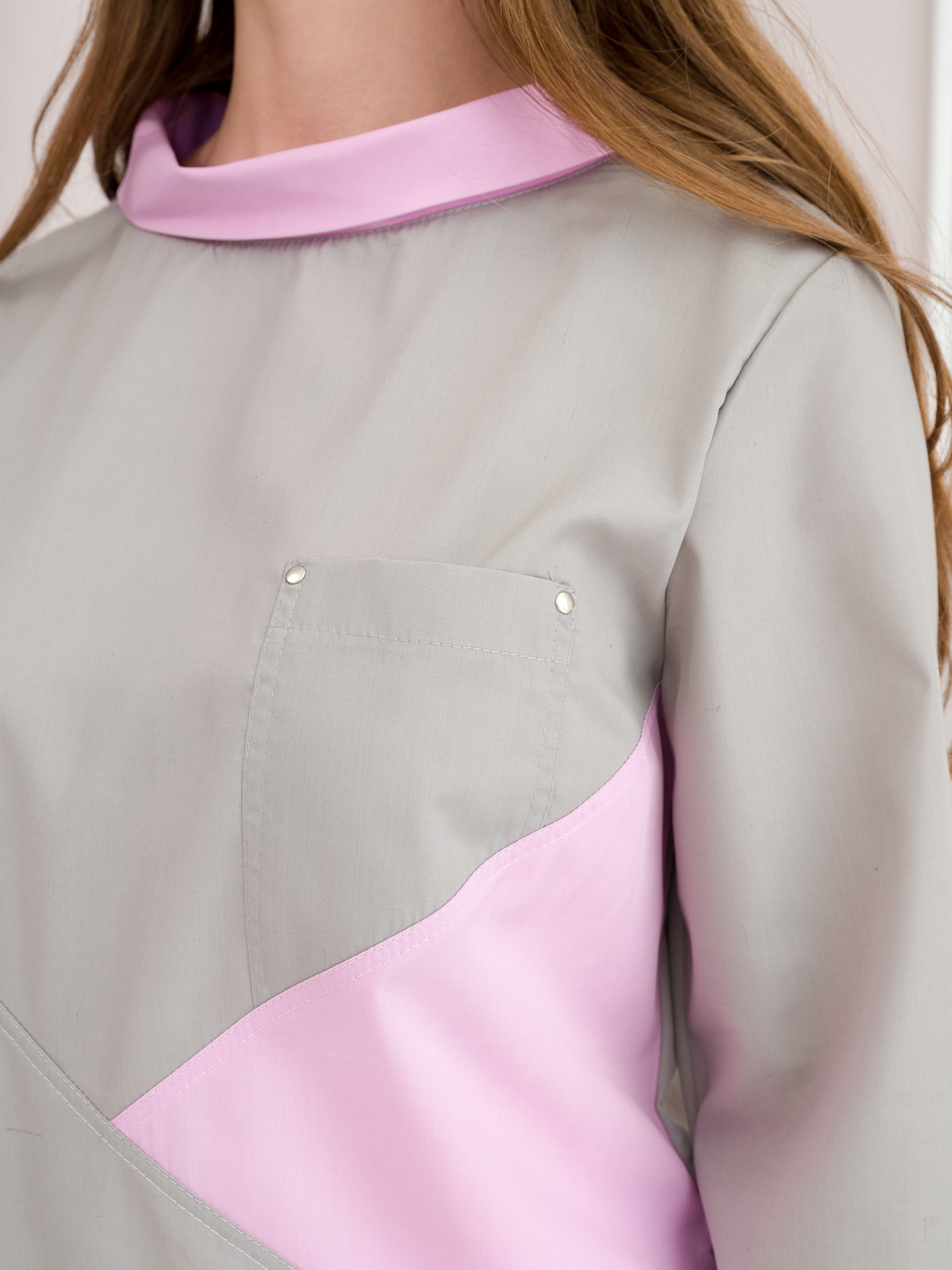 Рубашка мед. жен. М-261 ткань ТиСи (46, кнопки, сер(20)/н.роз(34))