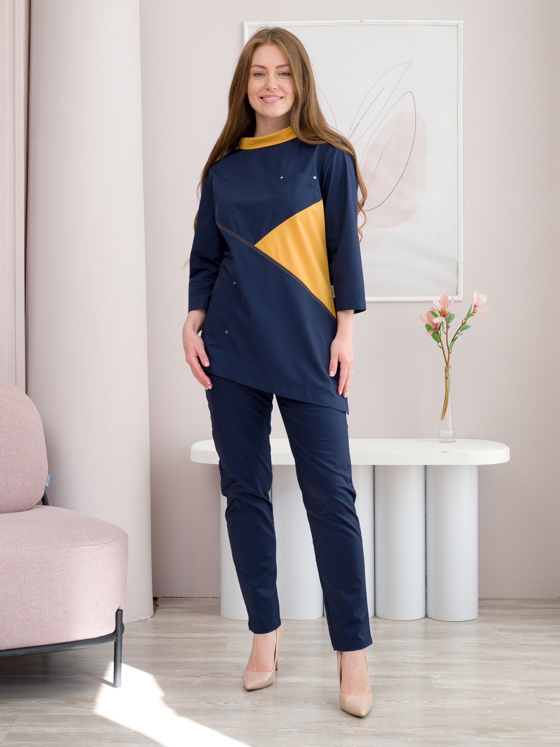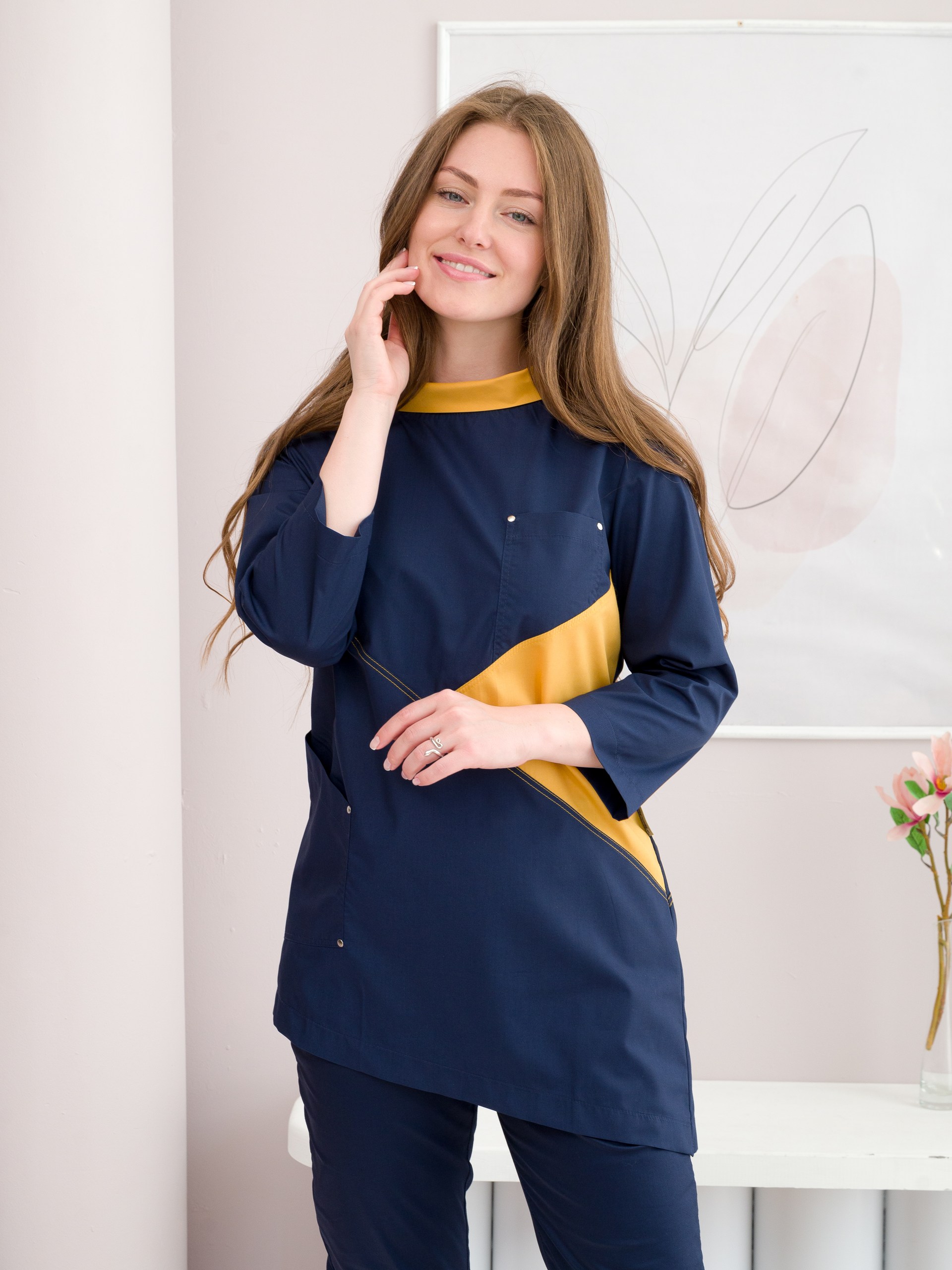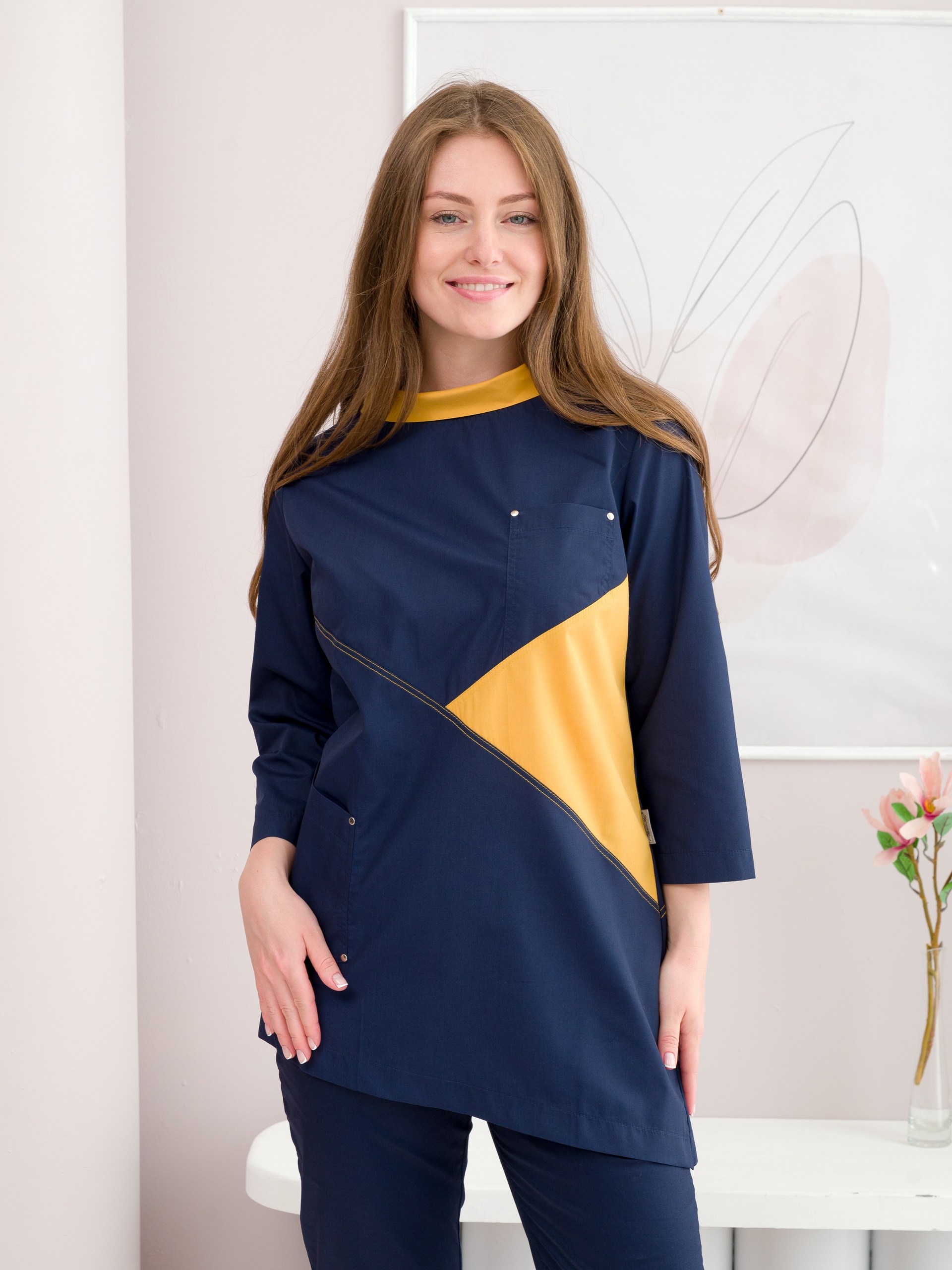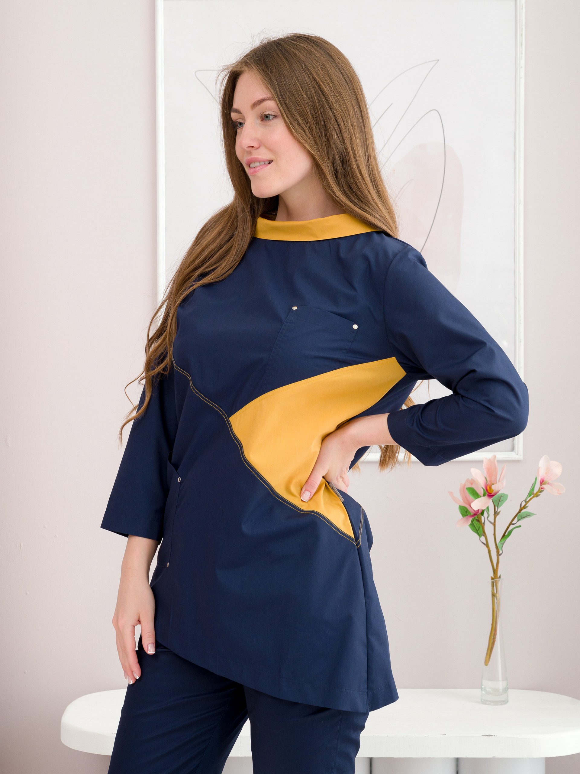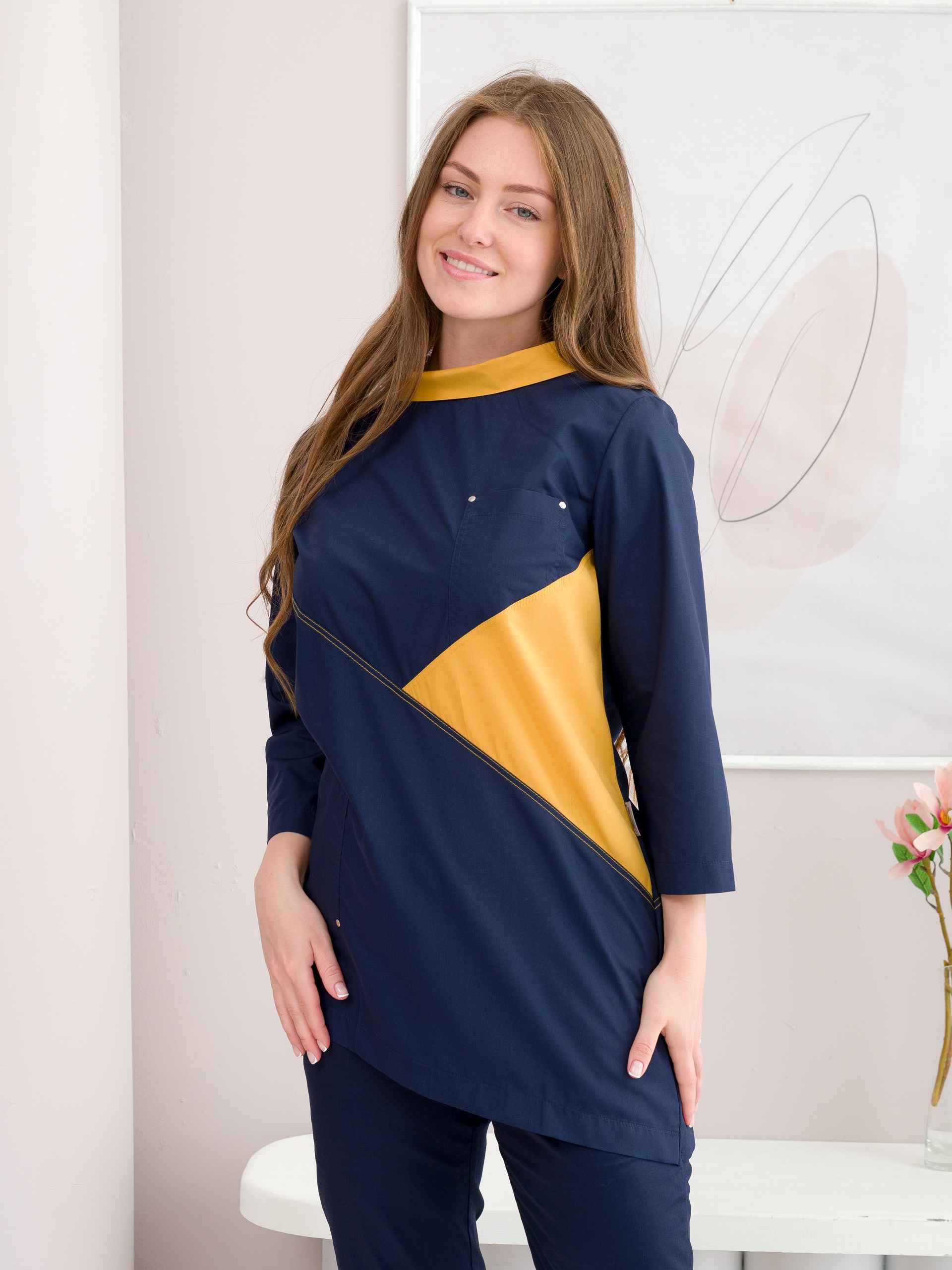 Рубашка мед. жен. М-261 ткань ТиСи (44, кнопки, чер(63)/горч(95))
