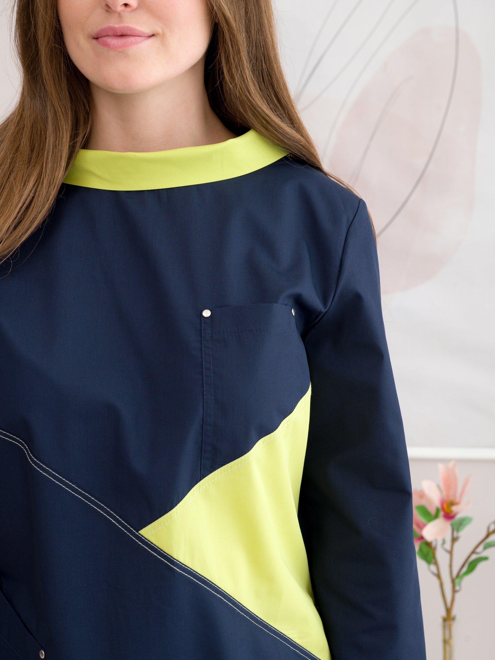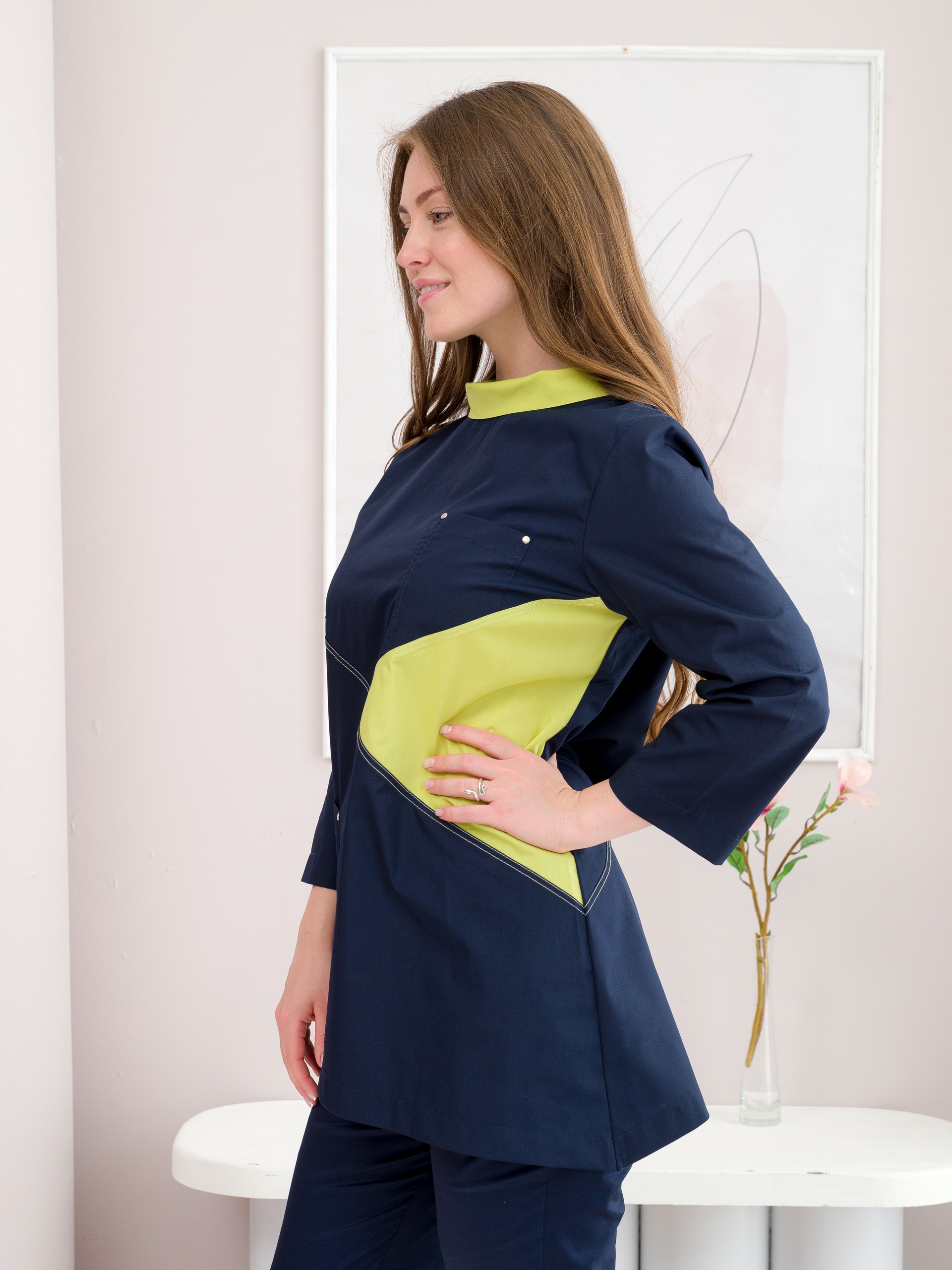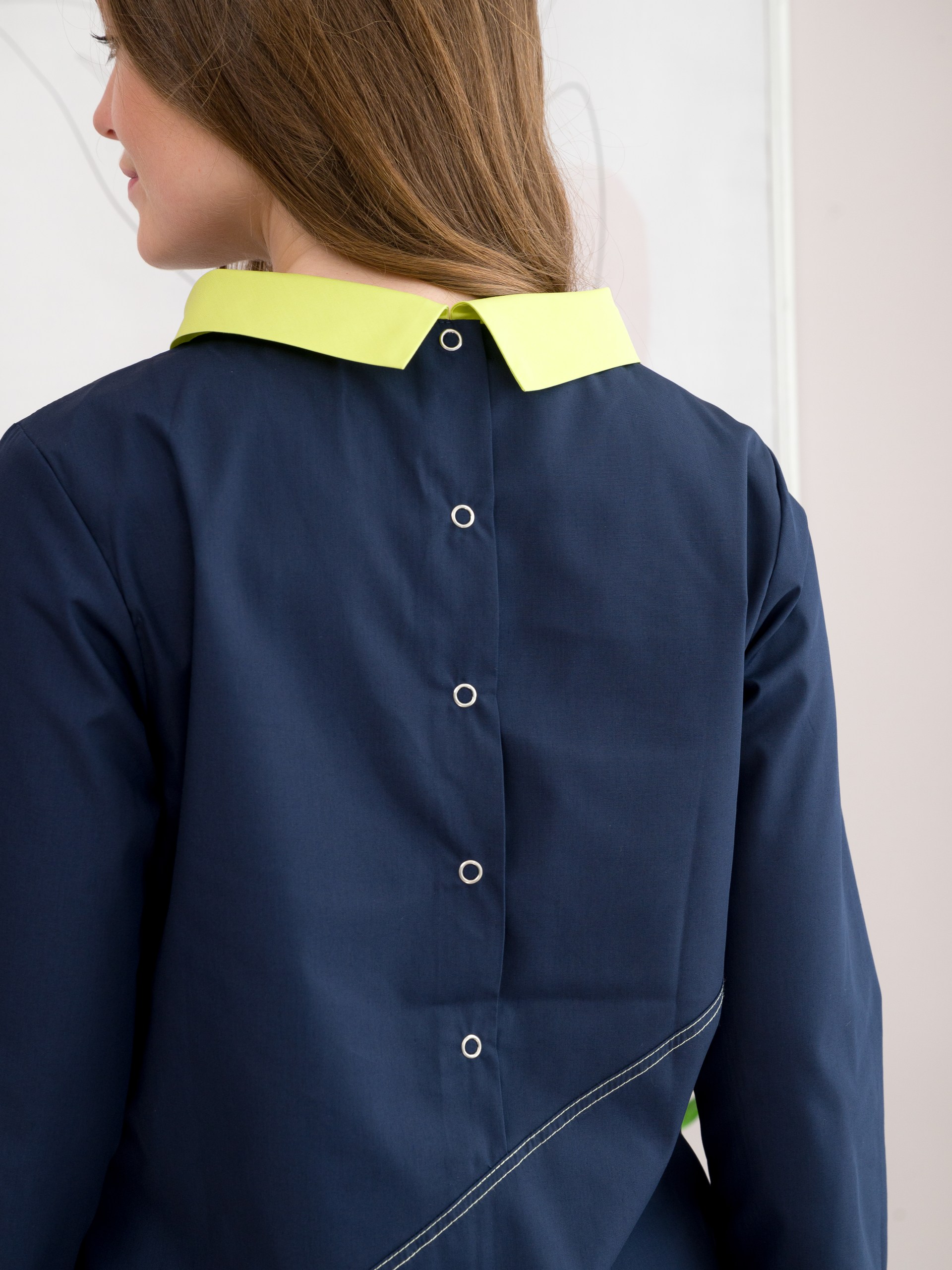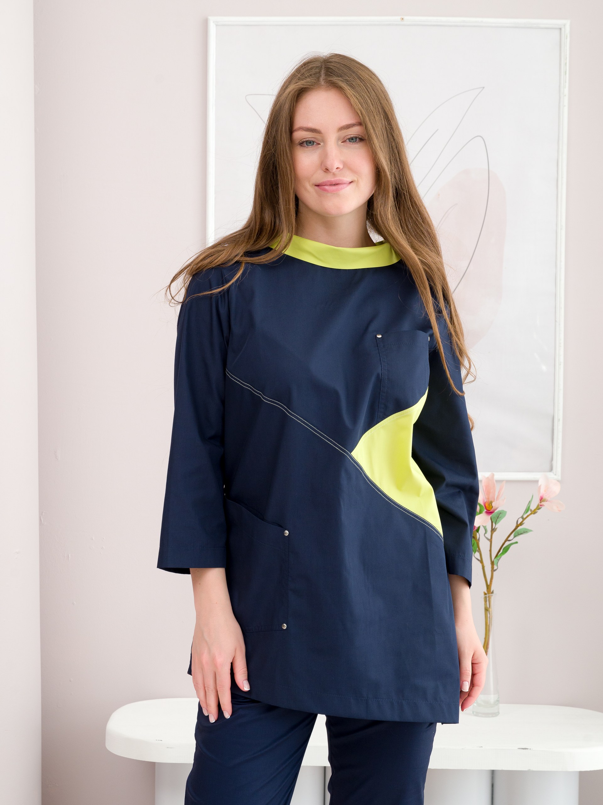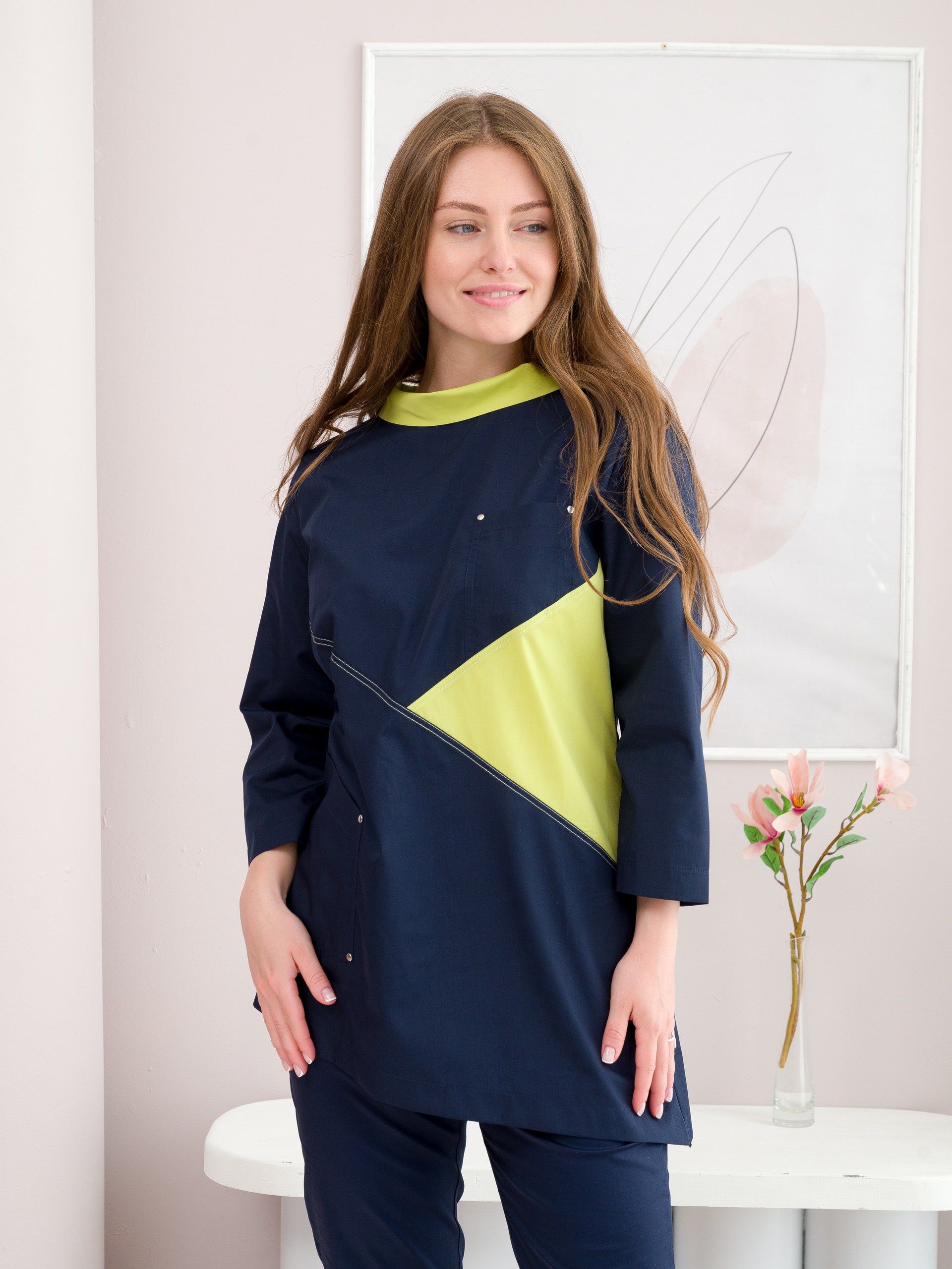 Рубашка мед. жен. М-261 ткань ТиСи (44, кнопки, чер(63)/лайм(84))
