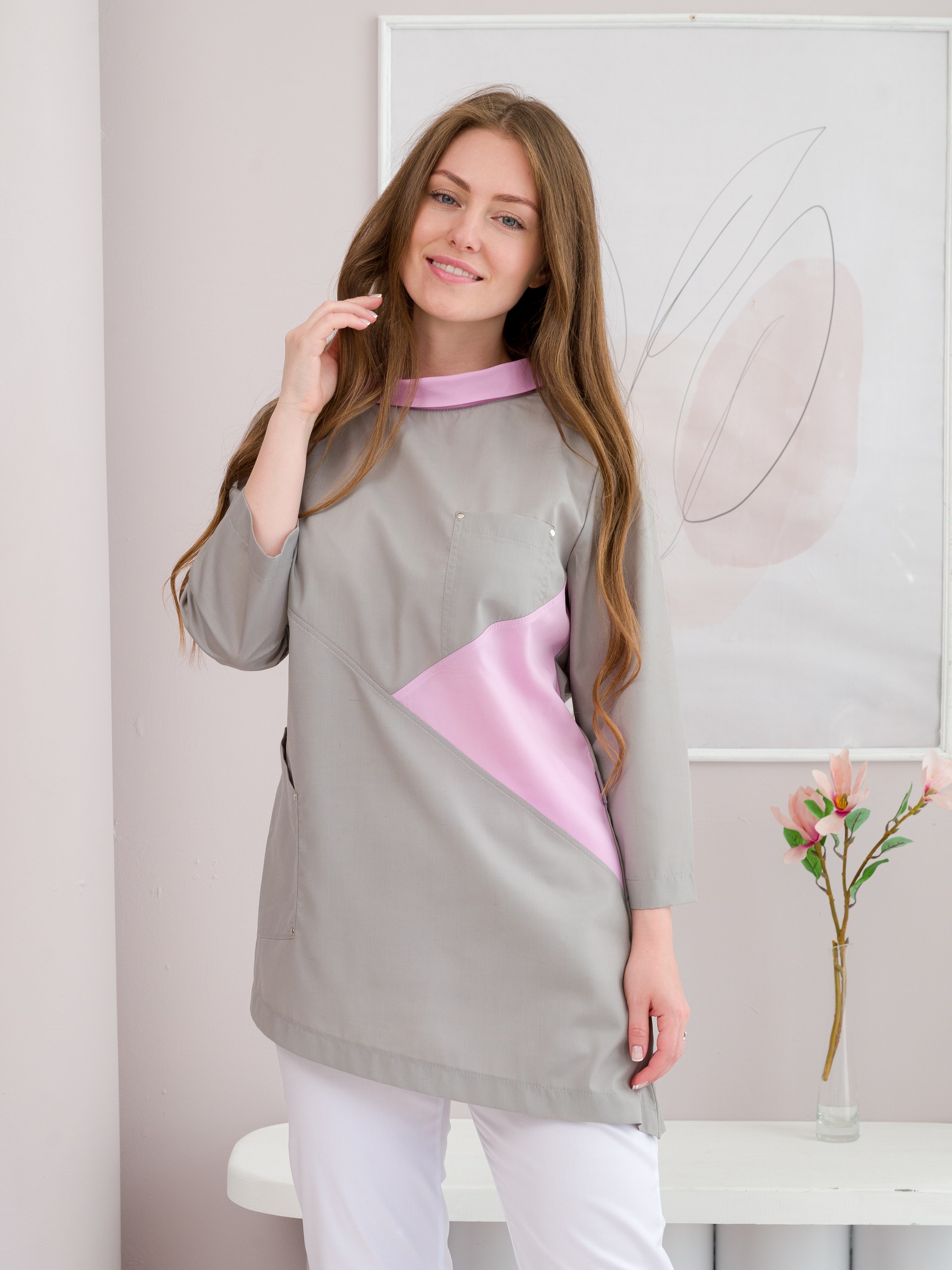 Рубашка мед. жен. М-261 ткань ТиСи (56, кнопки, сер(20)/н.роз(34))