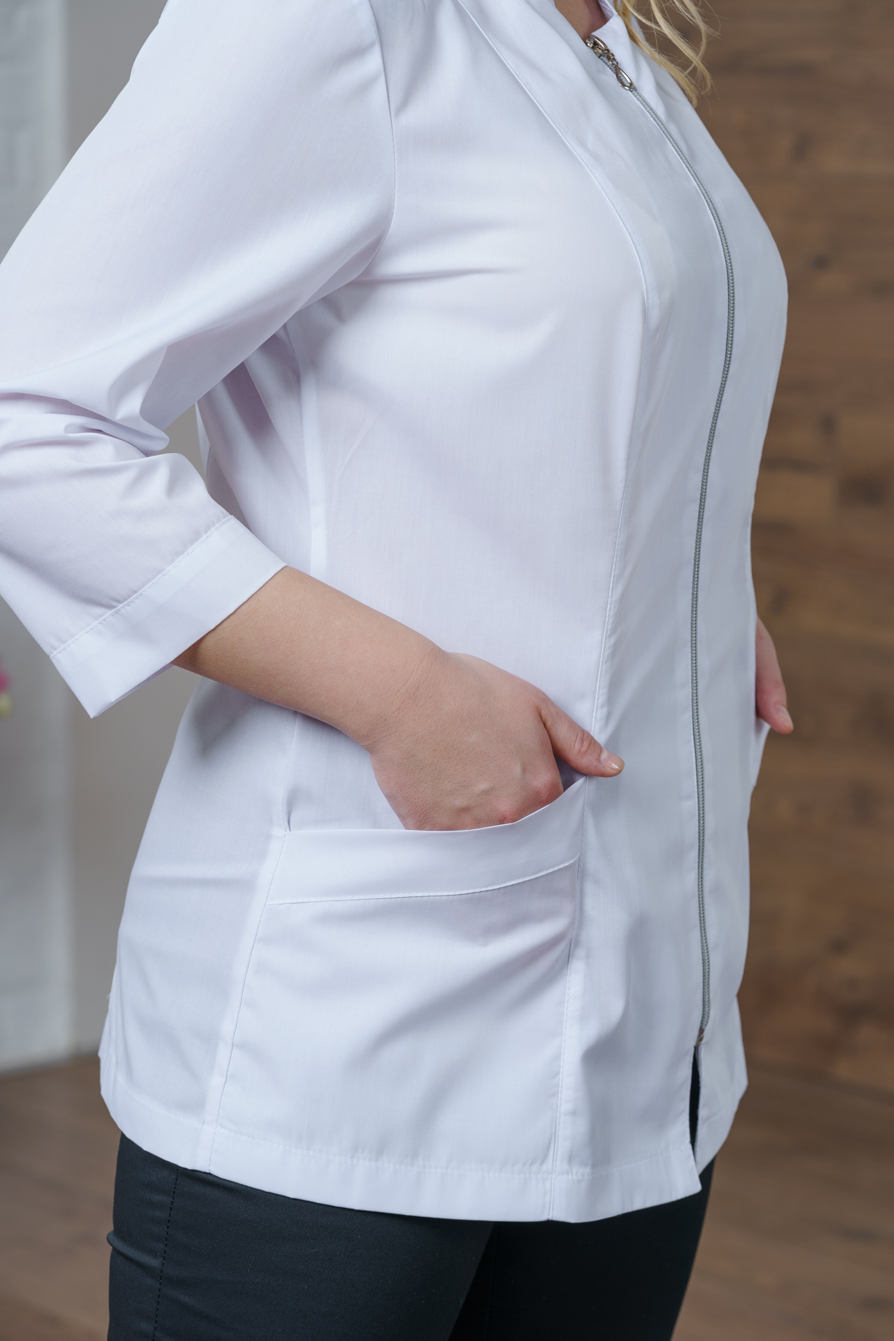 Рубашка мед. жен. М-262 ткань Тиси (50, молния, белый(0))