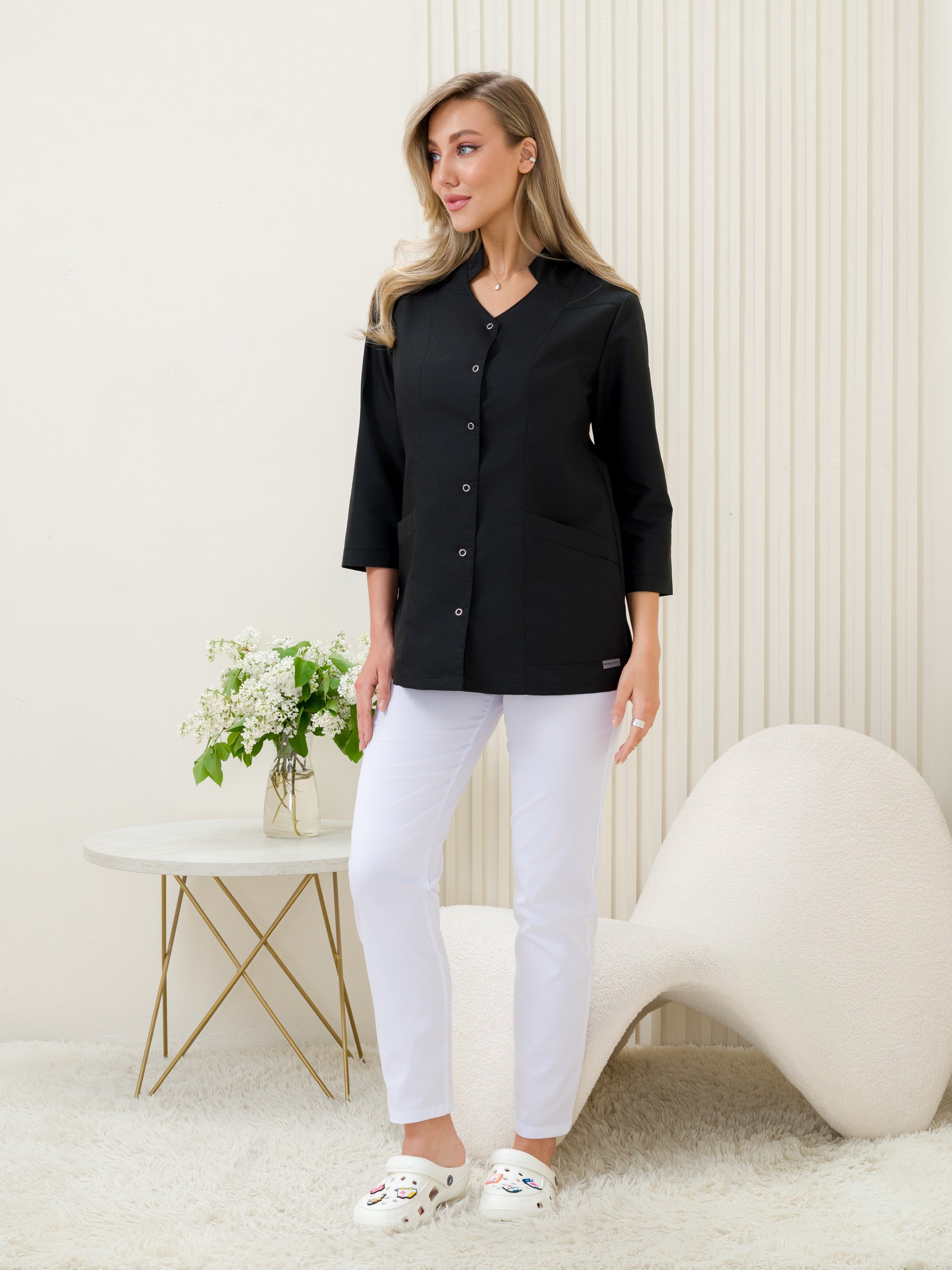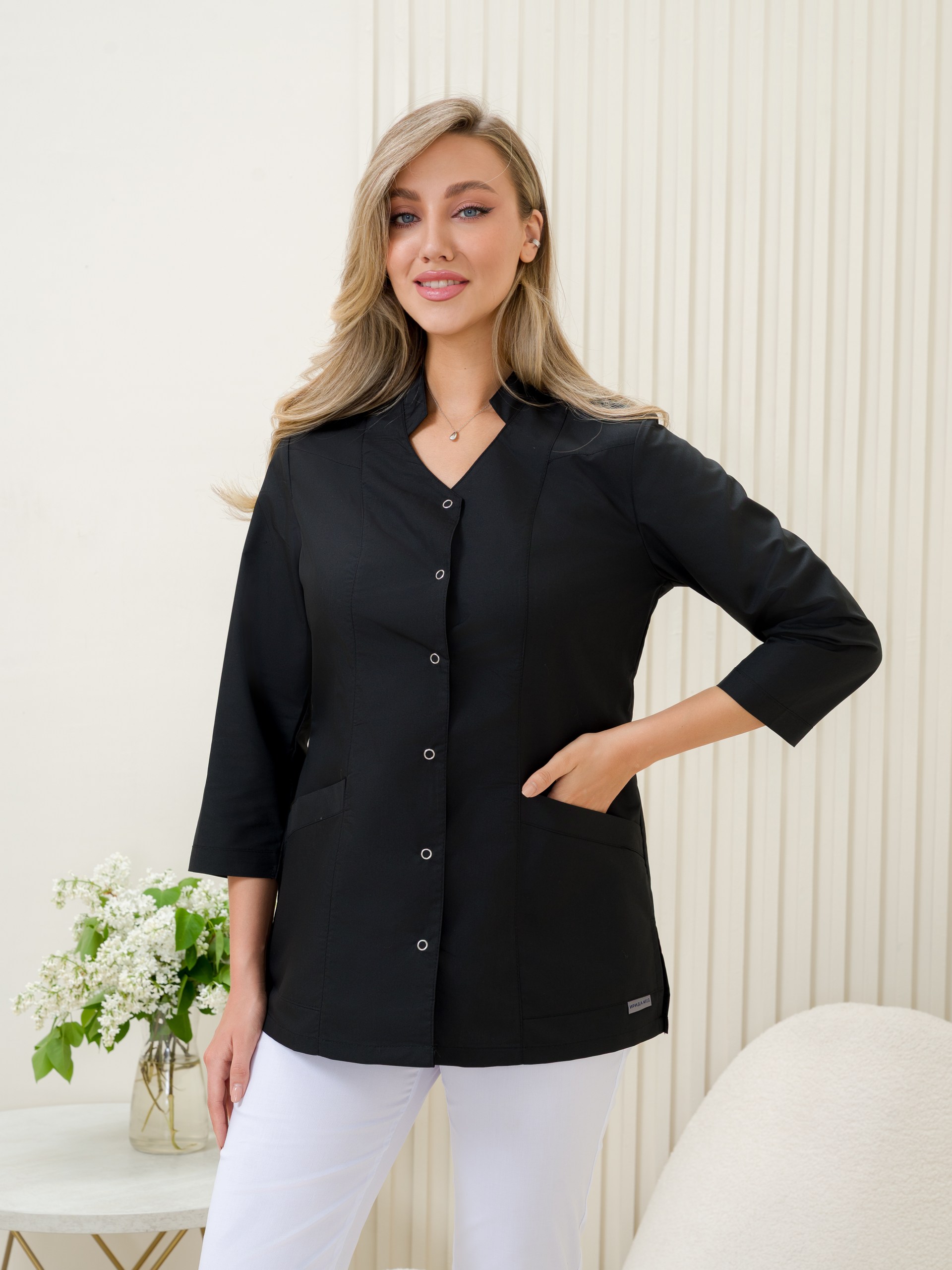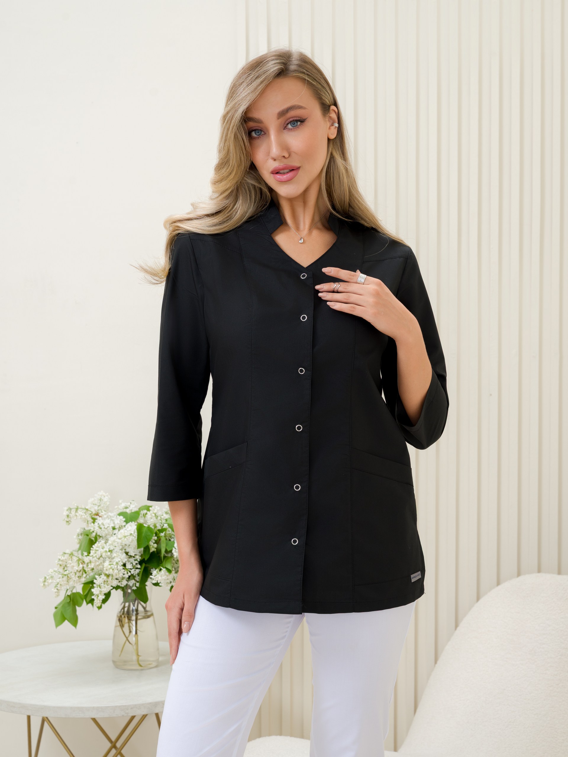 Рубашка мед. жен. М-266-124 ткань Тиси (44, кнопки, черный(124))
