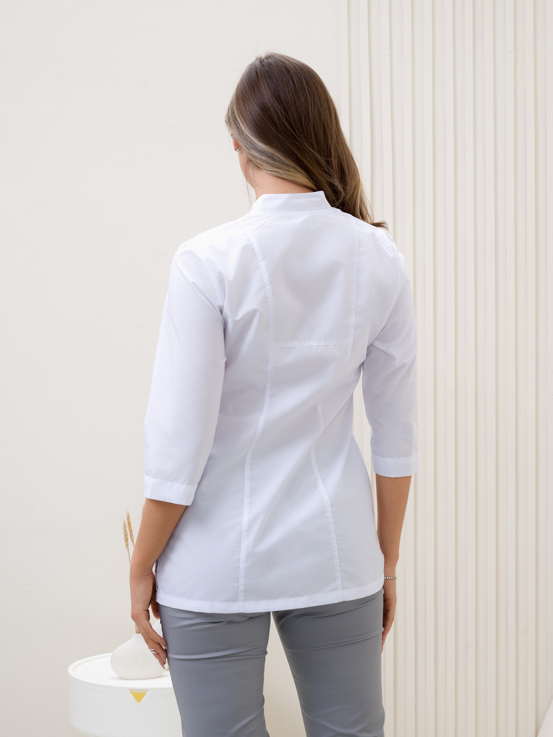 Рубашка мед. жен. М-266 ткань Тиси (60, кнопки, белый(0))