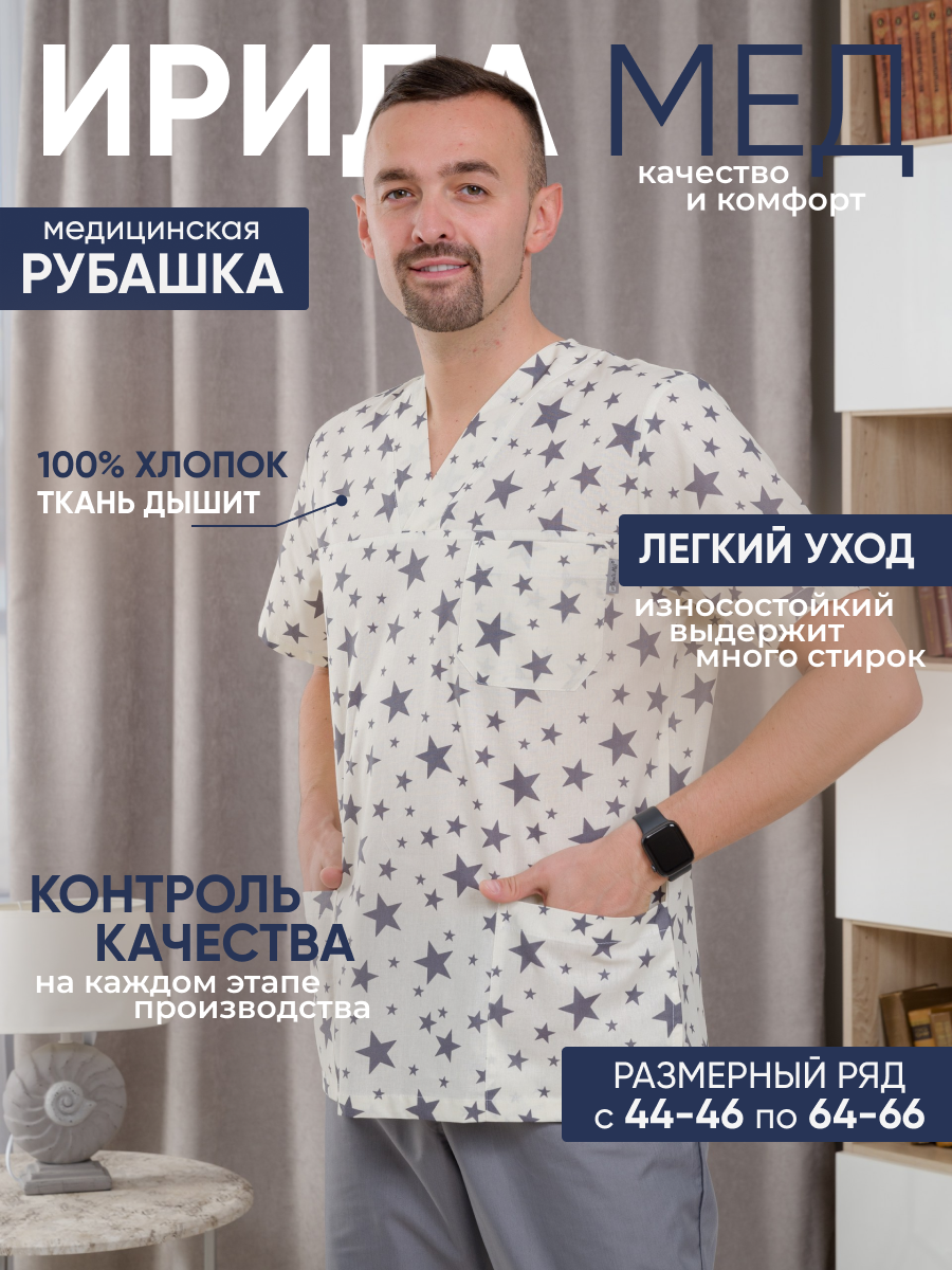 Рубашка медицинская мужская М-286-19 ткань Поплин (44/46, звёзды желт.)