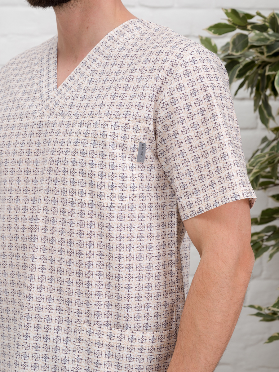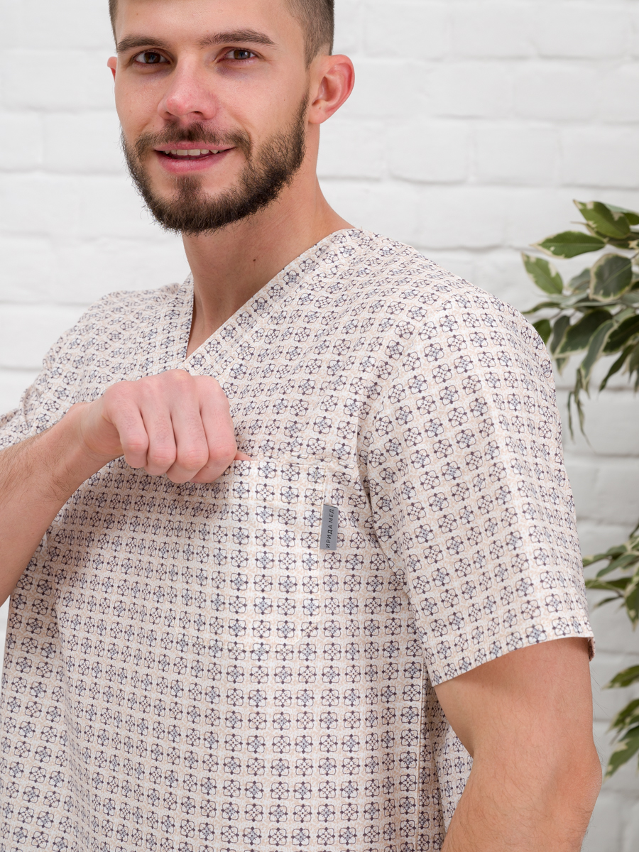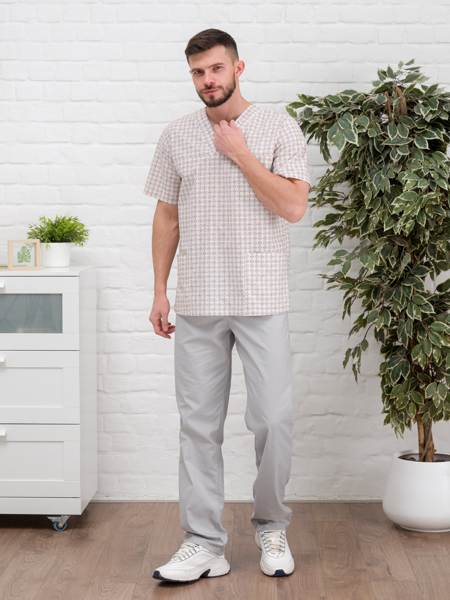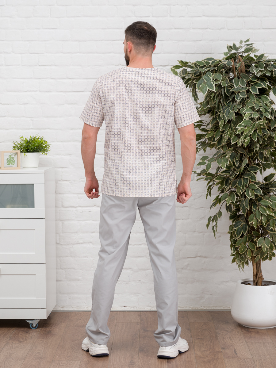 Рубашка медицинская мужская М-286-4579 ткань Поплин (52/54, клетка беж(4579))