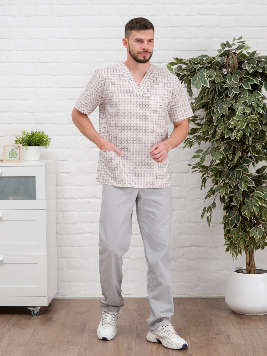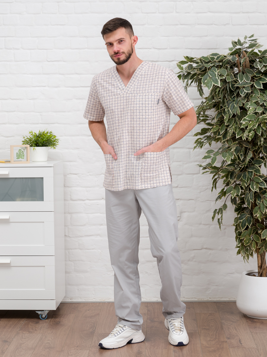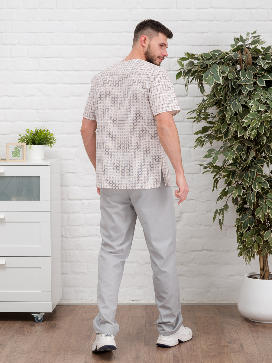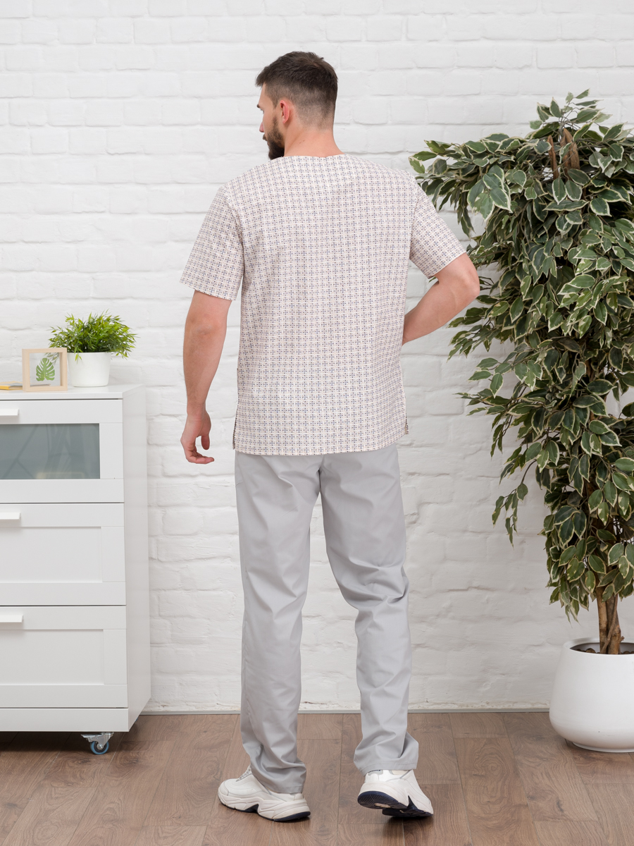 Рубашка медицинская мужская М-286-4579 ткань Поплин (44/46, клетка беж(4579))