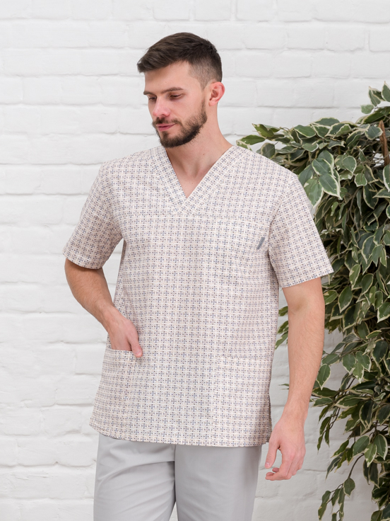Рубашка медицинская мужская М-286-4579 ткань Поплин (60/62, клетка беж(4579))