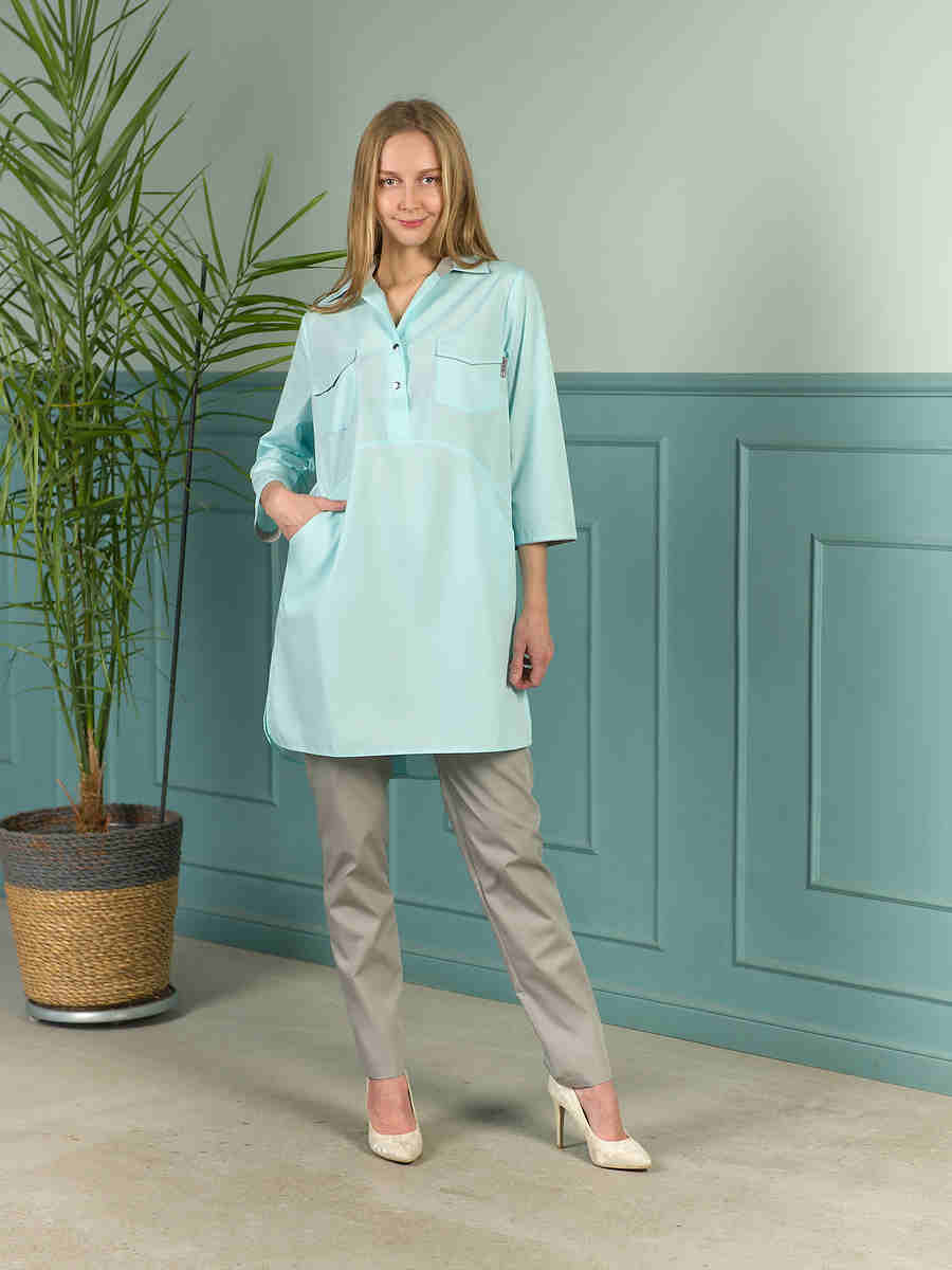 Рубашка медицинская жен. М-245 ткань Тиси (44, кнопки, св.бирюза (2))