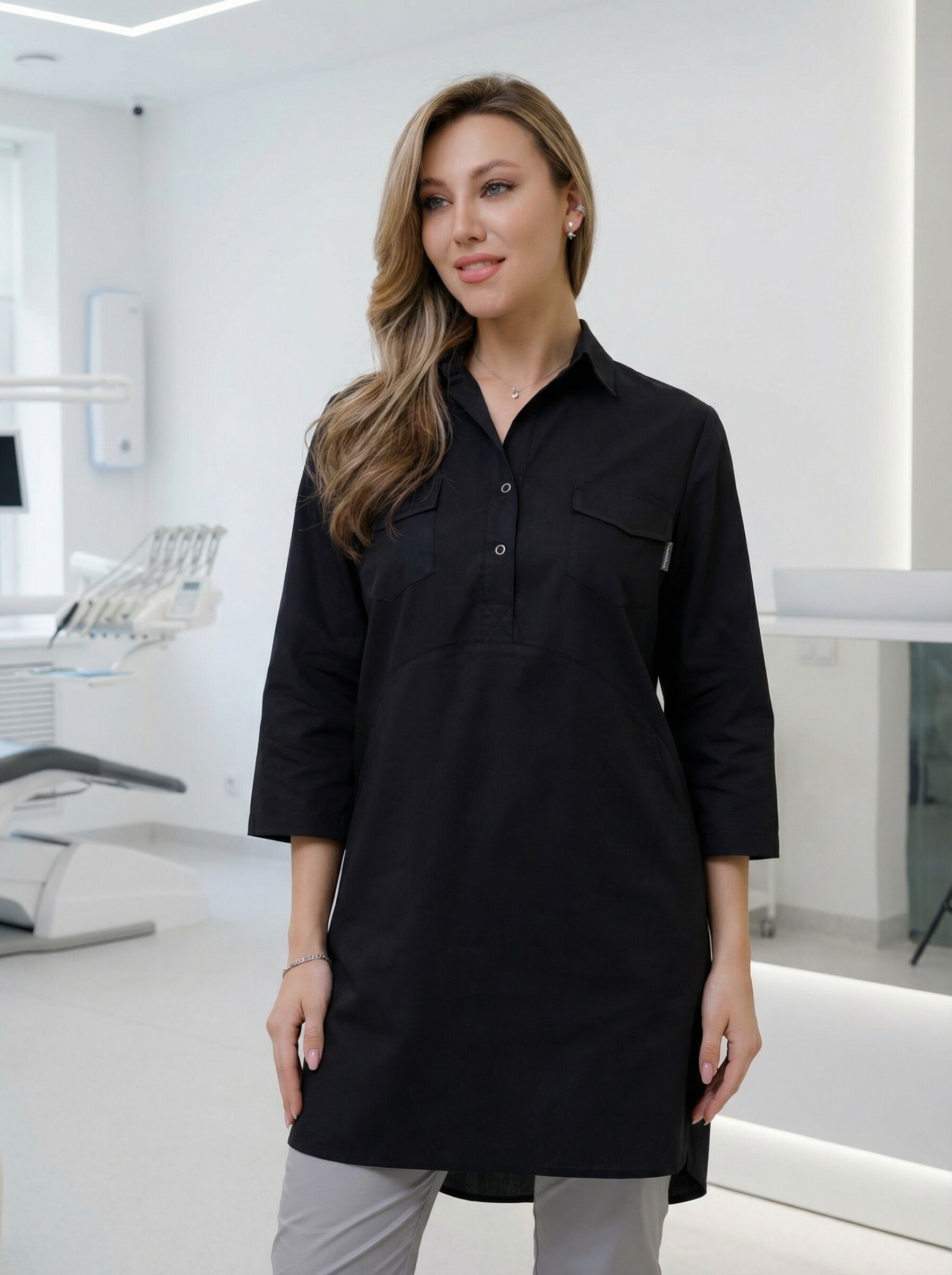 Рубашка медицинская жен. М-245 ткань Тиси (56, кнопки, черный(124))