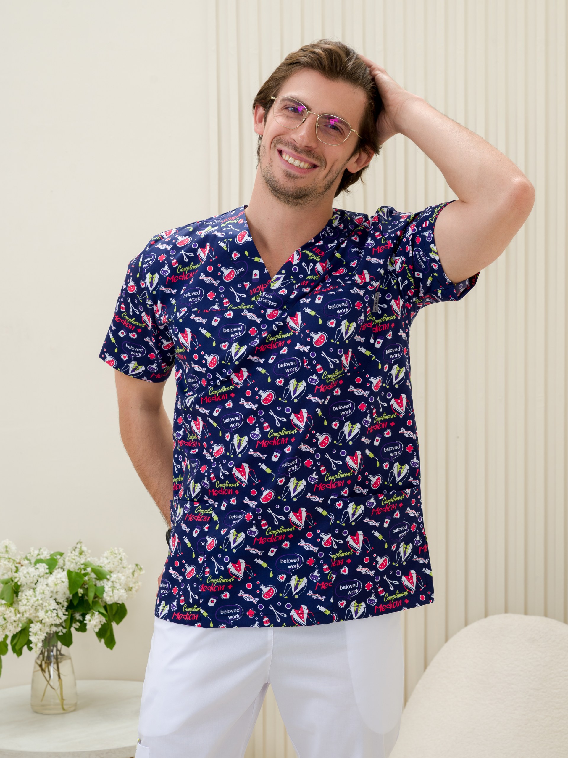 Рубашка мужская М-286(ST-14)ткань Стрейч/Принт