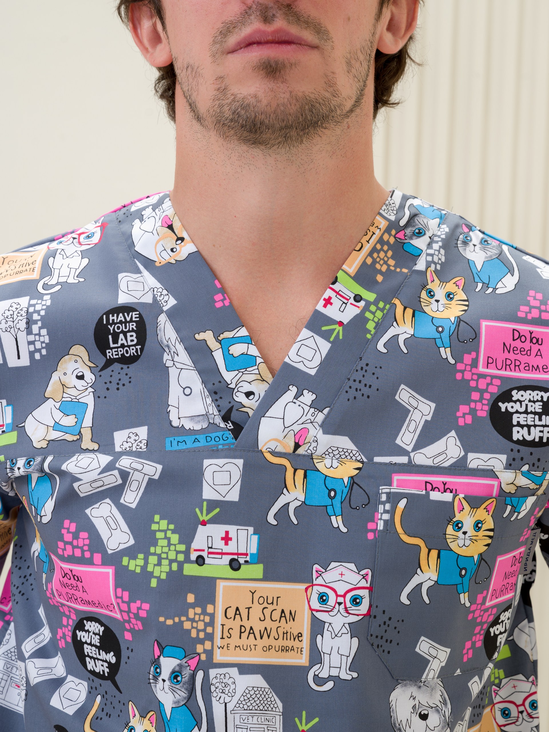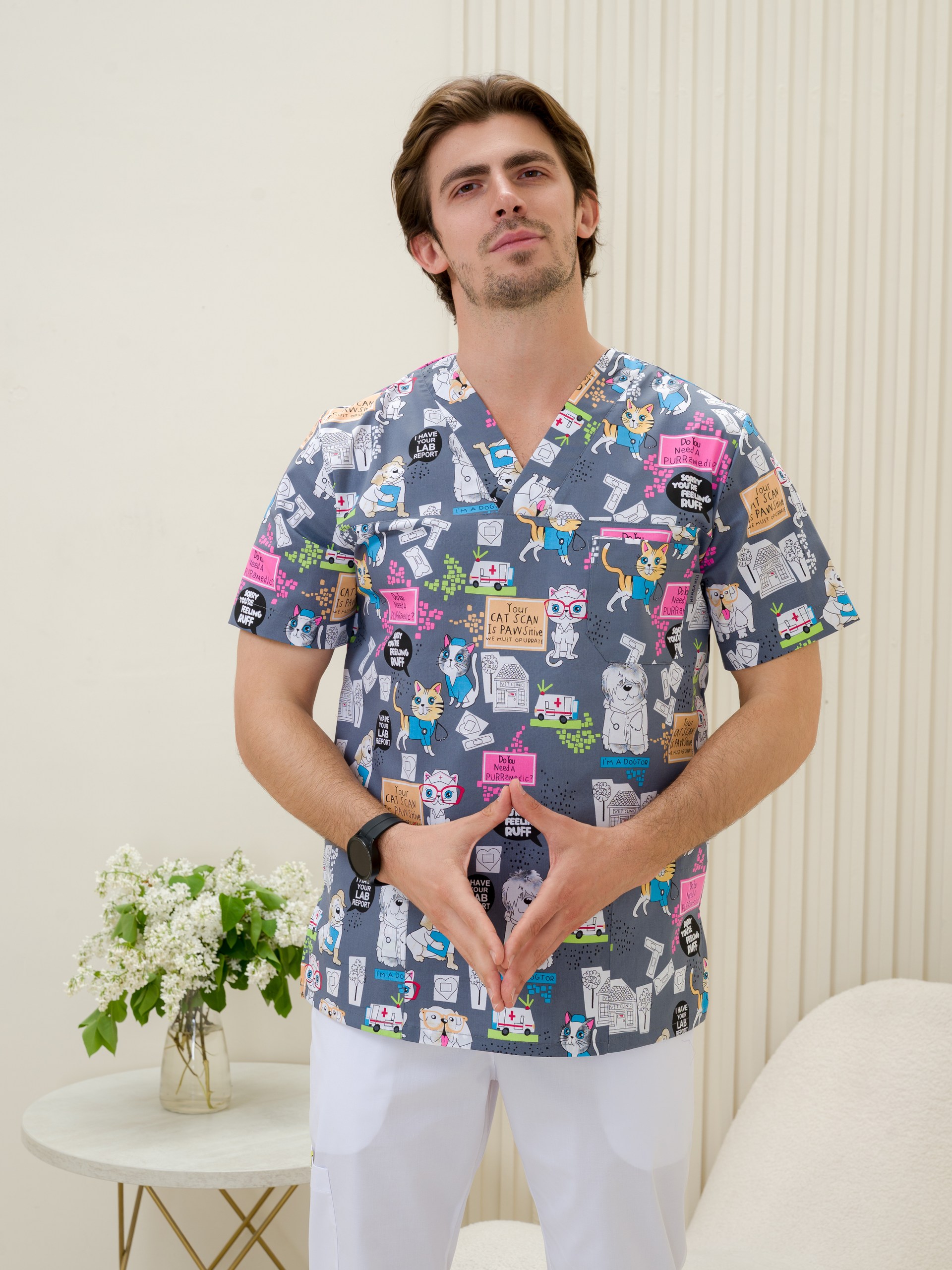 Рубашка мужская М-286(ST-15) ткань Стрейч/Принт (60/62, ST15-графит(73))